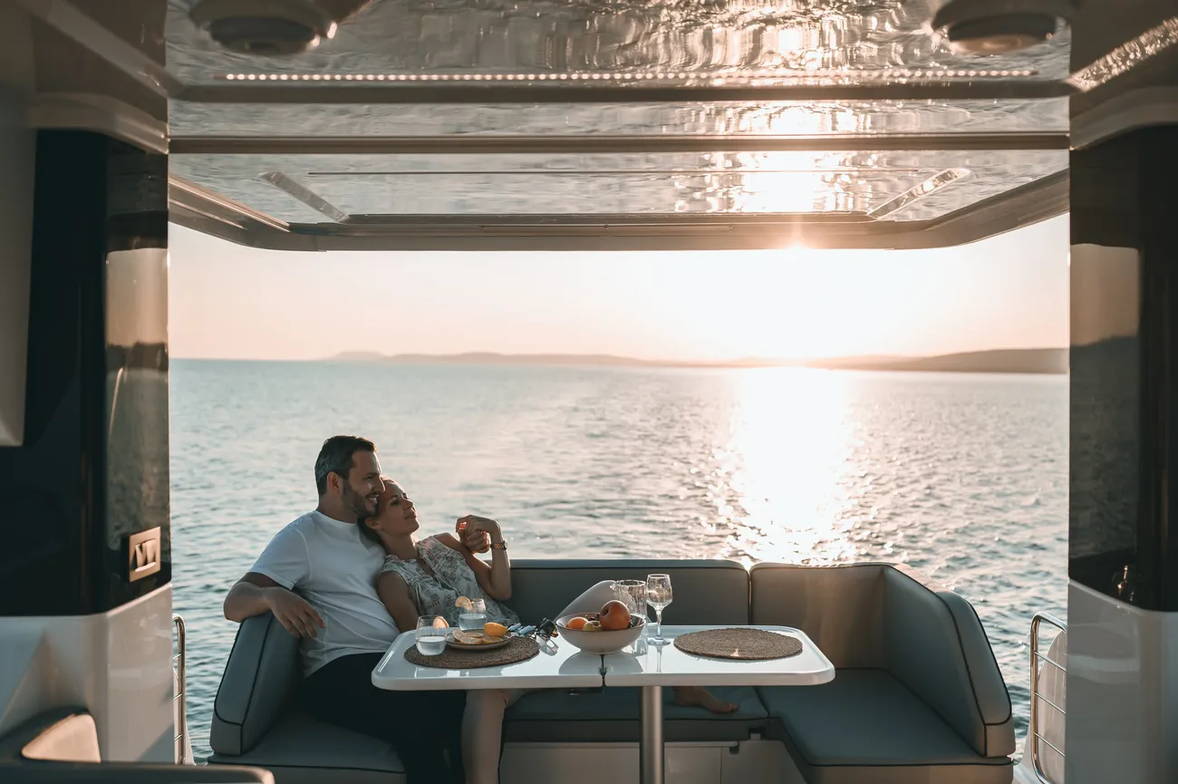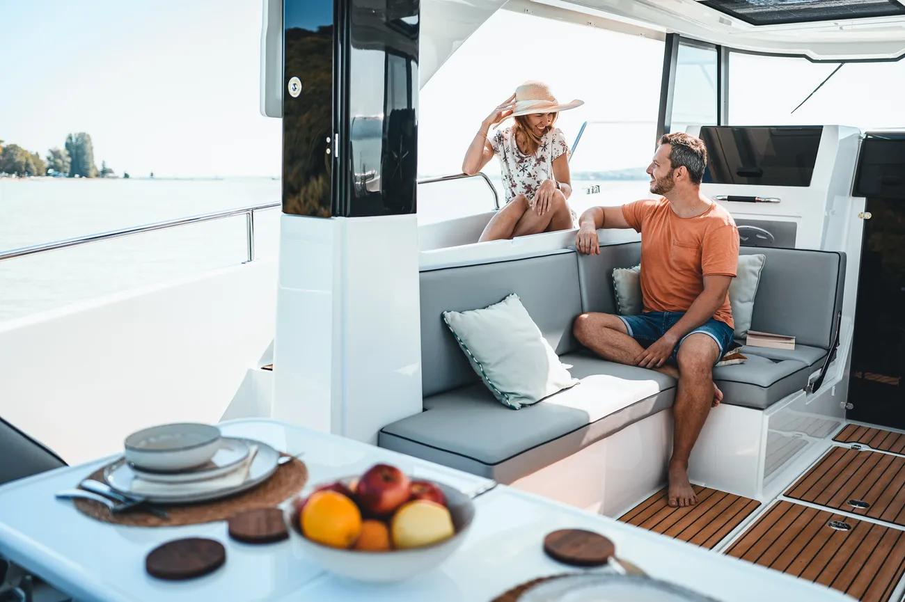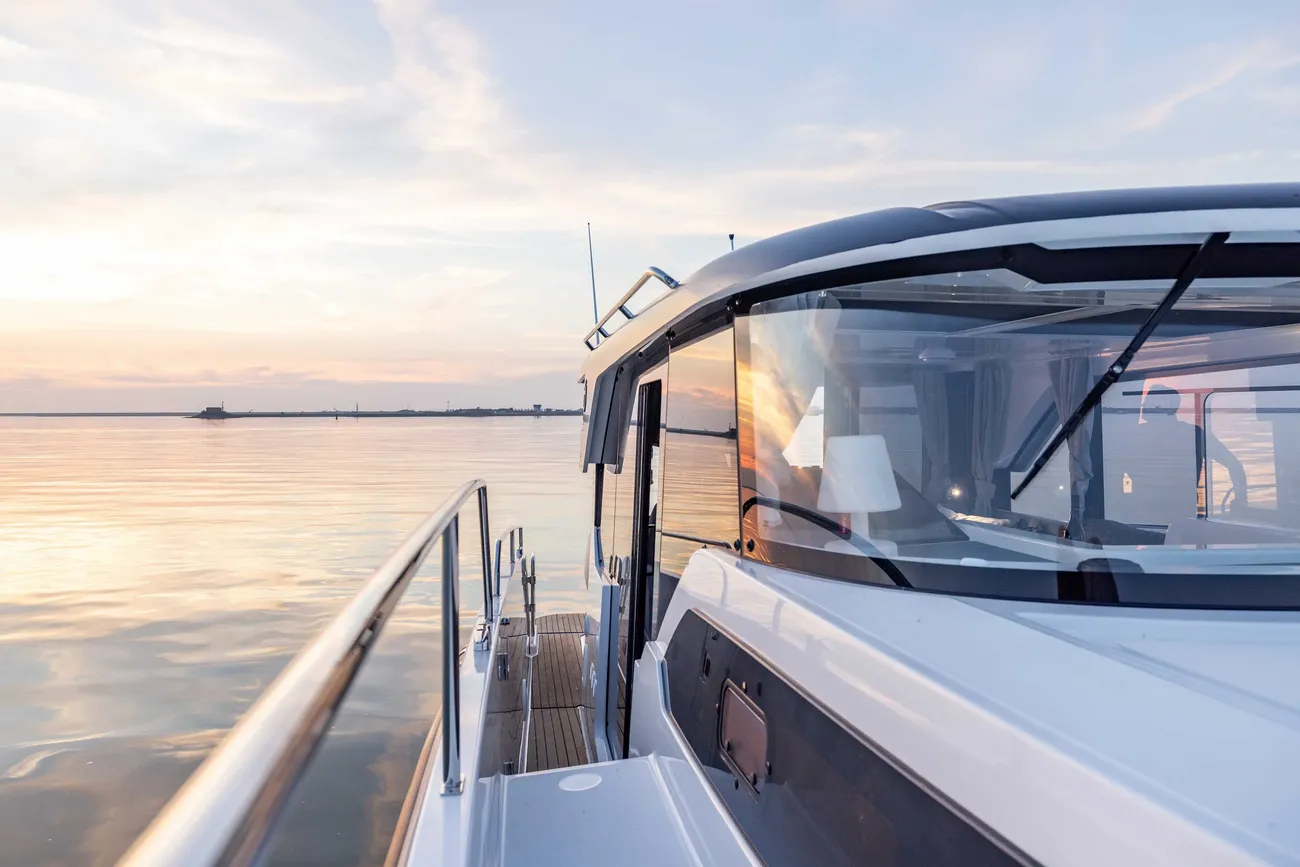 "Pure" white hull, gelcoat (RAL 9016) incl. "Pearl" green waterline