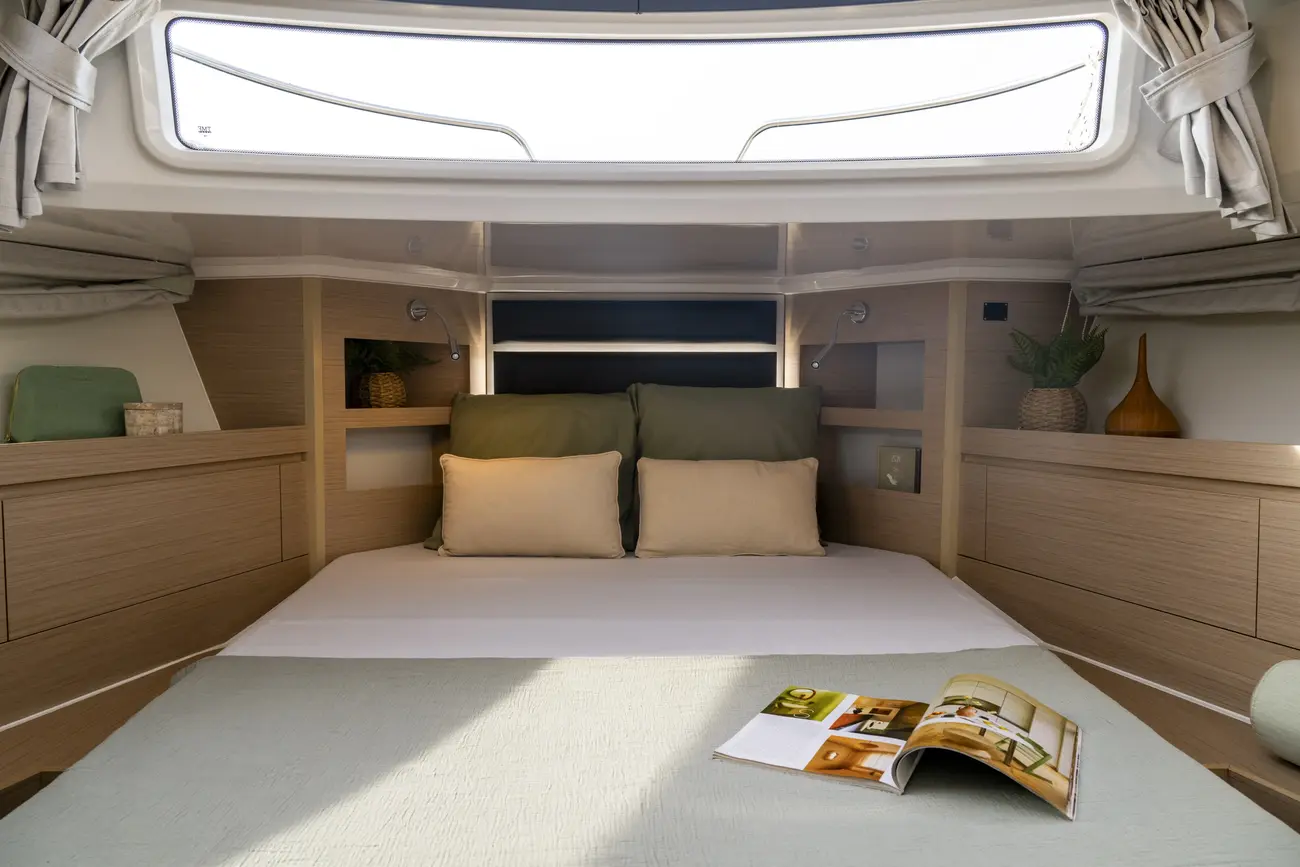 As you step into the spacious interior of the Delphia 12 Sedan, you’ll discover an exceptionally peaceful and calming ambiance. The exceptional quality of the materials and the attention paid to the finishing details create a peaceful haven on board. The well-appointed cabins offer comfortable spaces designed for relaxing. The Delphia 12 is equipped with a powerful and reliable diesel engine(s), combining energy efficiency and high performance.