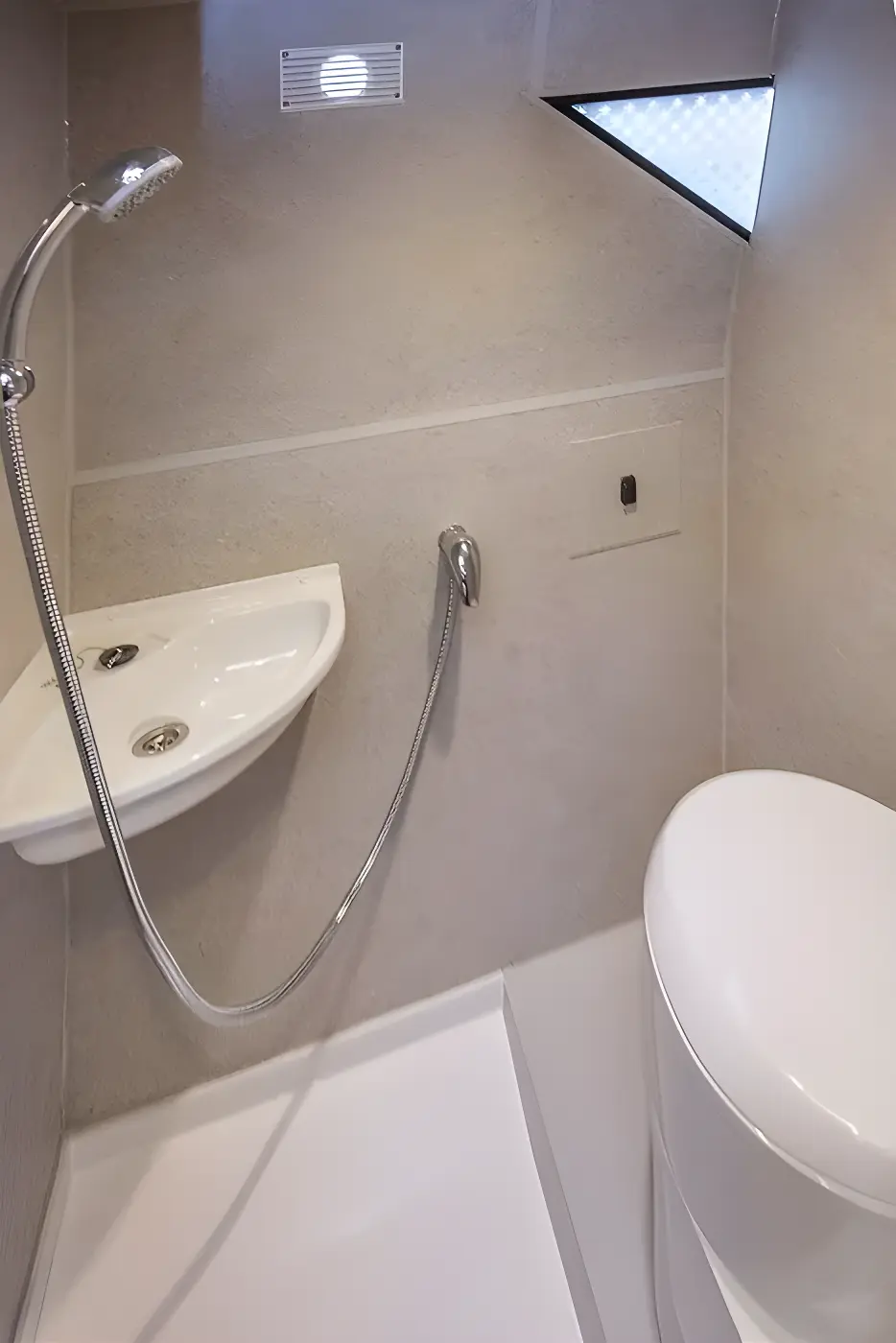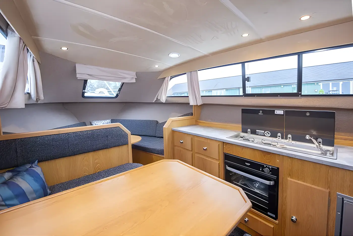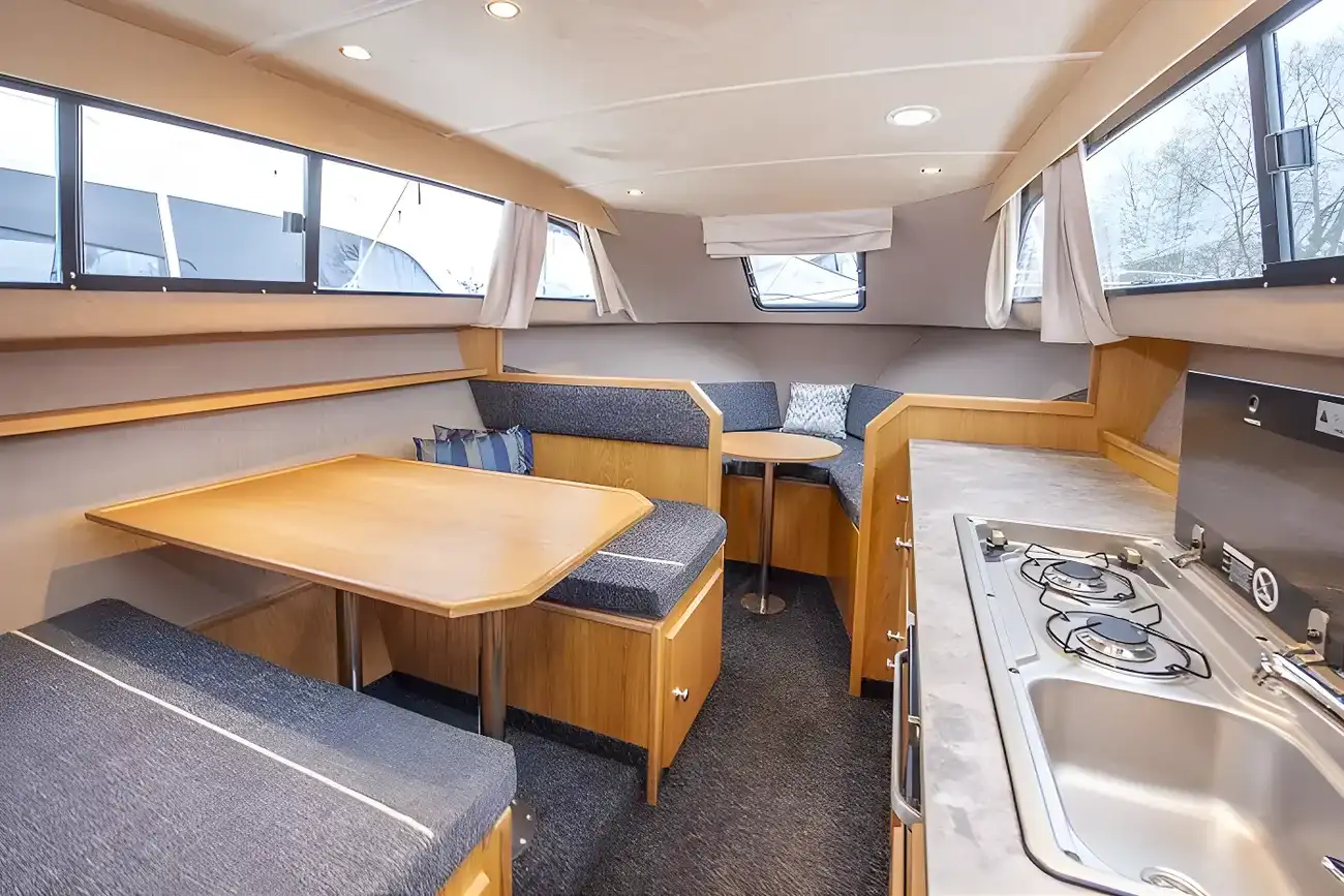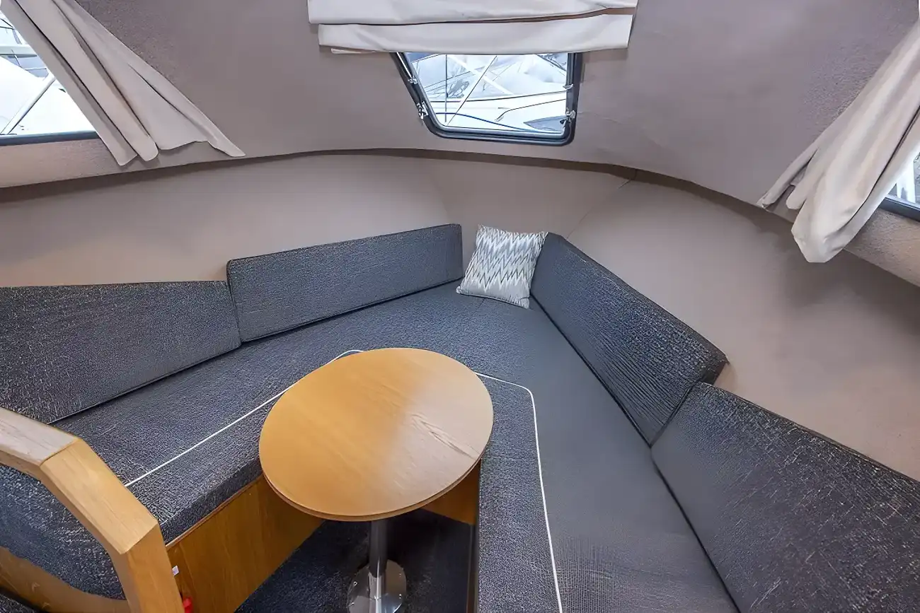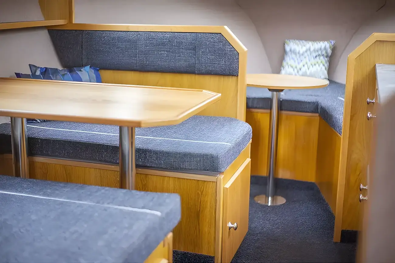• Toilet room with cartridge toilet located aft of the saloon seating area