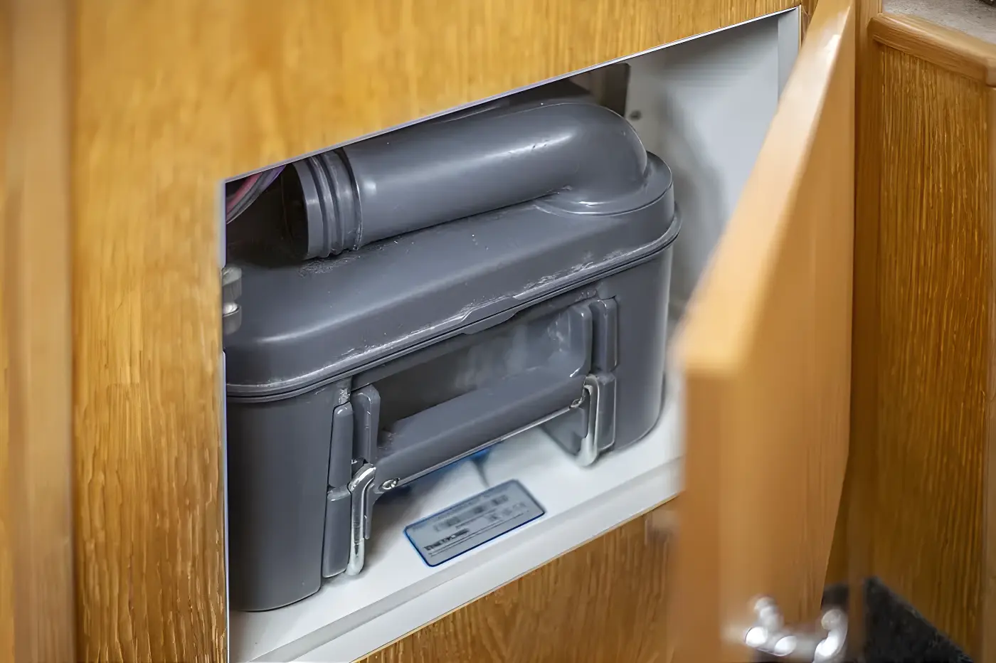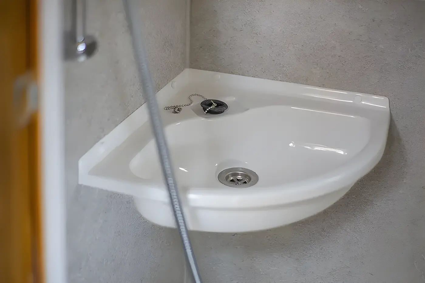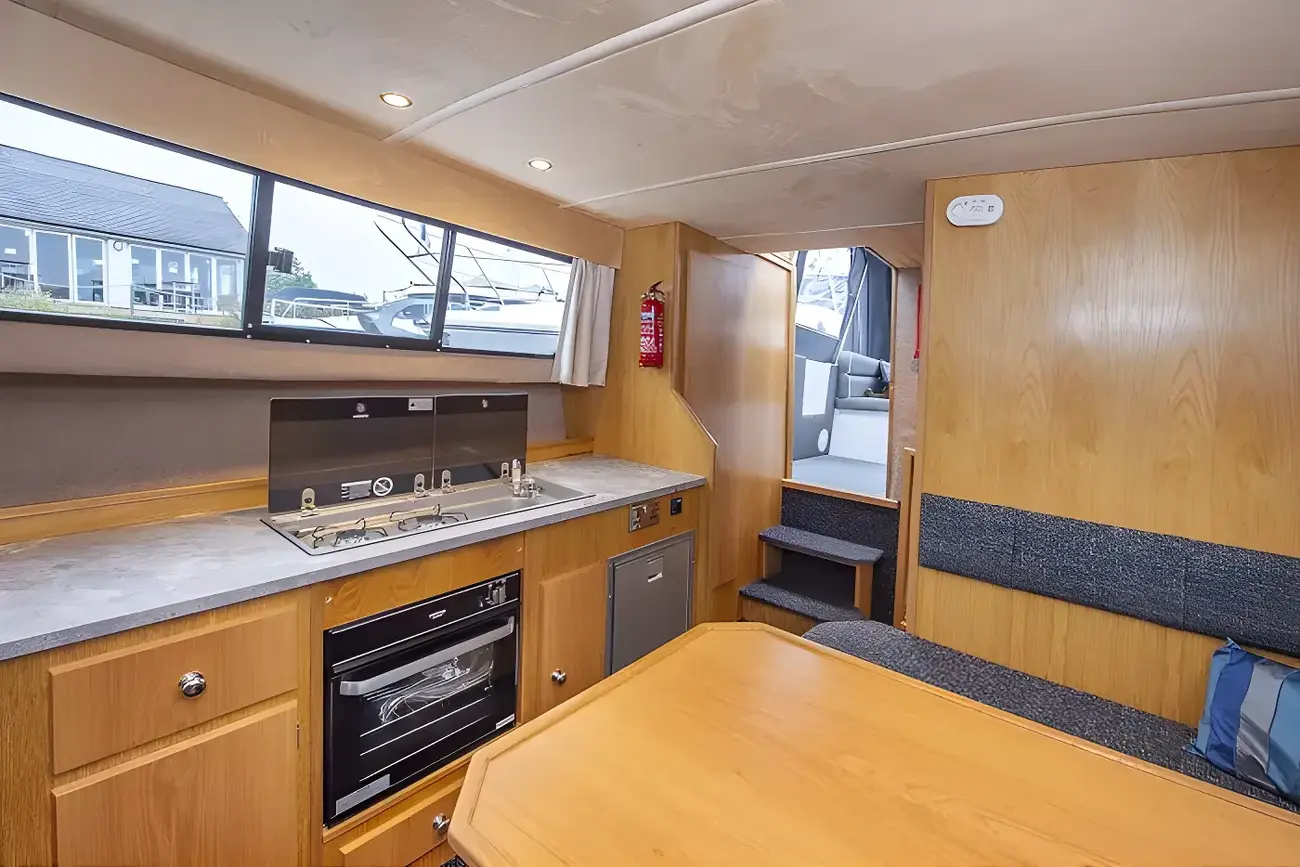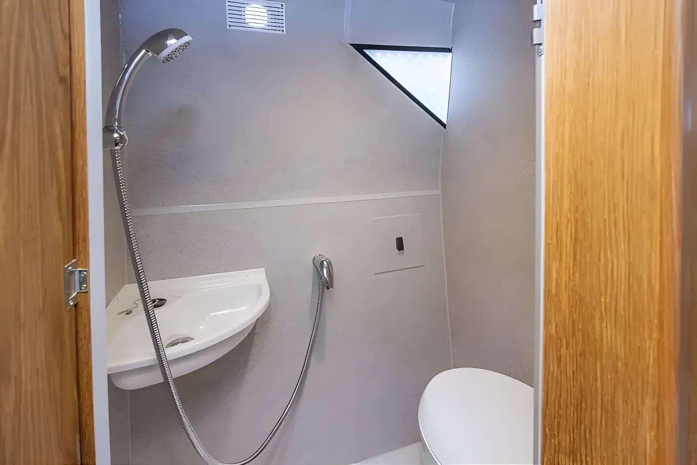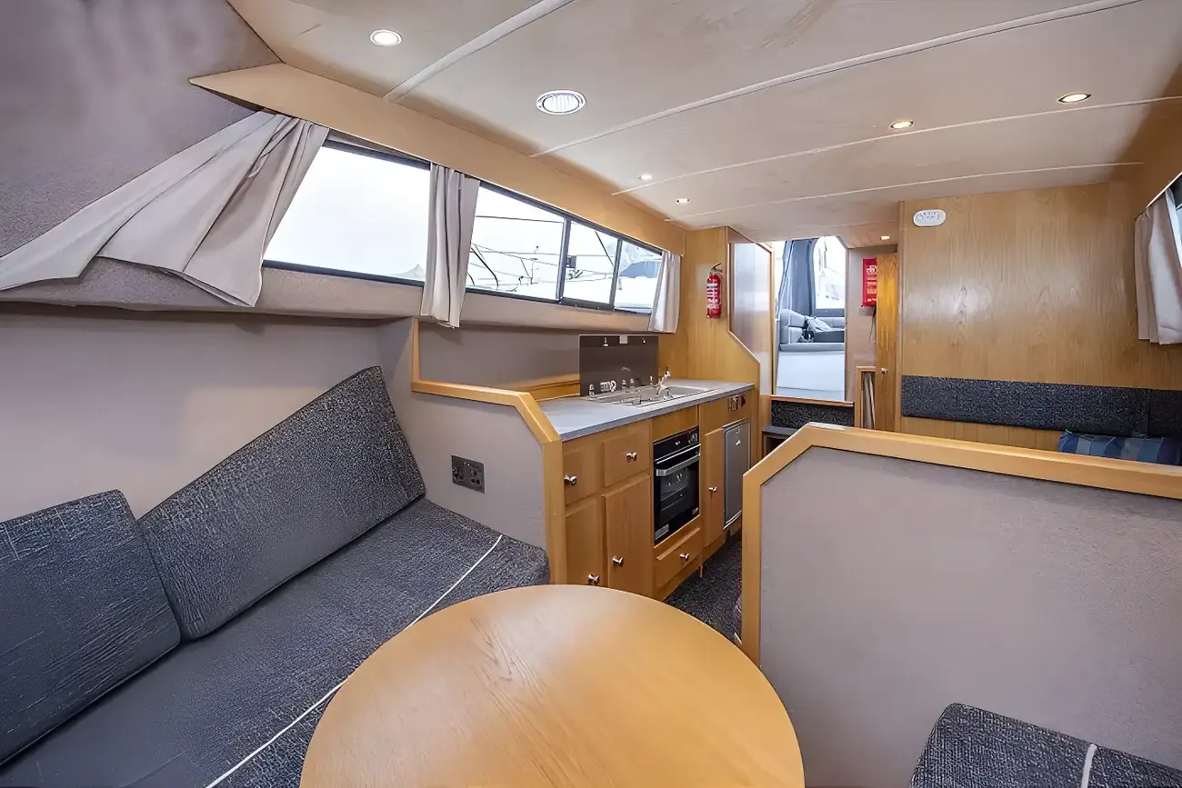 • Toilet room with cartridge toilet located aft of the saloon seating area