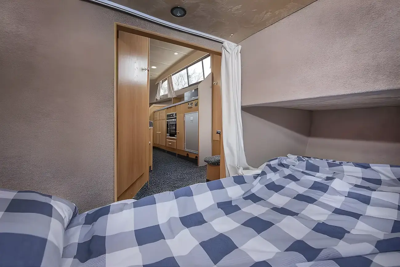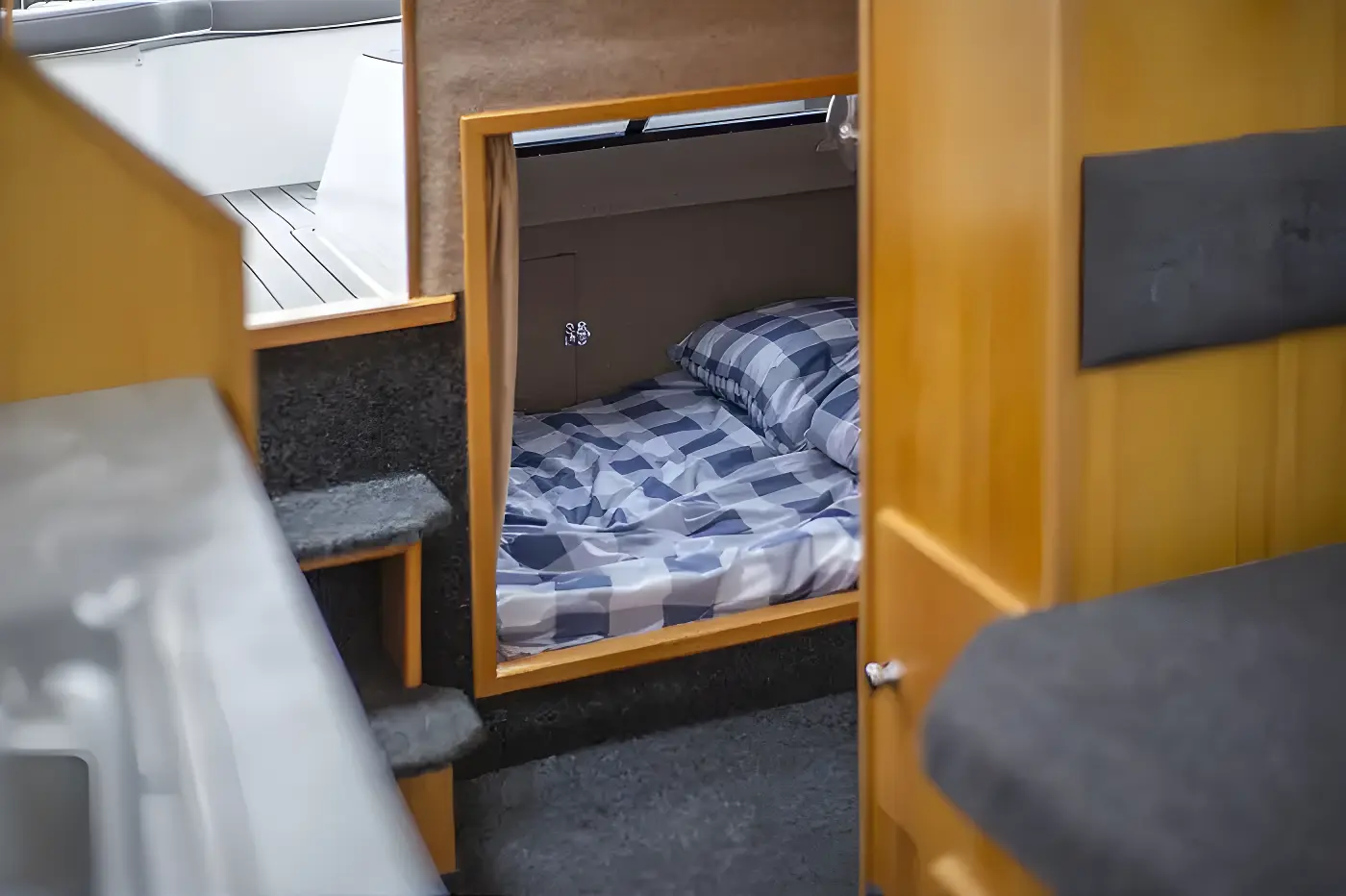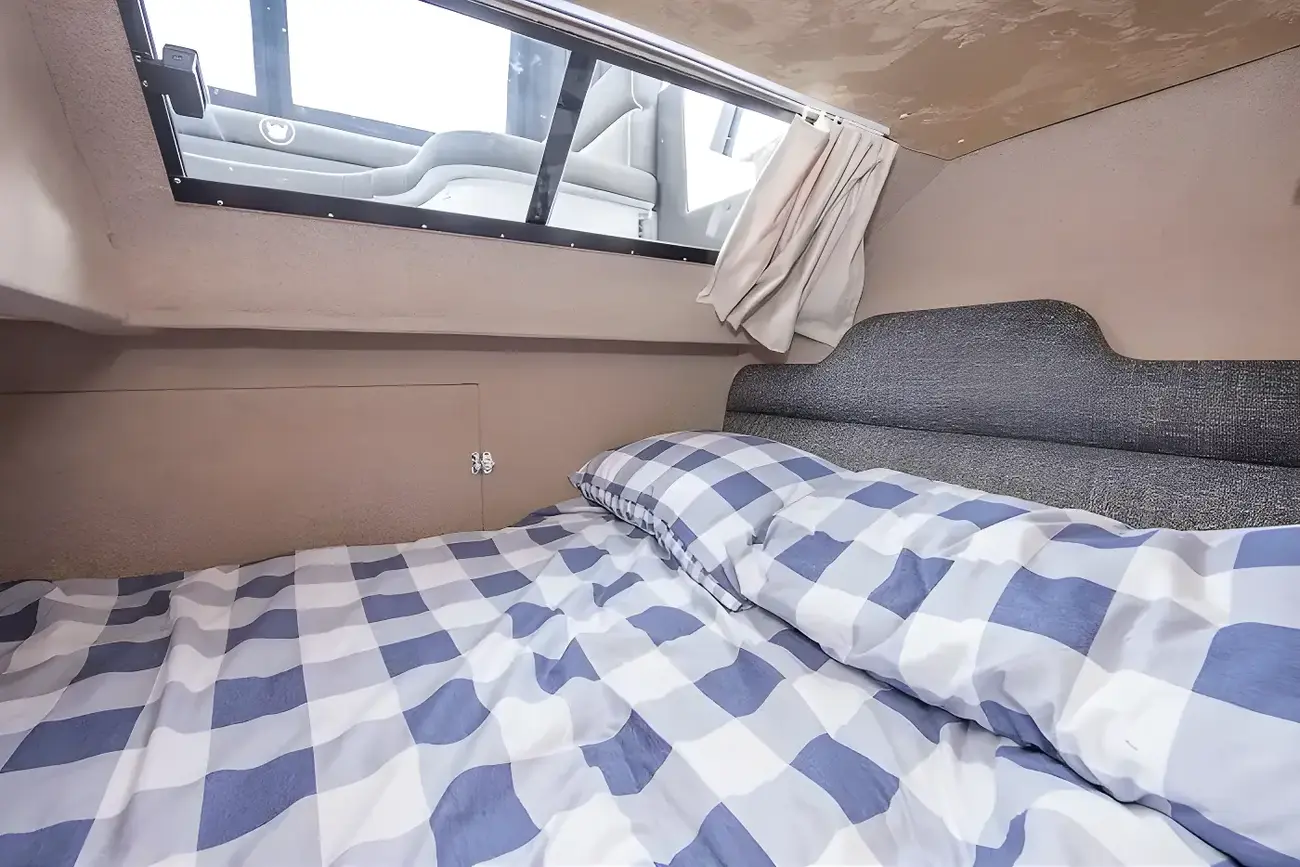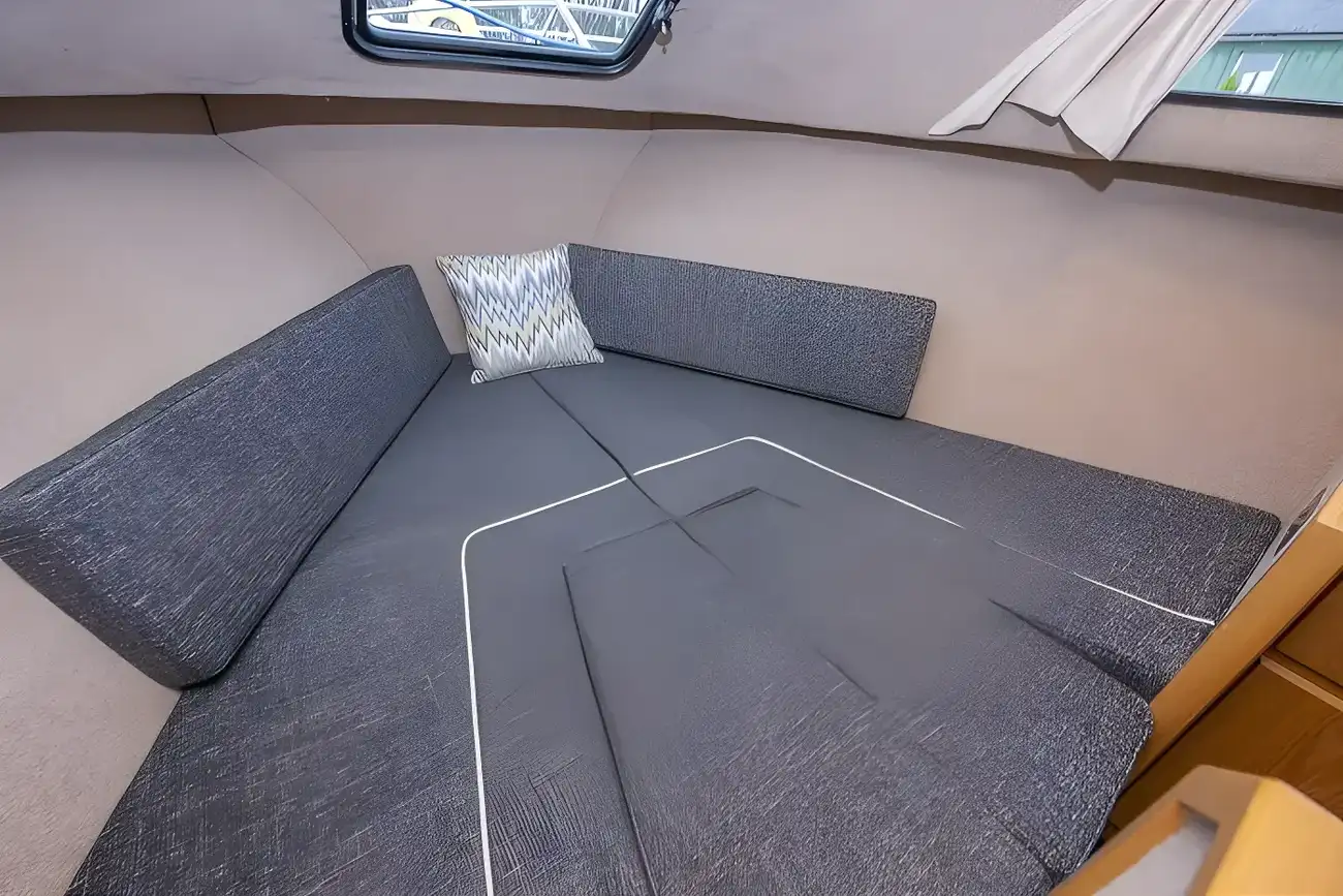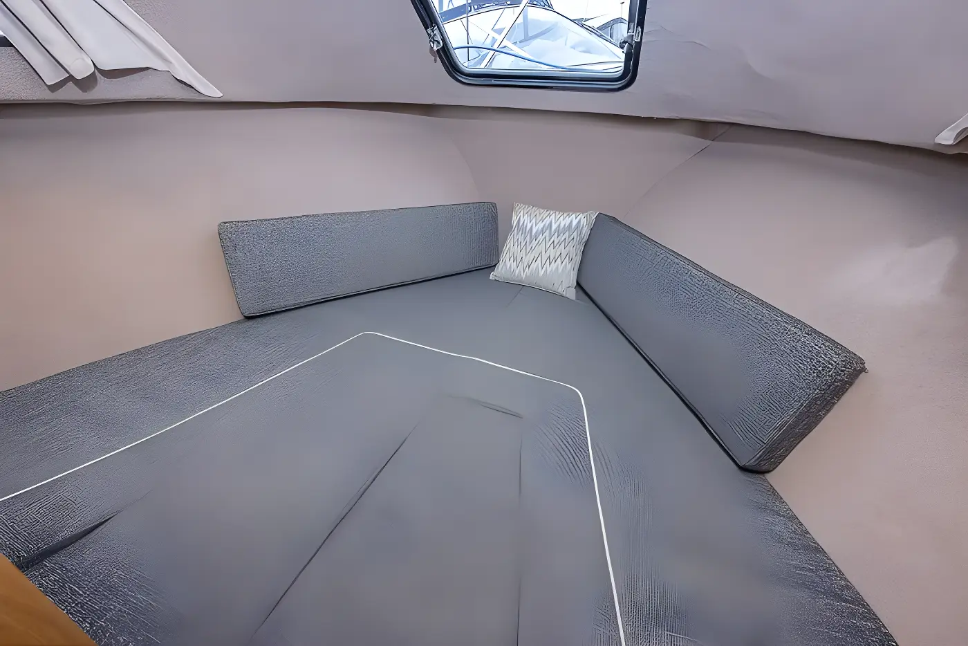 • A generous double berth beneath the cockpit floor, measuring 7' in length with an opening window to the cockpit