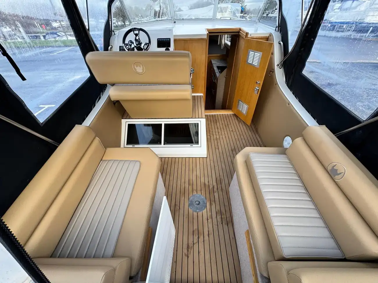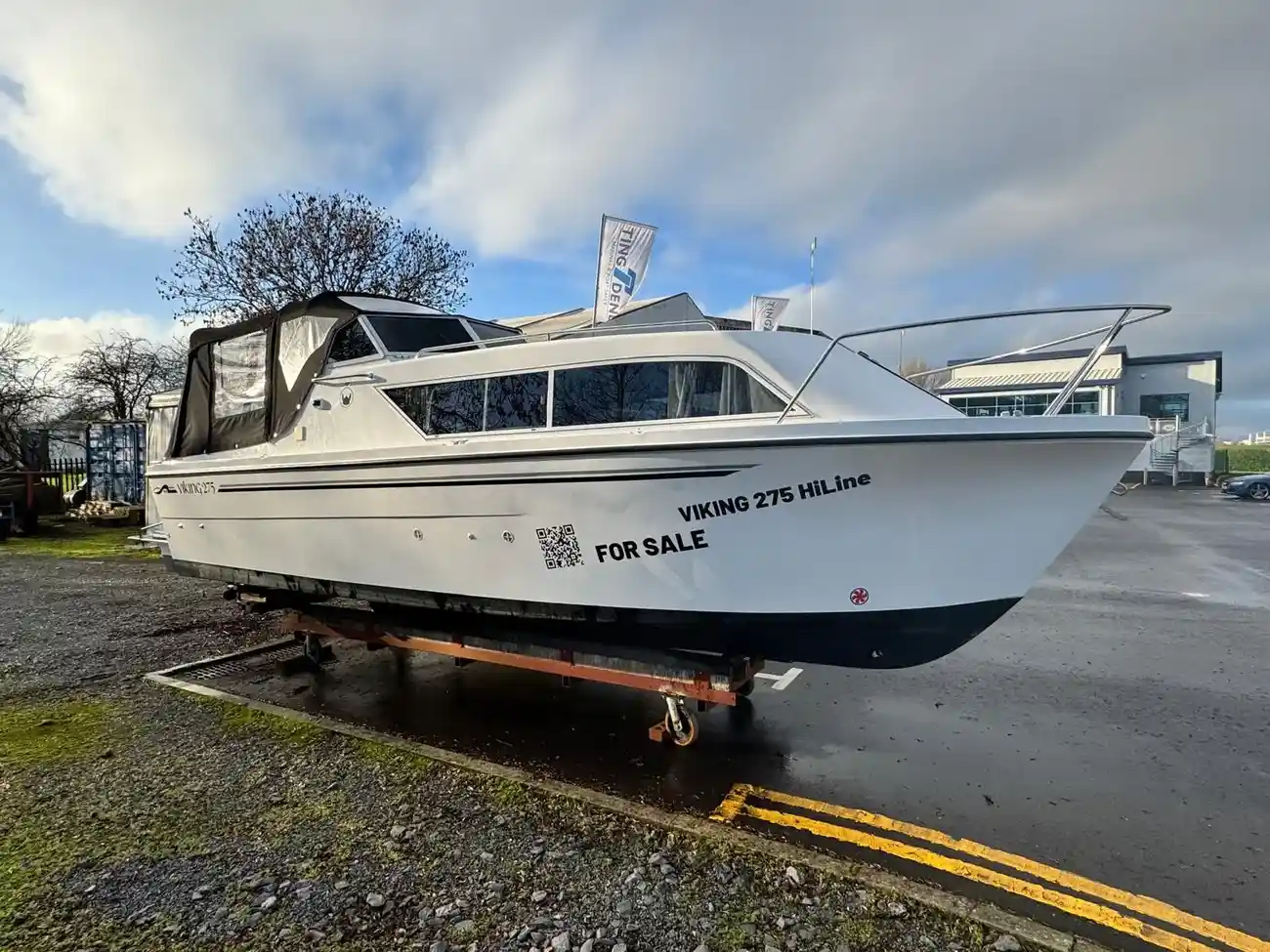 The Viking 275 Wide Beam Hi-Line is a versatile and comfortable cruiser, ideal for relaxed cruising and family adventures on the water. Supplied with a reliable Mariner 40 EFI ELPT outboard, this model also benefits from a stern bathing platform, making it especially convenient for stern-on moorings.
