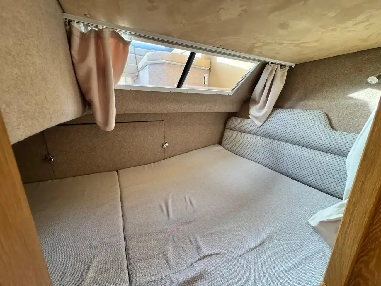 Beneath the cockpit floor is a generous double berth measuring 7 feet in length, complete with an opening window to the cockpit for added light and ventilation. Further aft, a large storage locker provides space for a tender or other essential equipment.