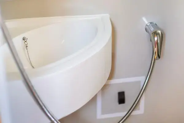Aft of the saloon seating area to port, the toilet room is equipped with an electric flush cassette toilet.