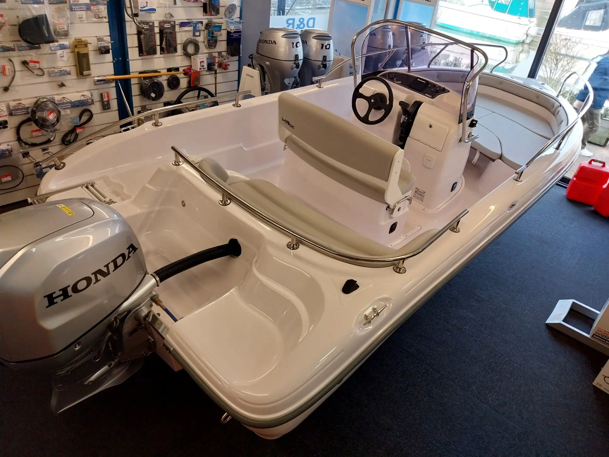 This console boat is designed according to Italian concepts and excels in space, fun, and high-quality finish. With a large sun deck in the front and a very spacious stern, this console boat offers space for up to 7 people. The Ranieri H19CC features a Stepped-Hull underwater hull for high performance and is a seaworthy and a household name among water sports enthusiasts. Fitted with a Honda 100Hp outboard engine, it is suitable for very fast progress on lakes, estuaries, and coastal use.