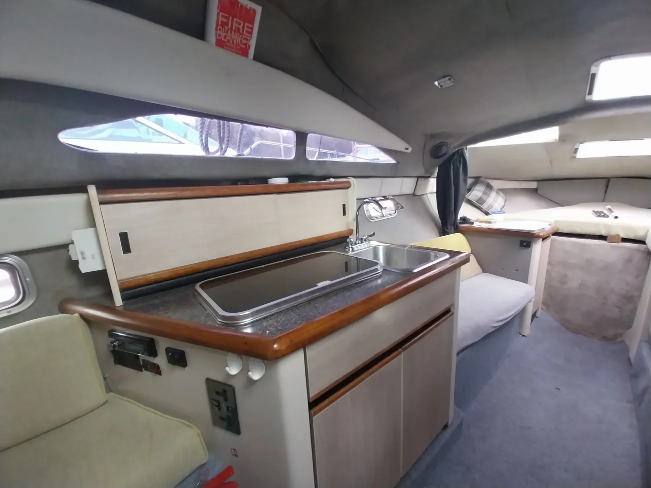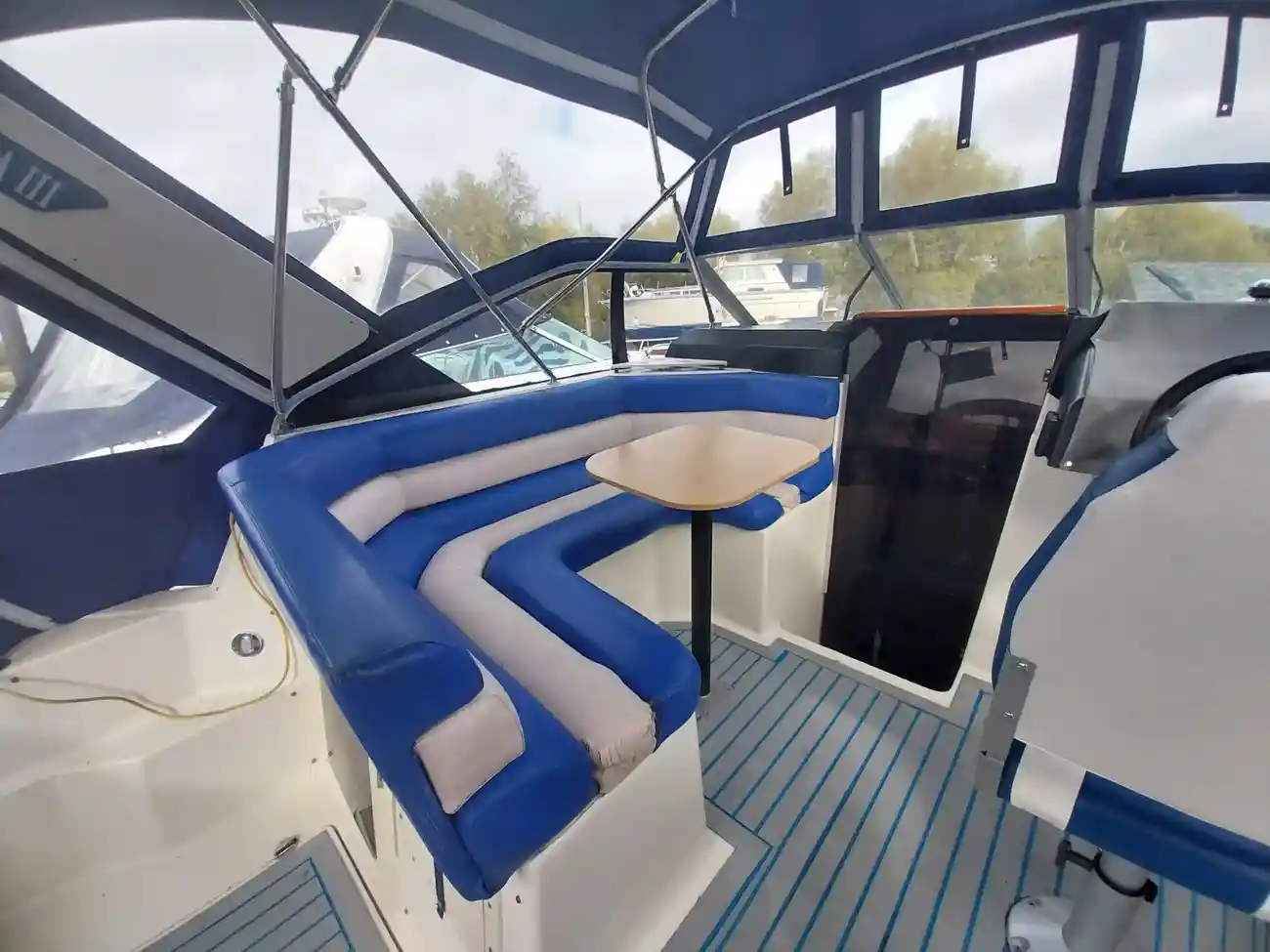 The Bayliner Ciera 2655 Sunbridge features a cleverly designed large social cockpit, providing ample space for the family. It offers accommodation for up to 6 people in a light and airy cabin. This particular vessel is powered by a single OMC 5.7 inboard engine on outdrive propulsion.
