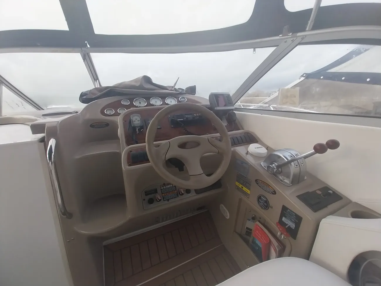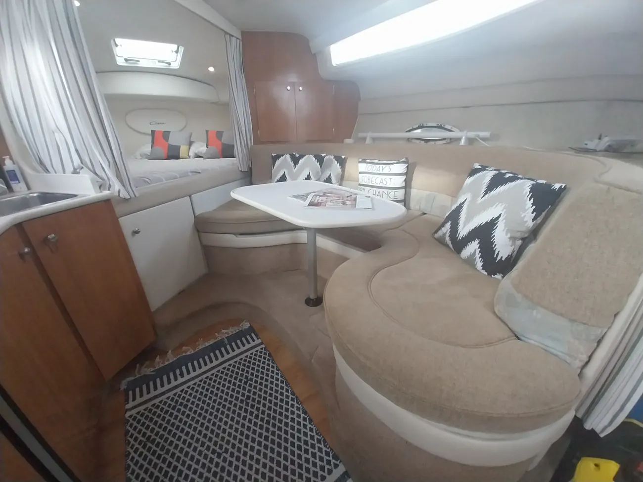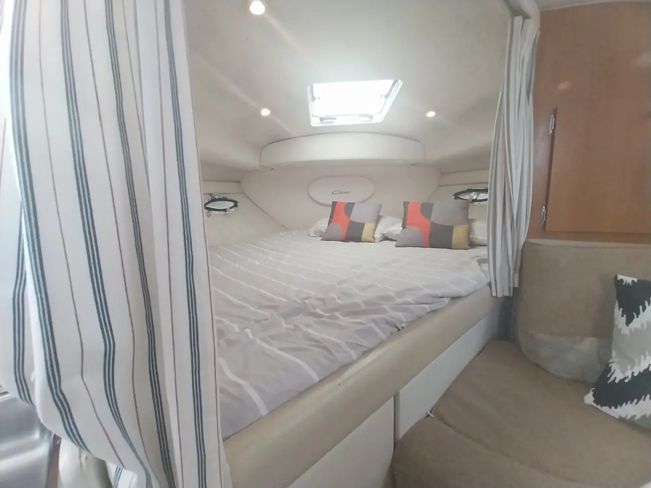 THE BAYLINER 3055 - powered by twin Mercruiser 5l Bravo II engines. If it's comfort, usability and room for the whole family you have in mind look no further. The cabin features both a forward double berth & double midships berth for maximum privacy & on deck there's an entertainment centre with wrap around seating for comfortable socialising. She is fitted with a bow thruster to aid maneuverability and make docking easy.