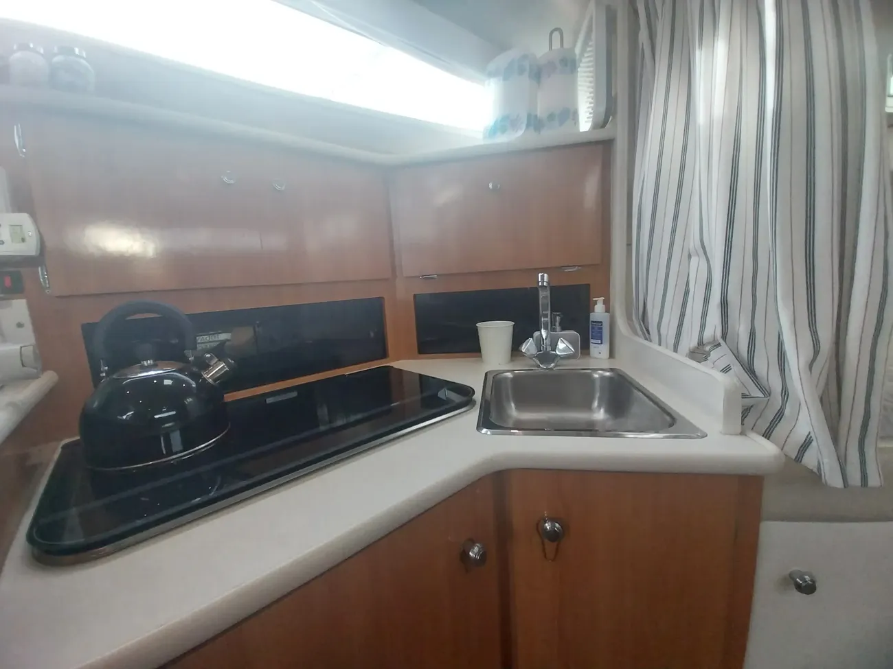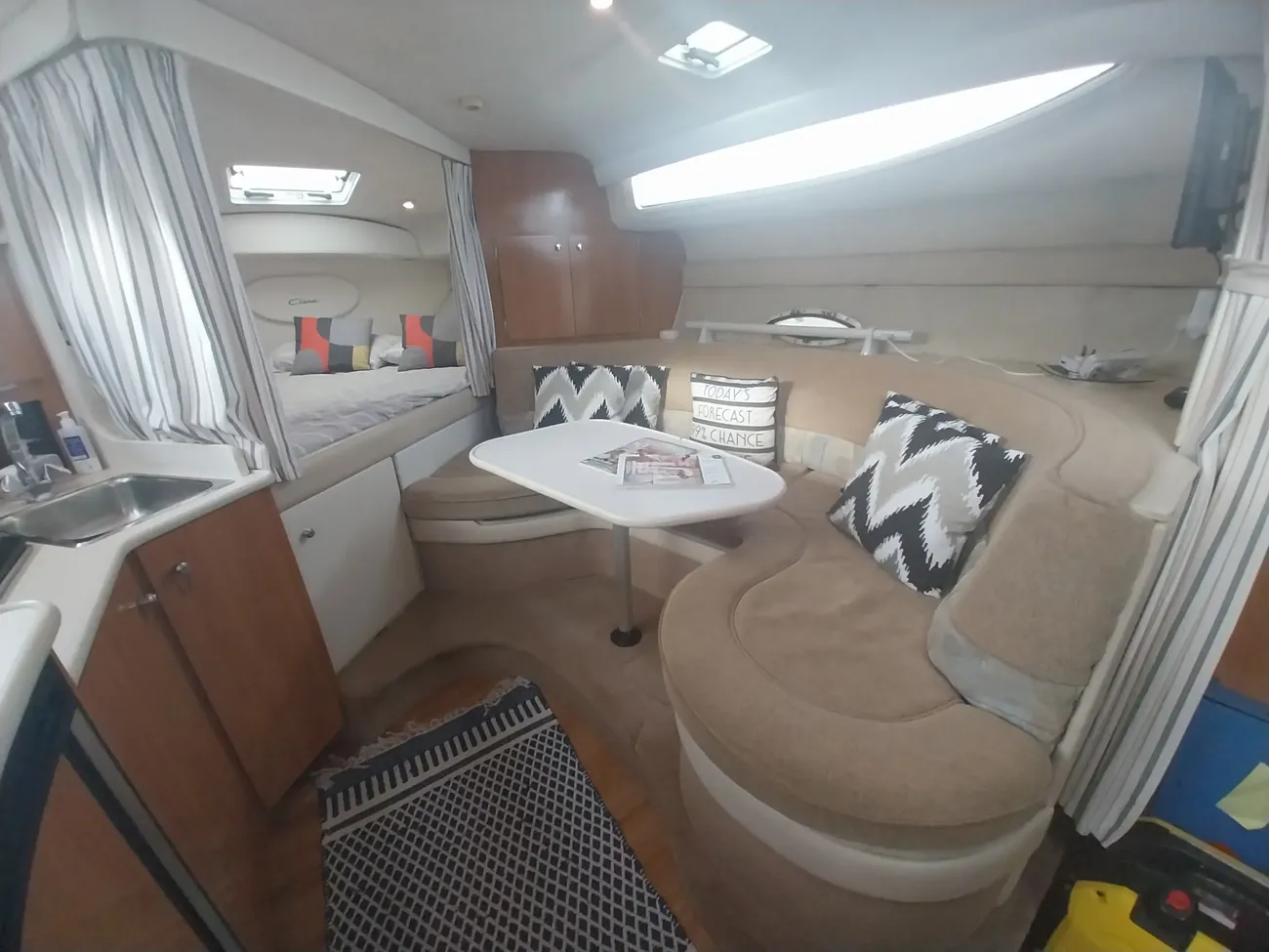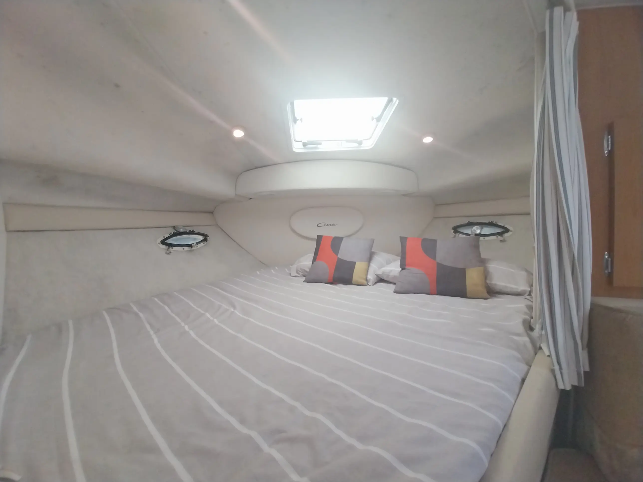 THE BAYLINER 3055 - powered by twin Mercruiser 5l Bravo II engines. If it's comfort, usability and room for the whole family you have in mind look no further. The cabin features both a forward double berth & double midships berth for maximum privacy & on deck there's an entertainment centre with wrap around seating for comfortable socialising. She is fitted with a bow thruster to aid maneuverability and make docking easy.