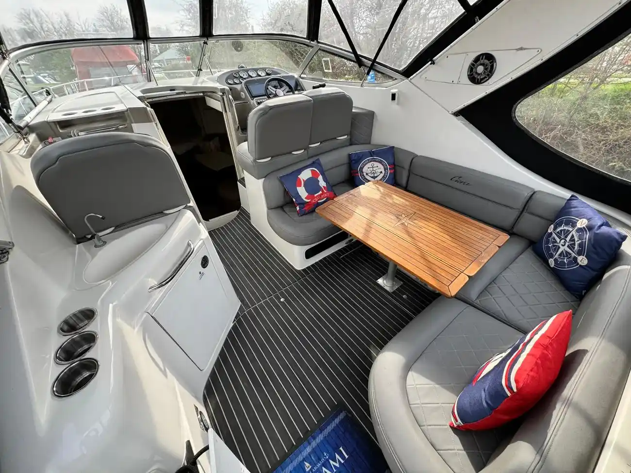 You also have a wet bar on the port side with sink and locker. (Access to the engines is beneath).