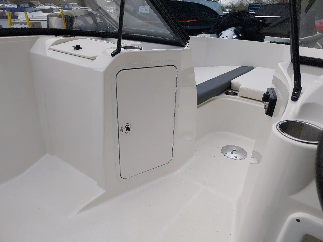 • Large cupboard under the walk-through windscreen on the Port side
