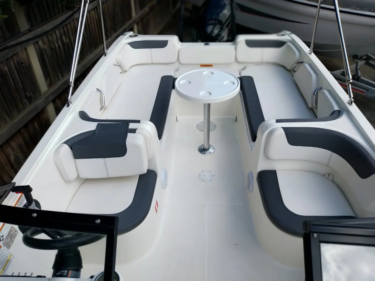 • Round table with drink holders (can be fitted in bow or rear)