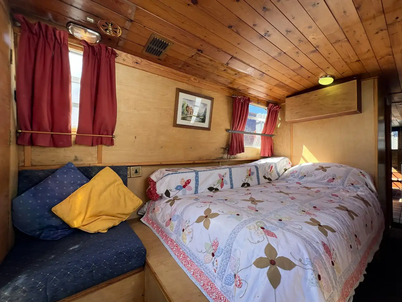 Prudence is a characterful 45ft cruiser stern narrowboat built in 1976 by Colecraft Engineering. Designed in a forward layout, she offers a practical and comfortable interior, well suited to leisure cruising or extended stays afloat. The accommodation is arranged with a master cabin aft, followed by a bathroom fitted with a pump-out macerator toilet. The galley features attractive granite worktops, providing a stylish and functional space, while the saloon is located forward and includes a freestanding sofa bed, creating a relaxed and versatile living area. Propulsion is provided by a Lister SR3 diesel engine. Cabin heating is supplied via a Webasto Thermo Top system, complemented by a multifuel stove in the saloon. Hot water is delivered through the central heating system, and both 12V and 240V electrical systems are installed onboard for modern convenience. The vessel was last blacked in 2023, with engine oil changed in 2024. The Boat Safety Scheme Certificate is valid until January 2028. Hull due to be surveyed in preparation for sale 2026. Prudence is available to view at Pyrford Marina. Please contact the team to arrange a viewing.