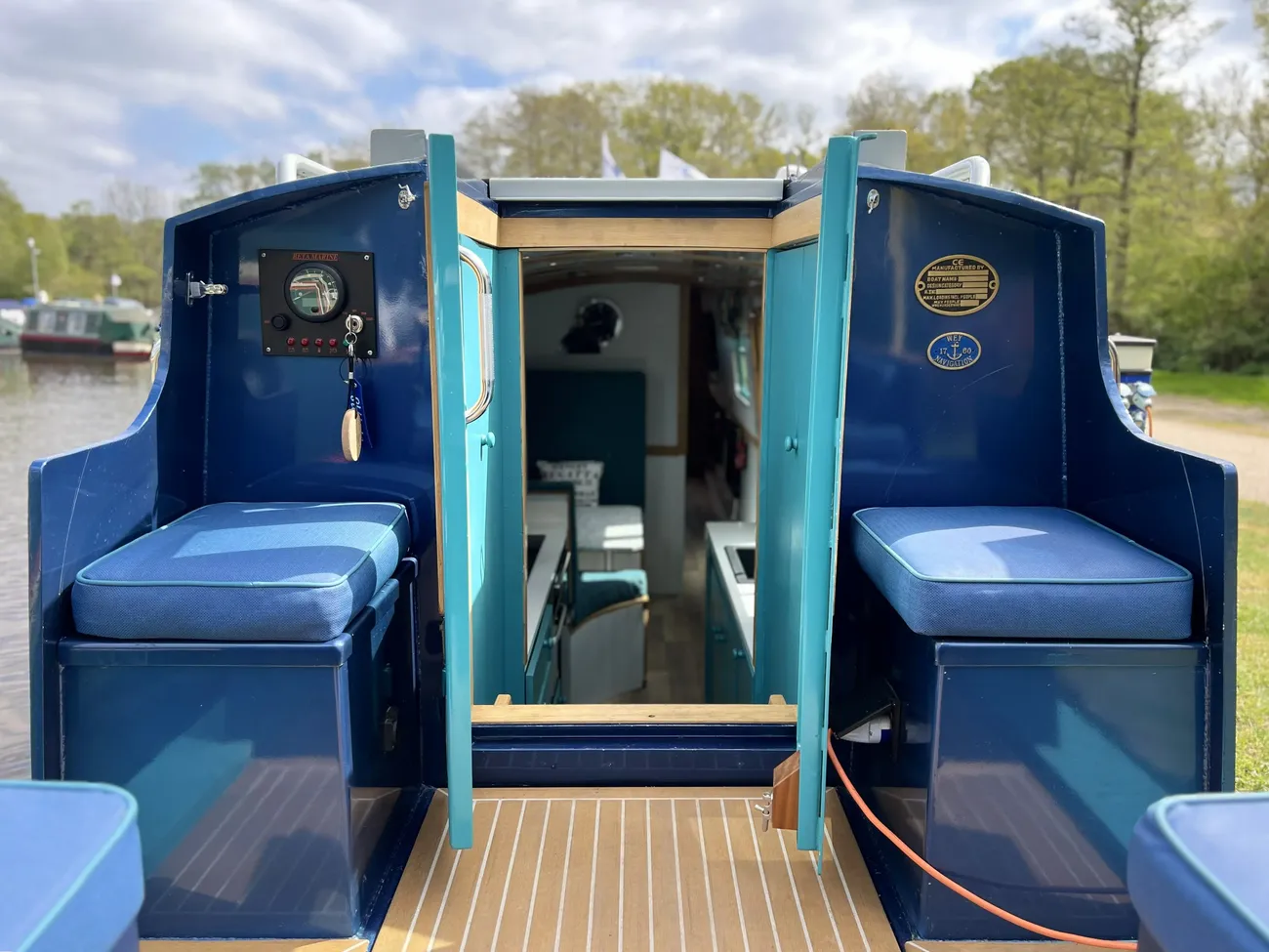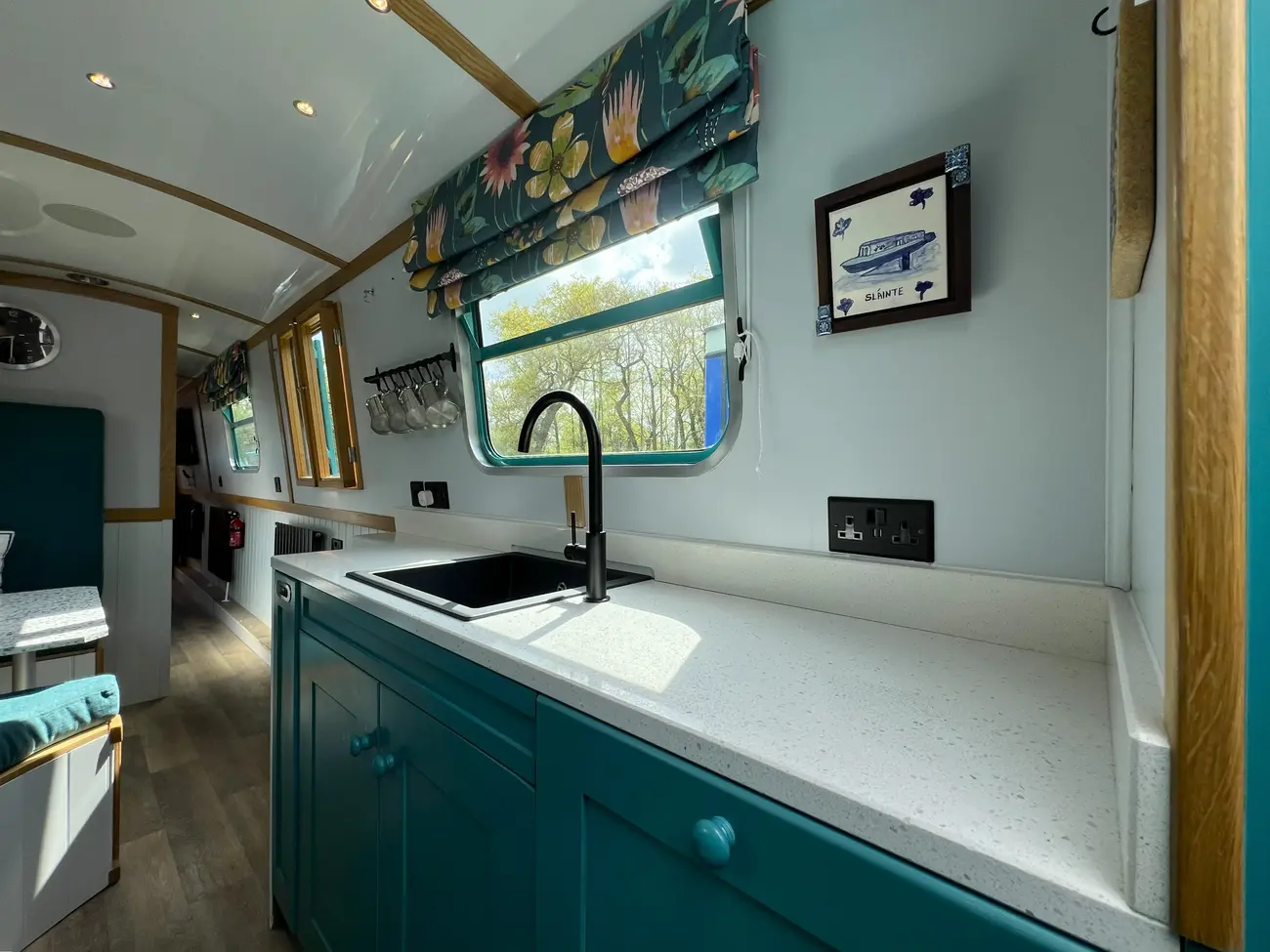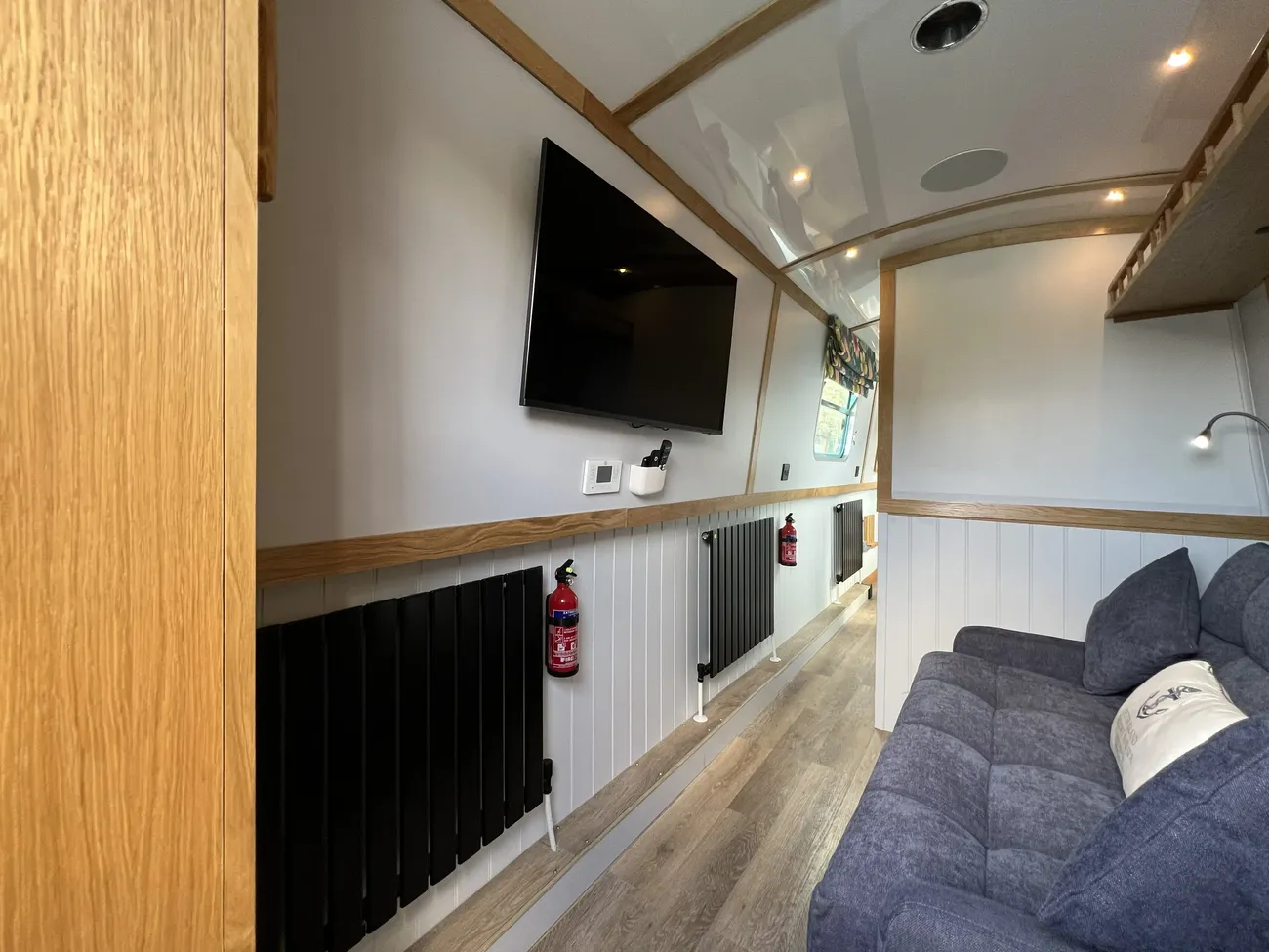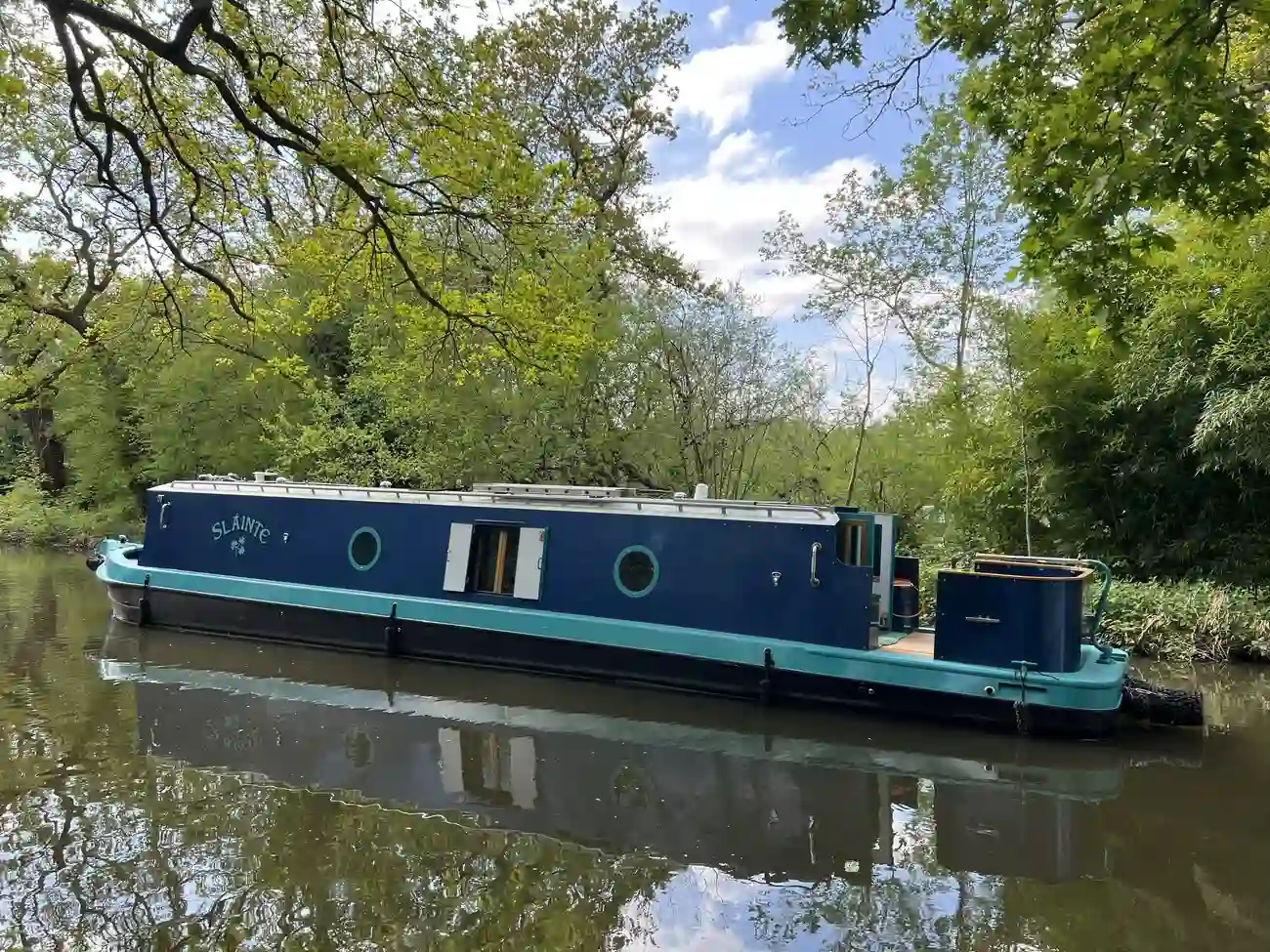 Slainte is a nearly new 45’ cruiser stern Narrowboat built in 2024 by Collingwood/Solseeker. Designed in the popular reverse layout, this spacious vessel offers a comfortable and practical interior, ideally suited to weekends afloat, liveaboard life, or extended cruising. The accommodation is arranged with walkthrough galley aft leading to a saloon with pullman’s style dinette convertible to a double berth and side hatches on both sides. A wet room style bathroom with sink unit, cassette toilet and large shower and a forward cabin with sofa bed.   There is a Bluetooth hi-fi system with multiple speakers through the boat.  Flooring is TekDeck with Roman blinds fitted on all windows.  There are Titan tonneau covers and cushions for bow and stern. Propulsion is provided by a Beta Marine 38hp diesel engine. Cabin heating is delivered via a diesel-fired Webasto central heating system. Hot water is supplied through the central heating system, engine calorifier, and a 240V immersion heater. Both 12V and 240V electrical systems are installed onboard for modern convenience. Slainte is available for viewing seven days a week at Pyrford Marina. To arrange an appointment, please contact the team on 01932 340739.