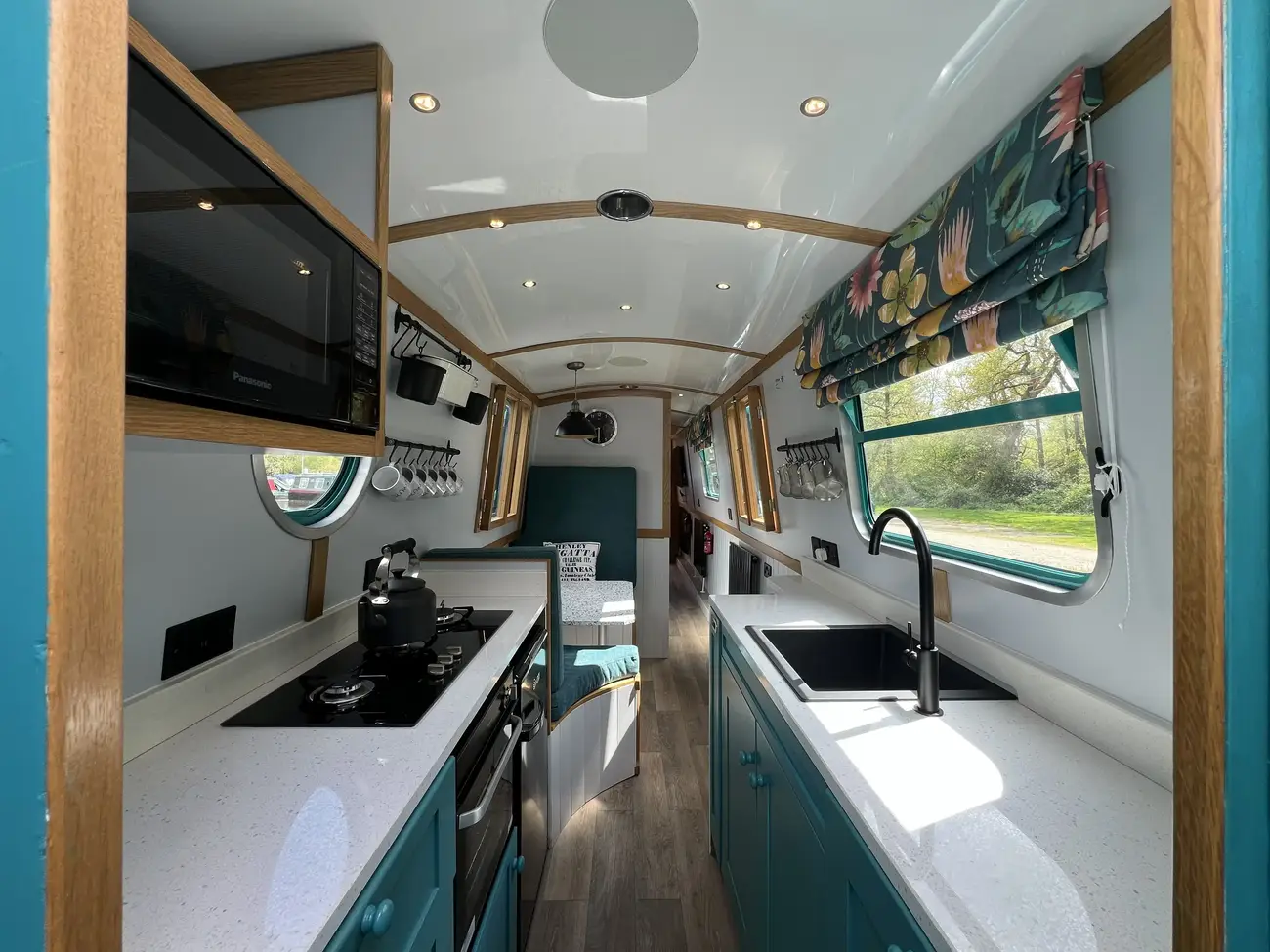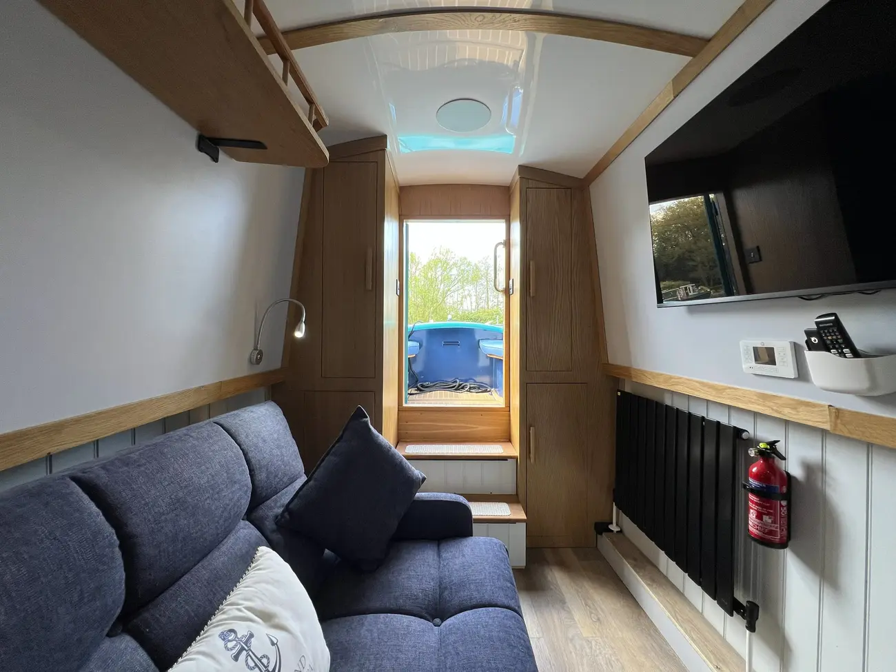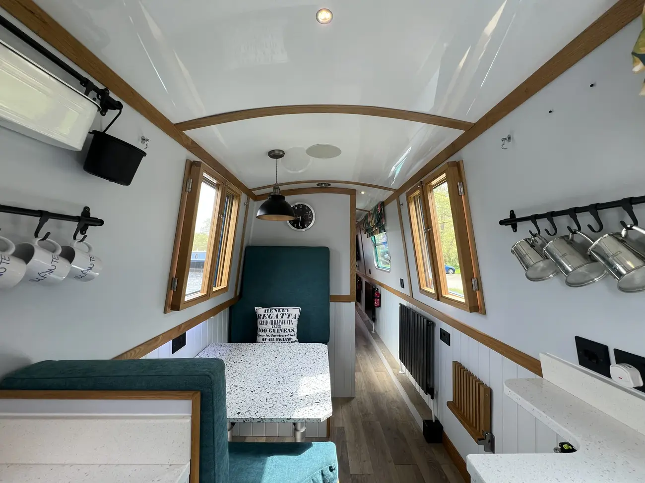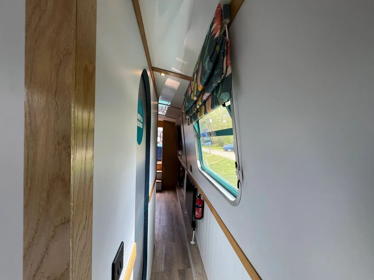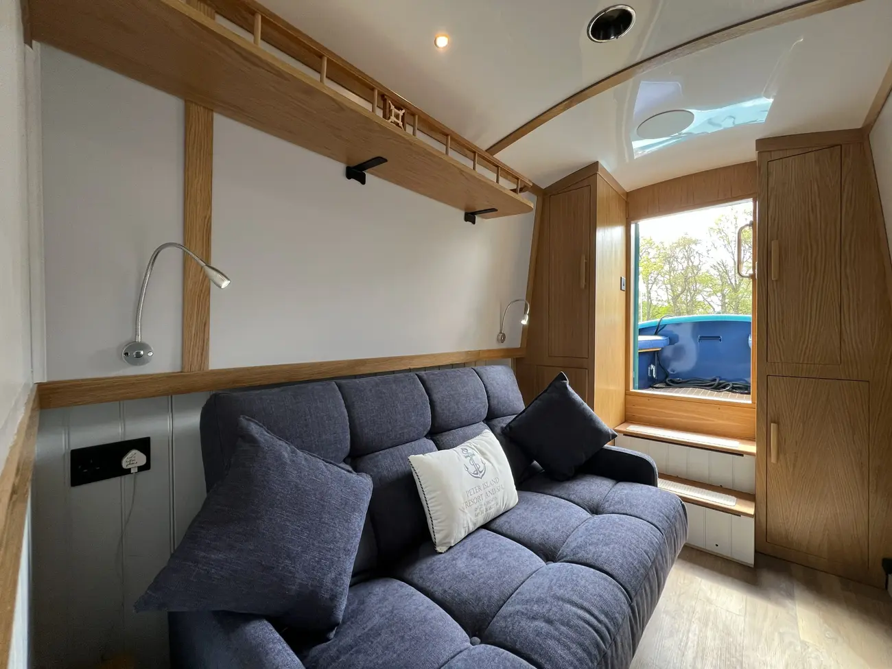 Slainte is a nearly new 45’ cruiser stern Narrowboat built in 2024 by Collingwood/Solseeker. Designed in the popular reverse layout, this spacious vessel offers a comfortable and practical interior, ideally suited to weekends afloat, liveaboard life, or extended cruising. The accommodation is arranged with walkthrough galley aft leading to a saloon with pullman’s style dinette convertible to a double berth and side hatches on both sides. A wet room style bathroom with sink unit, cassette toilet and large shower and a forward cabin with sofa bed.   There is a Bluetooth hi-fi system with multiple speakers through the boat.  Flooring is TekDeck with Roman blinds fitted on all windows.  There are Titan tonneau covers and cushions for bow and stern. Propulsion is provided by a Beta Marine 38hp diesel engine. Cabin heating is delivered via a diesel-fired Webasto central heating system. Hot water is supplied through the central heating system, engine calorifier, and a 240V immersion heater. Both 12V and 240V electrical systems are installed onboard for modern convenience. Slainte is available for viewing seven days a week at Pyrford Marina. To arrange an appointment, please contact the team on 01932 340739.
