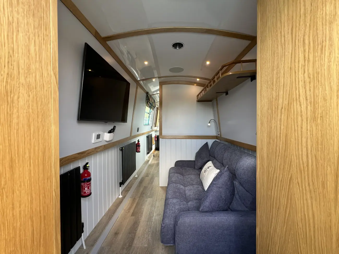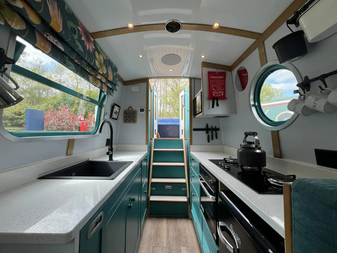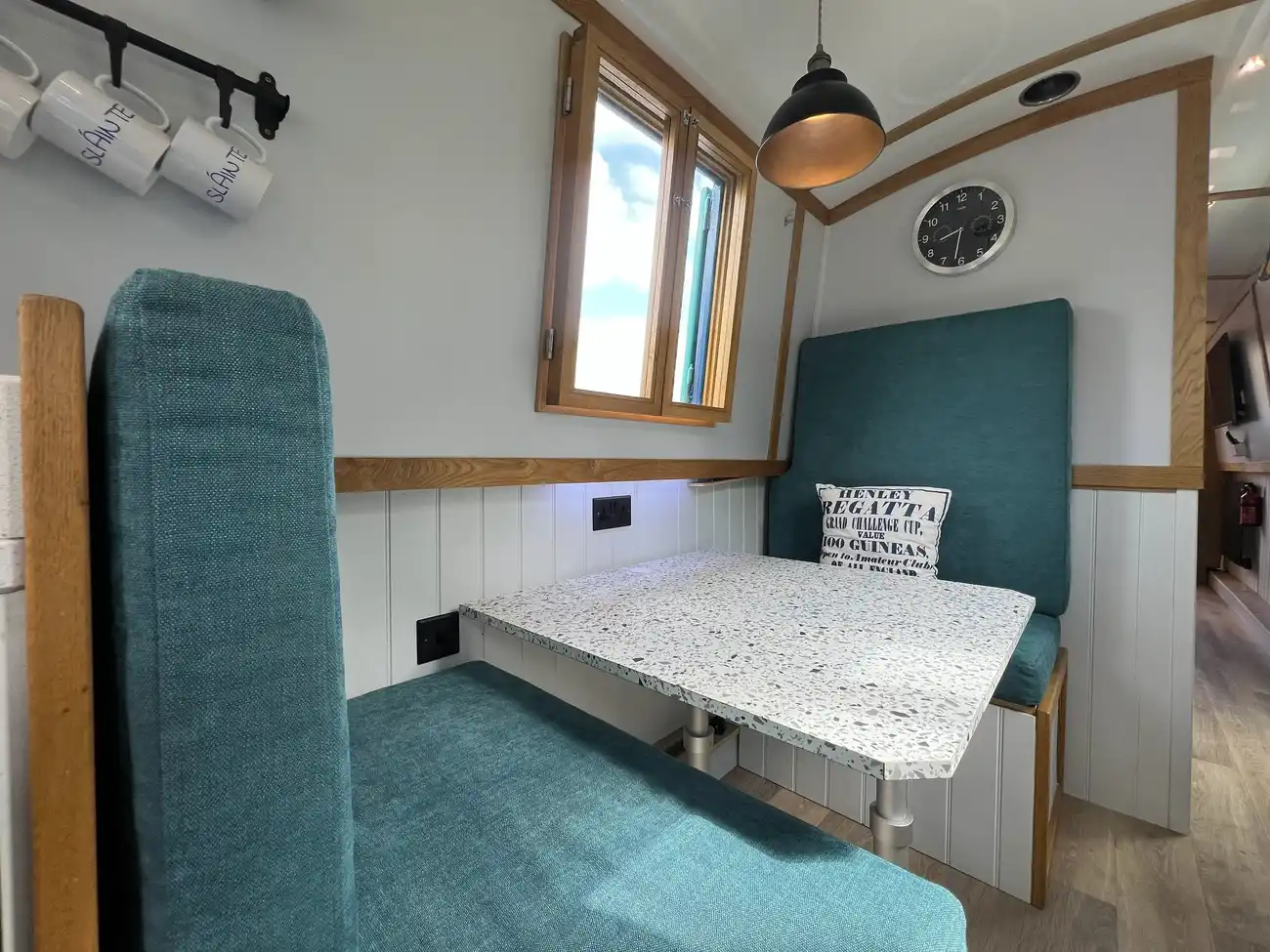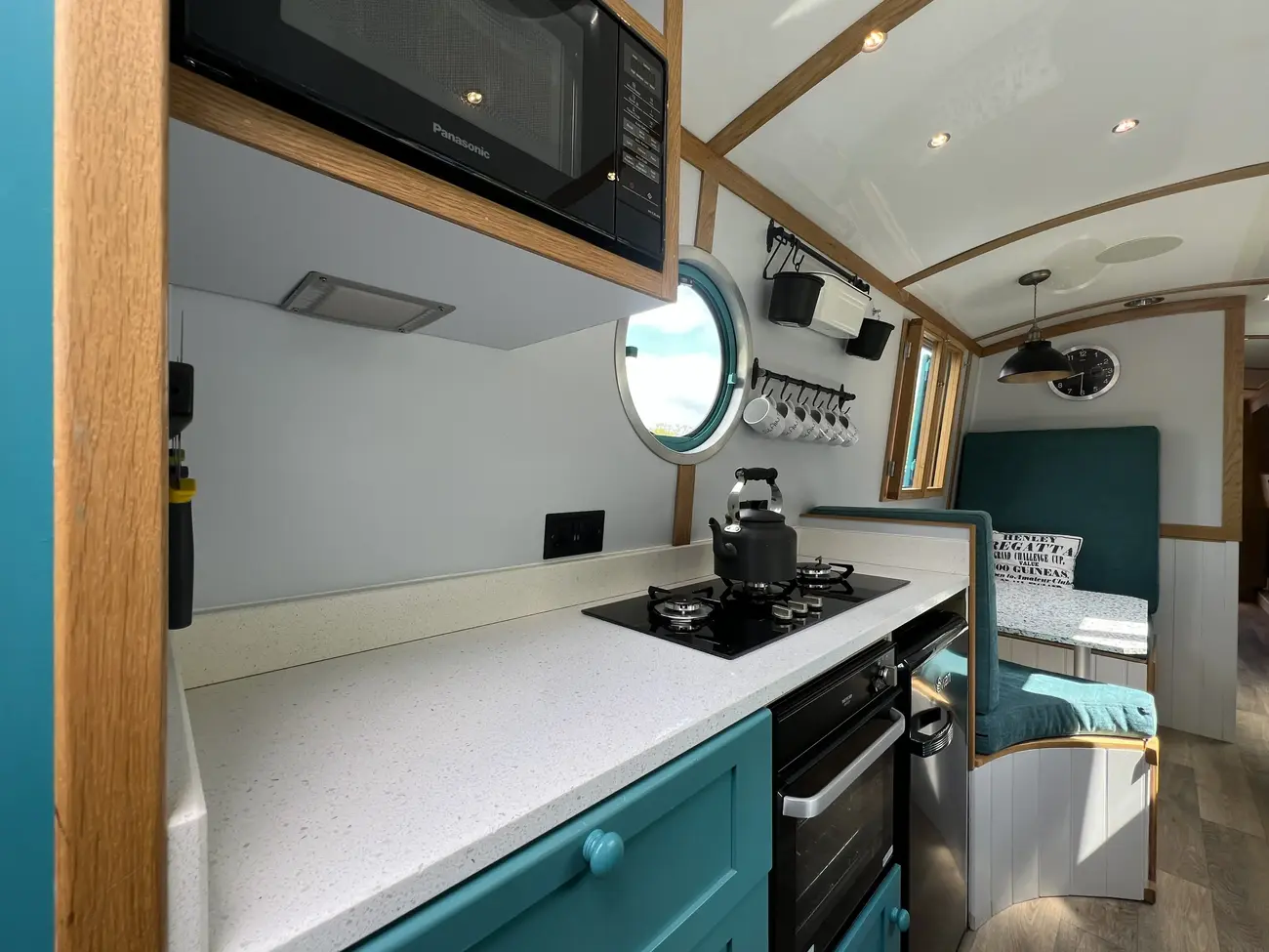 Slainte is a nearly new 45’ cruiser stern Narrowboat built in 2024 by Collingwood/Solseeker. Designed in the popular reverse layout, this spacious vessel offers a comfortable and practical interior, ideally suited to weekends afloat, liveaboard life, or extended cruising. The accommodation is arranged with walkthrough galley aft leading to a saloon with pullman’s style dinette convertible to a double berth and side hatches on both sides. A wet room style bathroom with sink unit, cassette toilet and large shower and a forward cabin with sofa bed.   There is a Bluetooth hi-fi system with multiple speakers through the boat.  Flooring is TekDeck with Roman blinds fitted on all windows.  There are Titan tonneau covers and cushions for bow and stern. Propulsion is provided by a Beta Marine 38hp diesel engine. Cabin heating is delivered via a diesel-fired Webasto central heating system. Hot water is supplied through the central heating system, engine calorifier, and a 240V immersion heater. Both 12V and 240V electrical systems are installed onboard for modern convenience. Slainte is available for viewing seven days a week at Pyrford Marina. To arrange an appointment, please contact the team on 01932 340739.