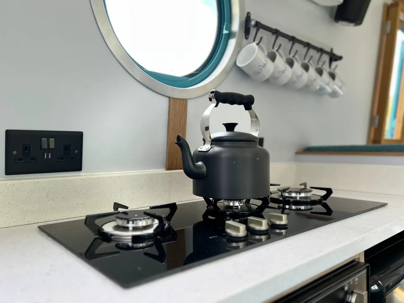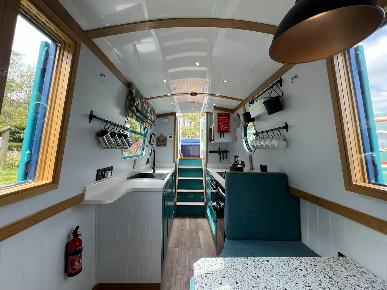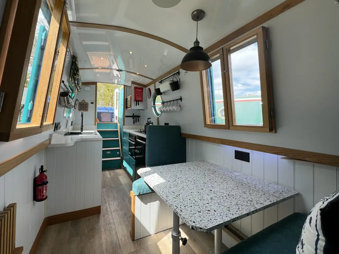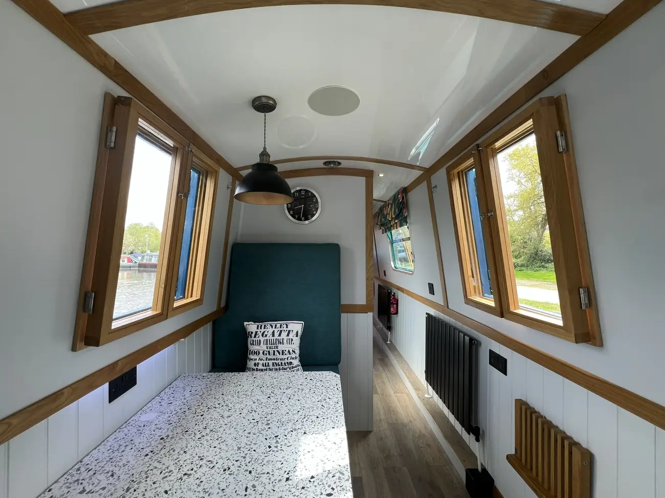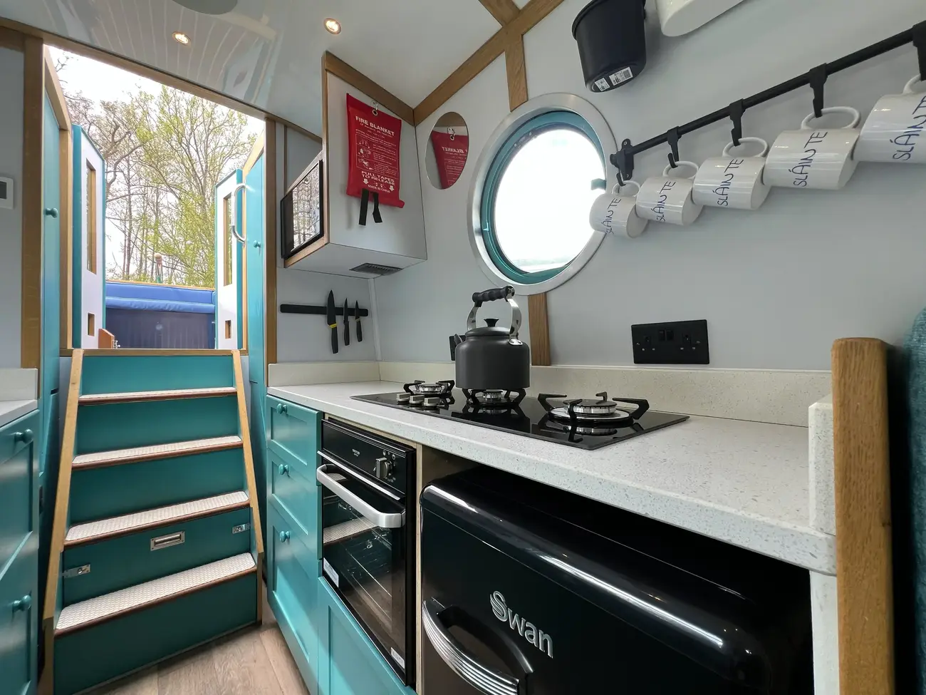 Slainte is a nearly new 45’ cruiser stern Narrowboat built in 2024 by Collingwood/Solseeker. Designed in the popular reverse layout, this spacious vessel offers a comfortable and practical interior, ideally suited to weekends afloat, liveaboard life, or extended cruising. The accommodation is arranged with walkthrough galley aft leading to a saloon with pullman’s style dinette convertible to a double berth and side hatches on both sides. A wet room style bathroom with sink unit, cassette toilet and large shower and a forward cabin with sofa bed.   There is a Bluetooth hi-fi system with multiple speakers through the boat.  Flooring is TekDeck with Roman blinds fitted on all windows.  There are Titan tonneau covers and cushions for bow and stern. Propulsion is provided by a Beta Marine 38hp diesel engine. Cabin heating is delivered via a diesel-fired Webasto central heating system. Hot water is supplied through the central heating system, engine calorifier, and a 240V immersion heater. Both 12V and 240V electrical systems are installed onboard for modern convenience. Slainte is available for viewing seven days a week at Pyrford Marina. To arrange an appointment, please contact the team on 01932 340739.