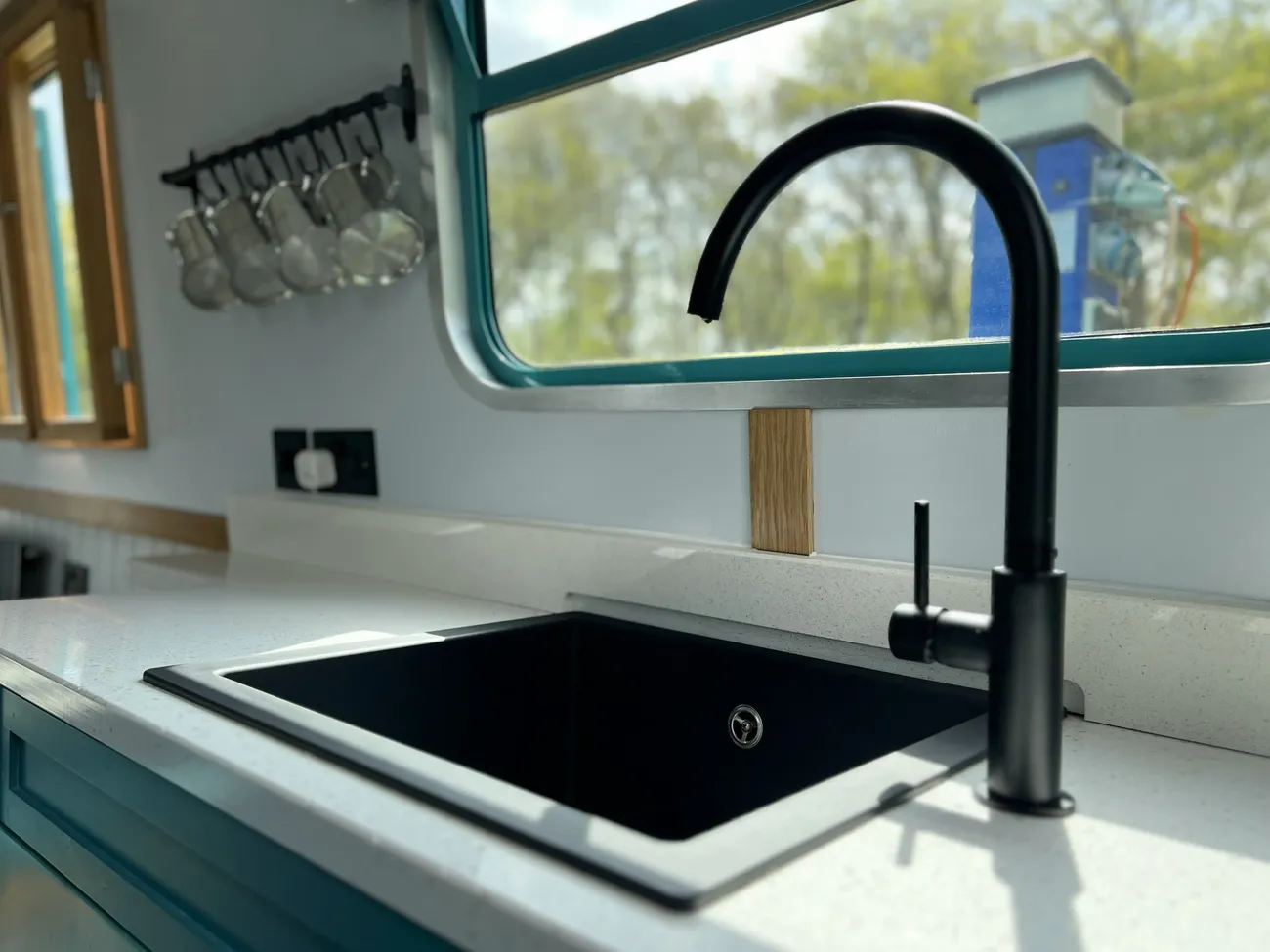 Entering via the central companion way, to starboard is a cupboard housing the electrical systems and inverter/charger, with a cupboard opposite with a shelf and hanging space for coats.  The modern galley includes a three-burner hob, electric oven and grill, sink with mixer tap, 12v fridge, eye-level microwave with ample drawer and cupboard space for cooking equipment and provisions under white counter tops.