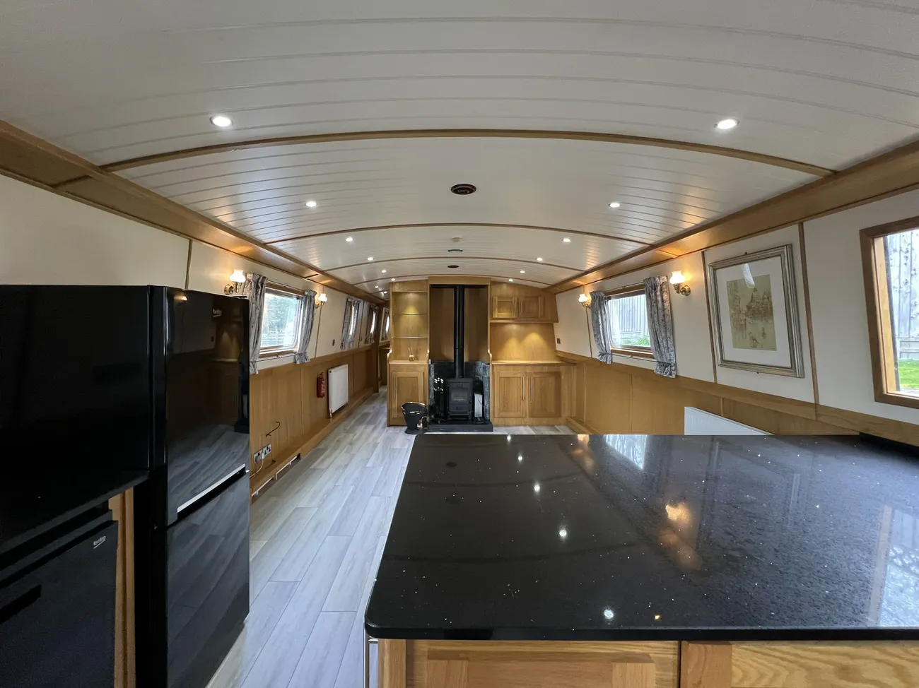 Combining contemporary design with exceptional space, this 57’ x 12’ Collingwood Widebeam commissioned in 2016 and launched in 2017. Designed in the ever-popular reverse layout this Widebeam is ideal as a liveaboard residence or luxurious floating holiday home. The well-appointed galley is positioned aft and features granite work surfaces and a breakfast bar, creating a stylish and sociable cooking space. Forward of the galley, the saloon provides ample room for free-standing furniture, allowing the new owner to tailor the layout to suit their lifestyle. A generously sized bathroom delivers excellent onboard comfort, while the master cabin is located forward and benefits from a comfortable double berth with built-in cupboards, drawers, and wardrobes, providing plentiful storage. Propulsion is provided by a Canaline 52hp four-cylinder diesel engine with just 356 engine hours. Heating is supplied by a Morso Swift multifuel stove in the saloon, complemented by a Webasto diesel-fired central heating system. Hot water is delivered via the engine calorifier, central heating system, and 240V immersion heater. Both 12V and 240V electrical systems are installed onboard for modern convenience. The hull was last blacked in May 2024, and the engine was serviced in November 2025. A new Boat Safety Scheme Certificate will be issued upon sale, valid through to 2030. Offering more living space than many land-based apartments, this spacious Widebeam presents an outstanding opportunity for comfortable waterside living. Widebeam moorings available across the Tingdene group*. Viewings are available seven days a week.