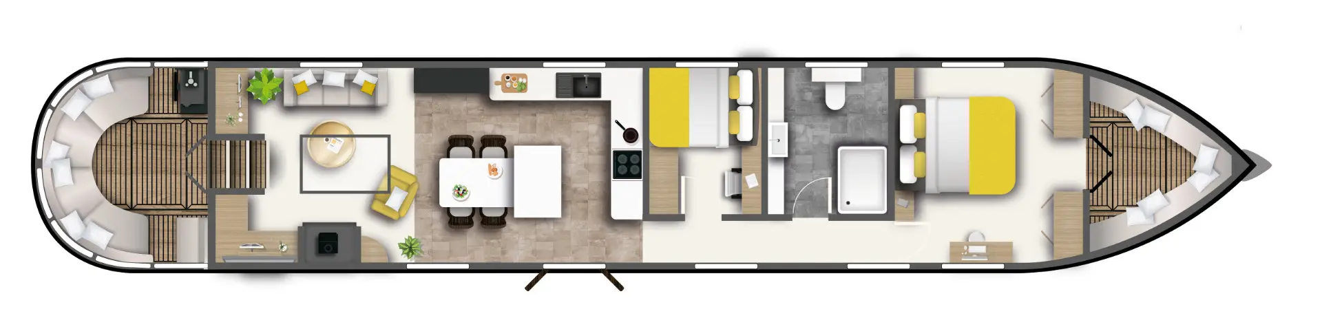 DIMENSIONS Total length 21.3m Beam 3.8m Draft 0.7m