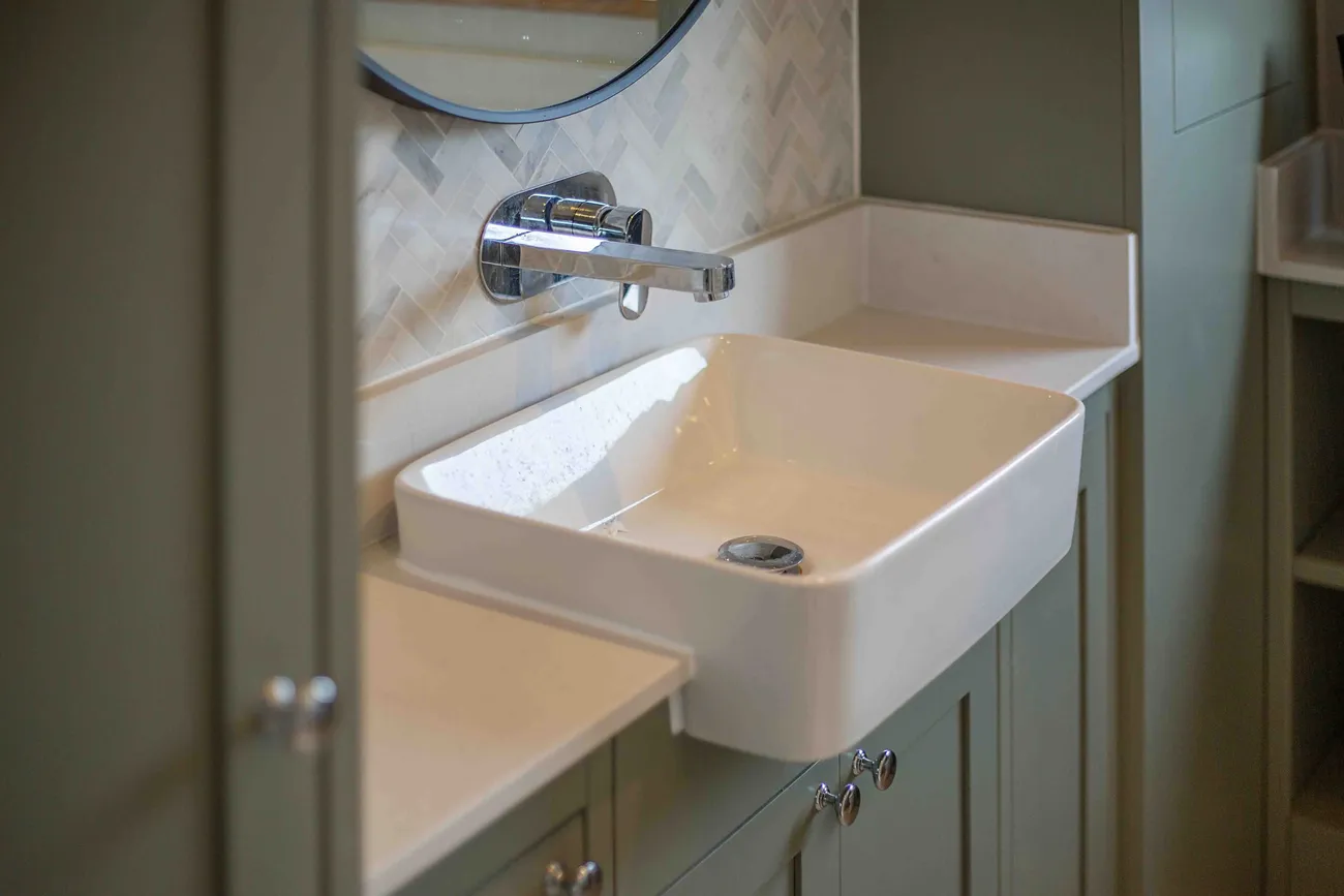 • L-shaped kitchen with granite worktops and stylish butler Belfast sink