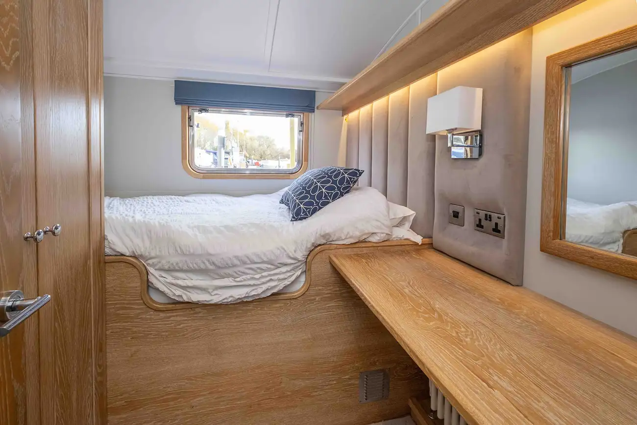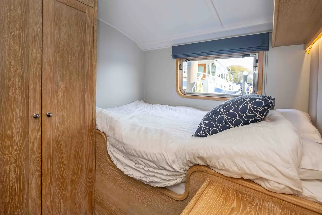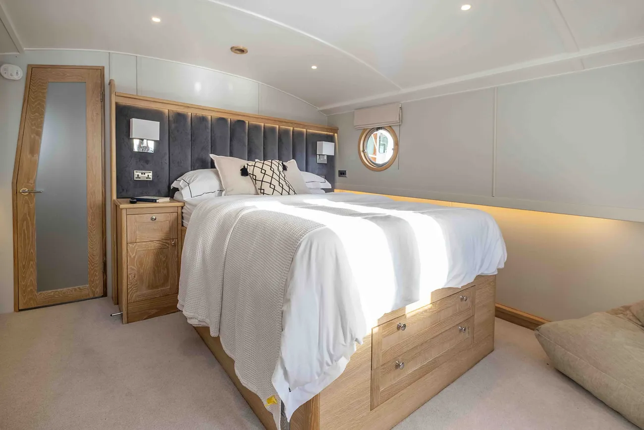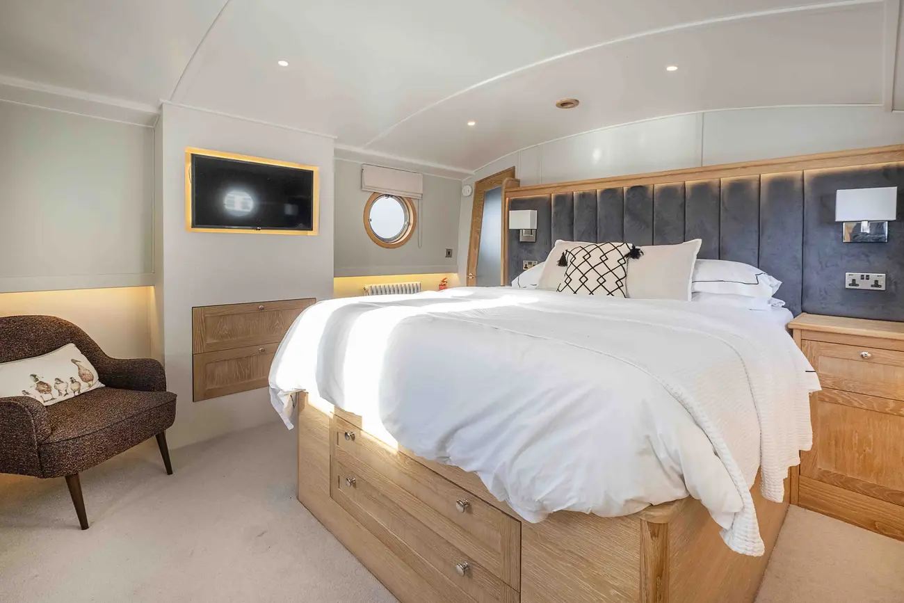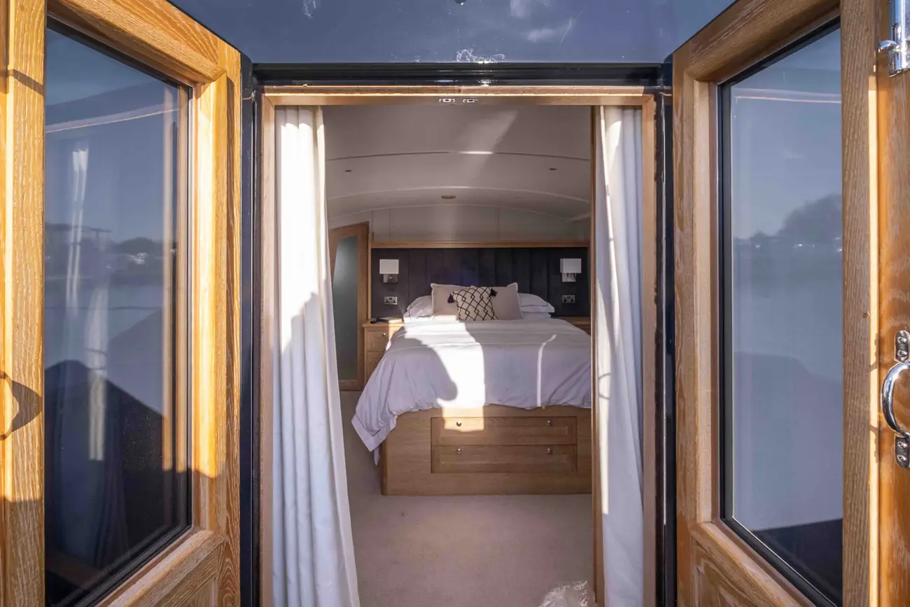 • King-size bed in master suite, double fitted wardrobes and French doors leading to the bow deck.