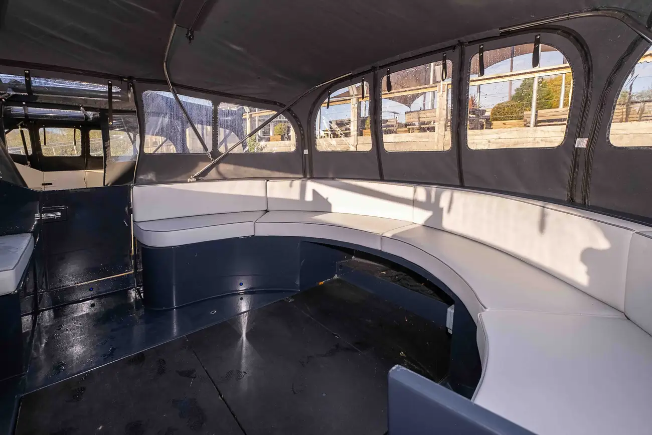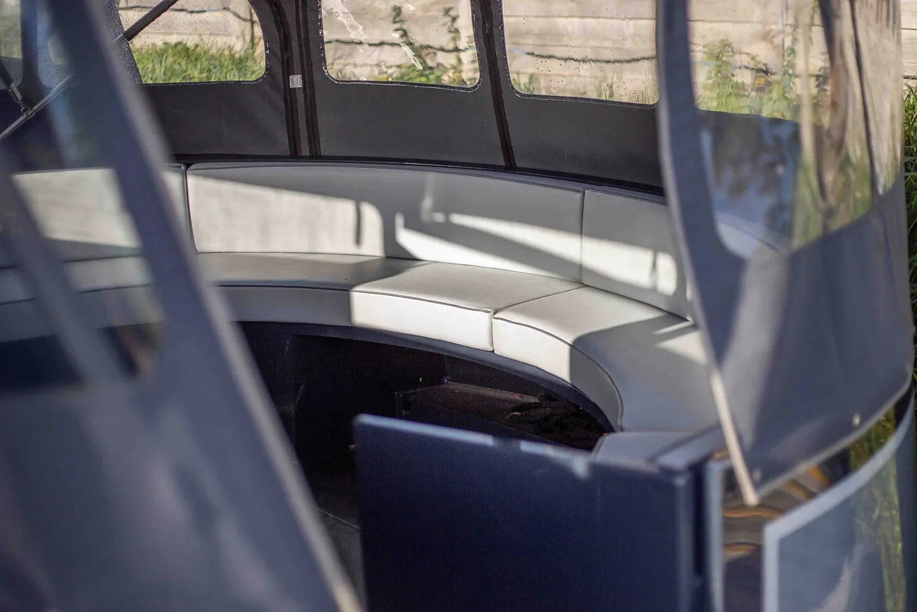• Spacious outside rear deck space with removable rain/sun cover and wrap-around cushions