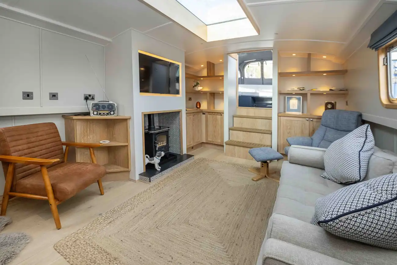 "Black Betty" is a superbly presented example of a widebeam Apartment boat, suppled by Waterspace Living in January 2024 to the current and sole owner , constructed in 2023. Now for sale du to a change in circumstances. "Black Betty" is, presented as new throughout. A full structural survey was carried out in October 2025 with the boat subsequently being reblacked and valeted in advance of being marketed with Tingdene.
