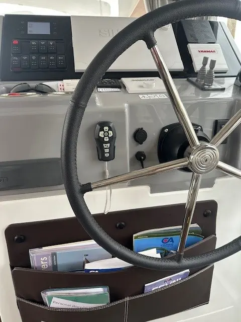 o Simrad 12" multifunction touchscreen display, at helm on FlyLounge