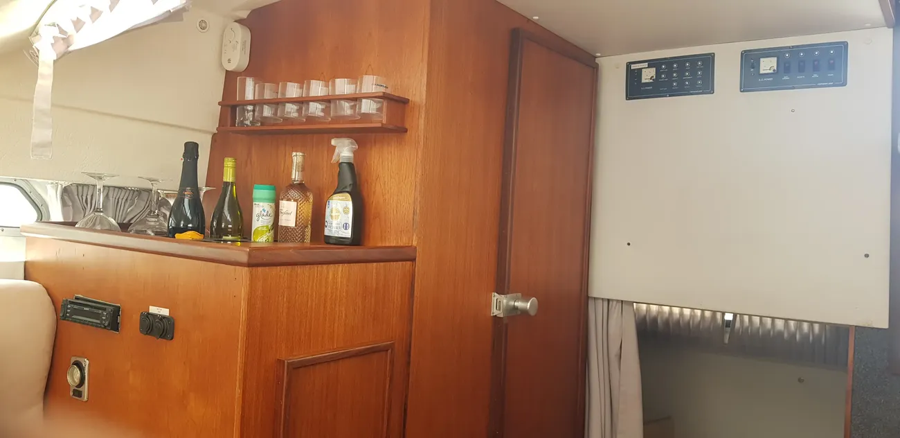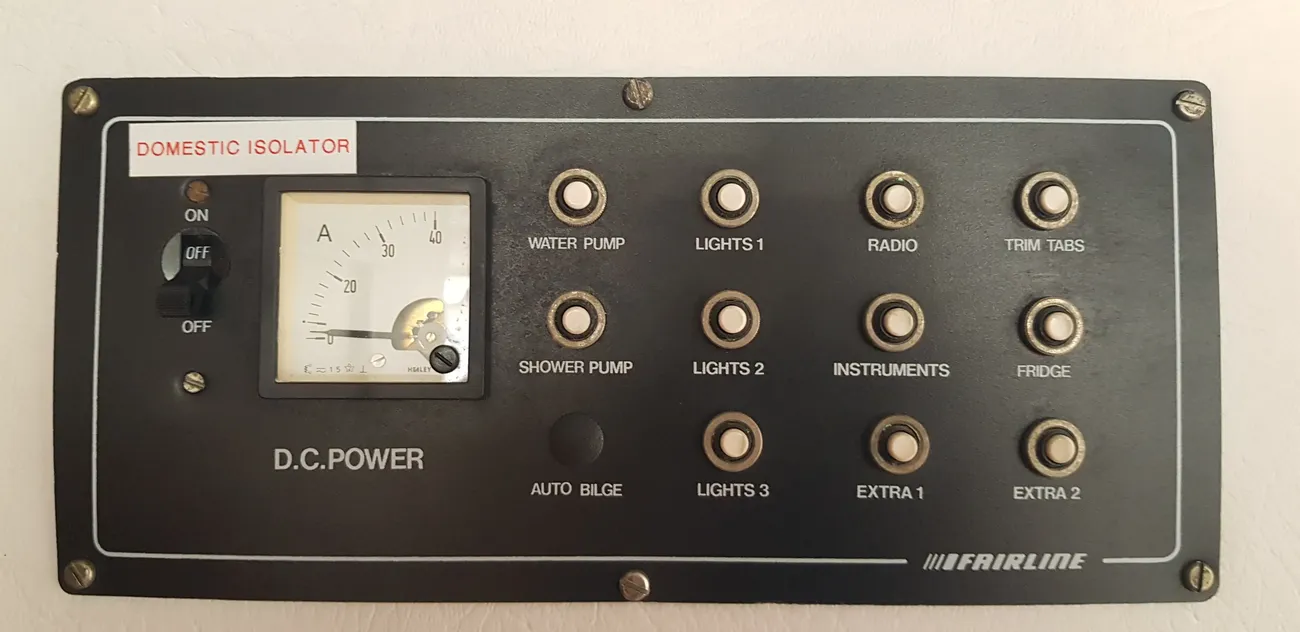 2 x Rev counters, Oil pressure gauges, Temperature gauges, and Volt meters. Rudder Indicator, Fuel Gauge, Engine Hours Gauge, Trim Gauge, Sumlog Speedometer, Trim Tabs, Shore Power, ProCharge Battery Charger, Immersion Heater, Engine Bay Fan, Electric Bilge Pump, Automatic Shower Pump, Water Pump, Light in Radar Arch.