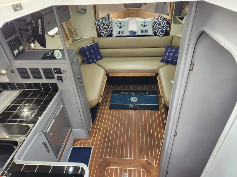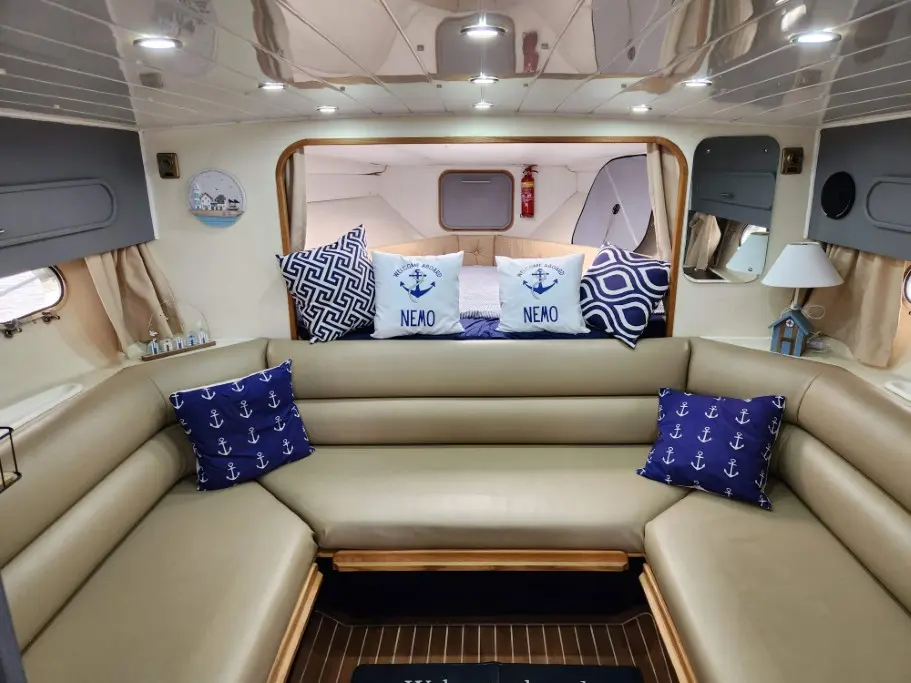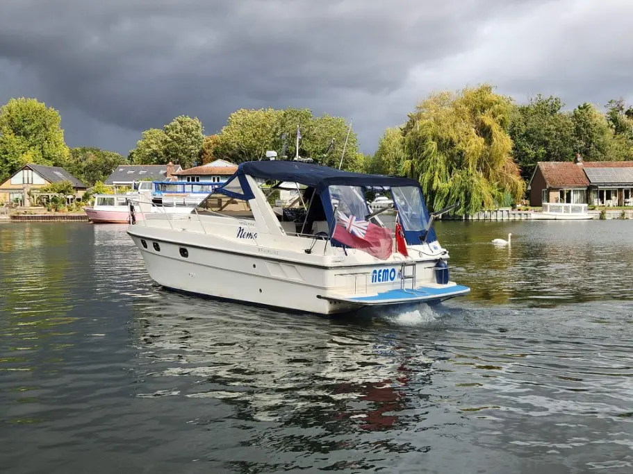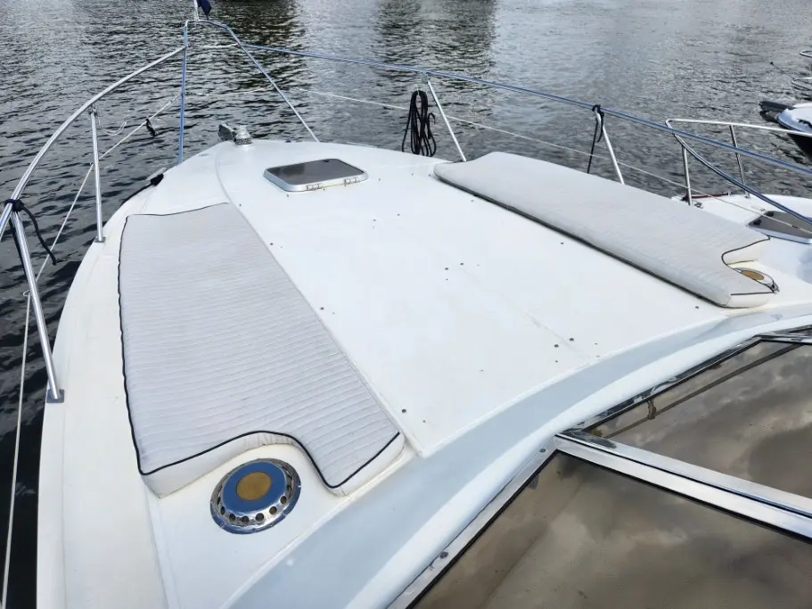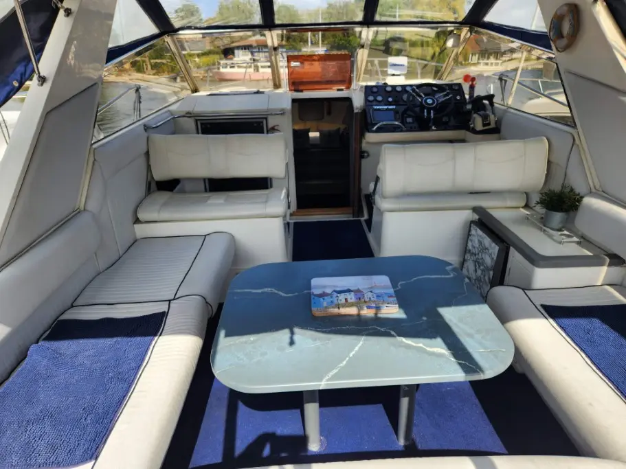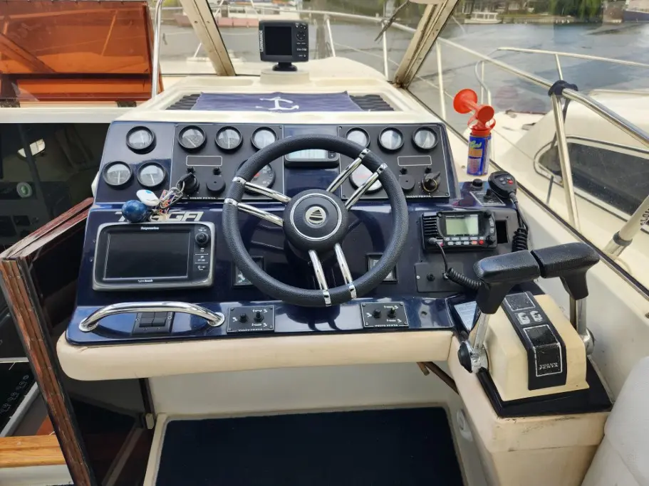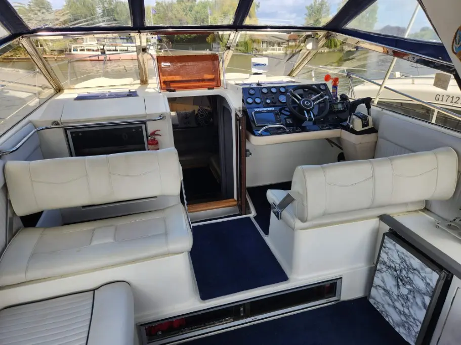 The Fairline Targa 33 is a classic sports cruiser widely praised for its excellent performance & seakeeping abilities. ‘Nemo III’ is powered by twin Volvo Penta AQAD41/DP 200hp diesel engines. The social cockpit is perfect for entertaining your friends & family & includes a drinks fridge. Her accommodation has been upgraded to a high standard throughout with a modern look & consists of a comfortable saloon / dinette, a functional galley, a forward double berth, midships cabin & a head / shower. Eberspächer warm air heating facilitates enjoyable time afloat throughout the seasons. She is fitted with a bow thruster to aid manoeuvrability & docking. The Inverter ensures complete independence whilst cruising.