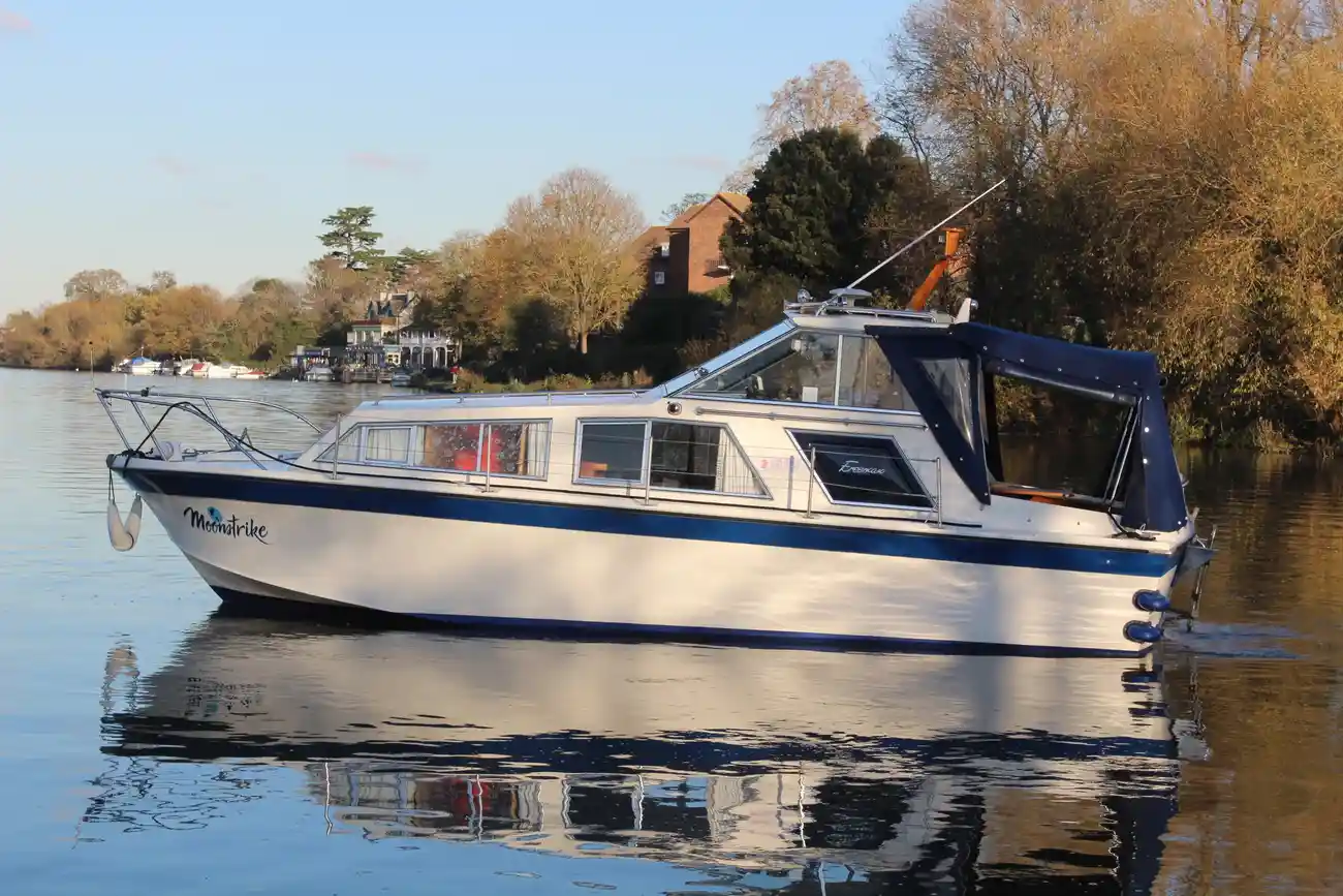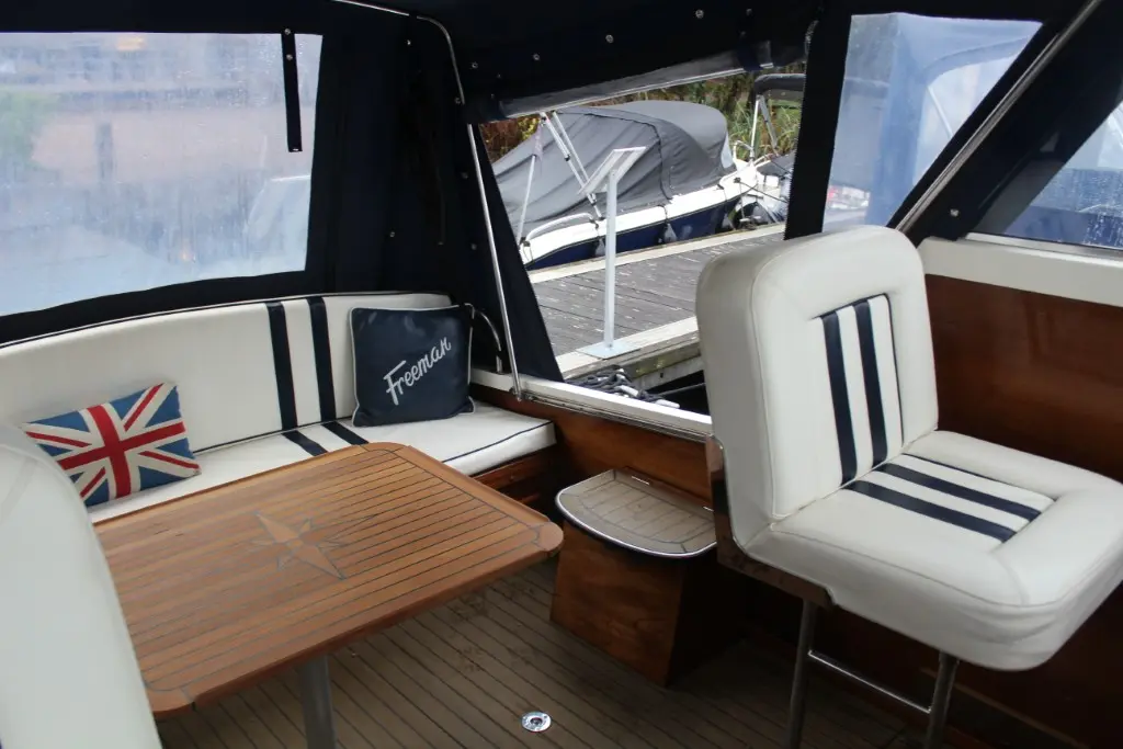 The Freeman 27 is a distinguished powerboat renowned for its exceptional design as a river cruiser. This vessel is celebrated for its spacious living area and well-appointed cockpit, making it the perfect choice for extended holidays on the water. With a practical layout that accommodates multiple berths and ample storage options, the Freeman 27 provides both comfort and functionality for families and groups looking to explore scenic waterways.