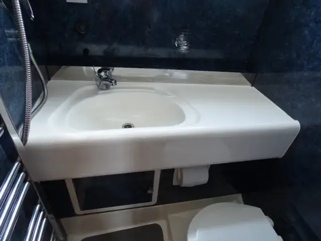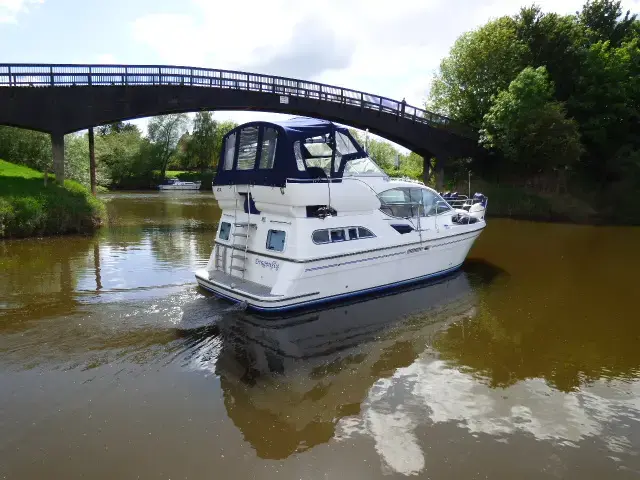 The Haines 320 is a development of the Brom Ocean 31 with an updated superstructure moulding and interior. The boat offers excellent family accommodation for 6 in two private ensuite cabins and the saloon. Dragonfly is a well cared for example of this popular river cruiser. With a great upper deck steering position with folding screen option reducing air draft for low bridges meaning she will get under the bridges onto the river Avon. Some of her features include bow and stern thrusters, Eberspaecher hot water heating system with towel rail, electric anchor winch, battery charger and inverter and much more. She is well worth the trip to come and see her. Open to sensible offers.