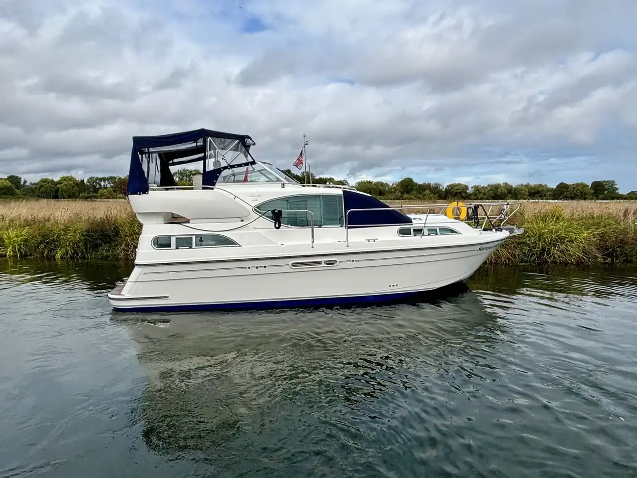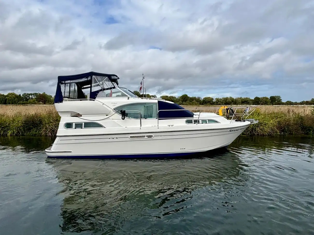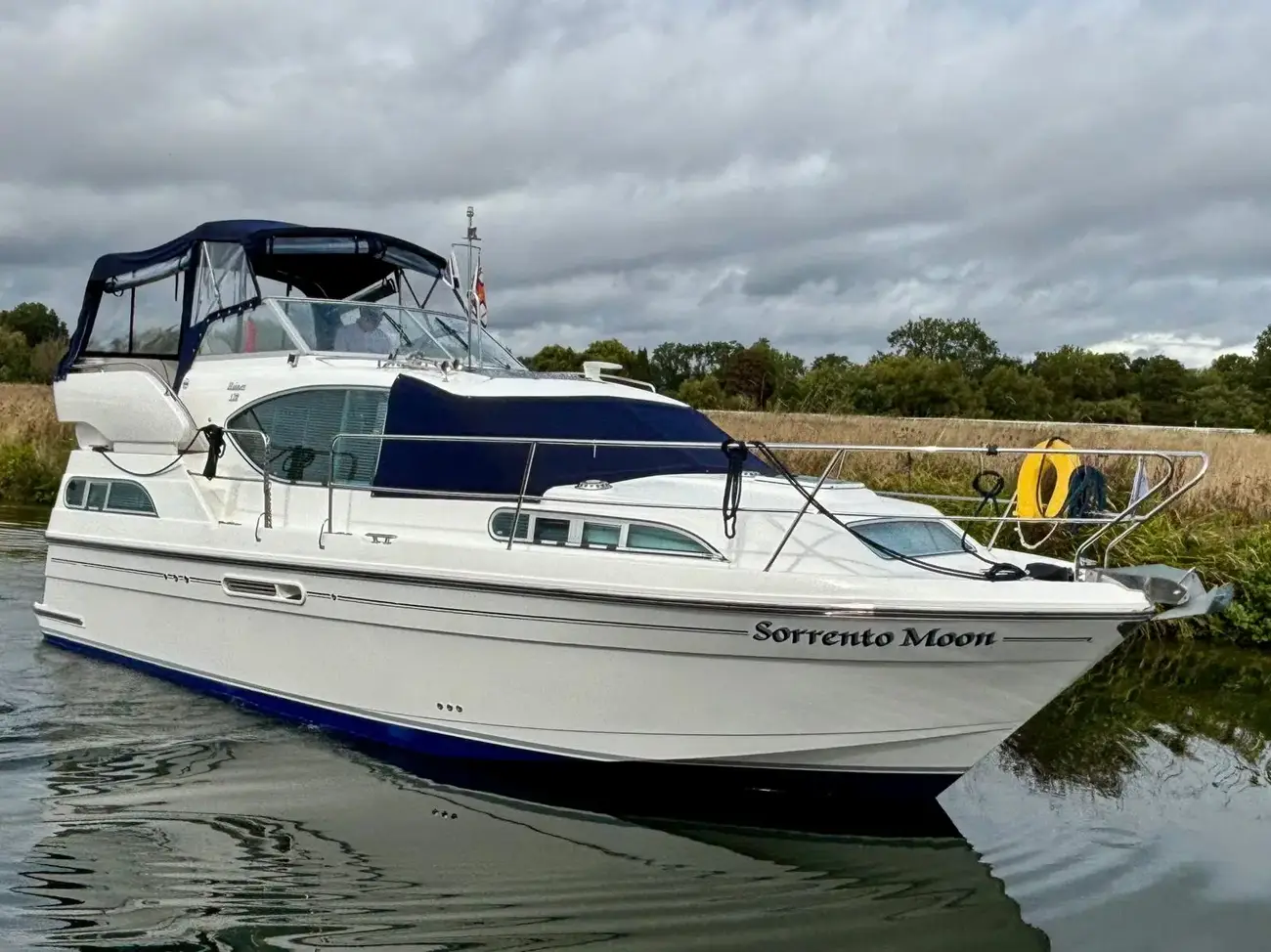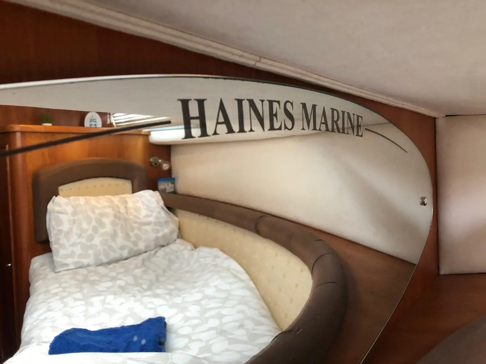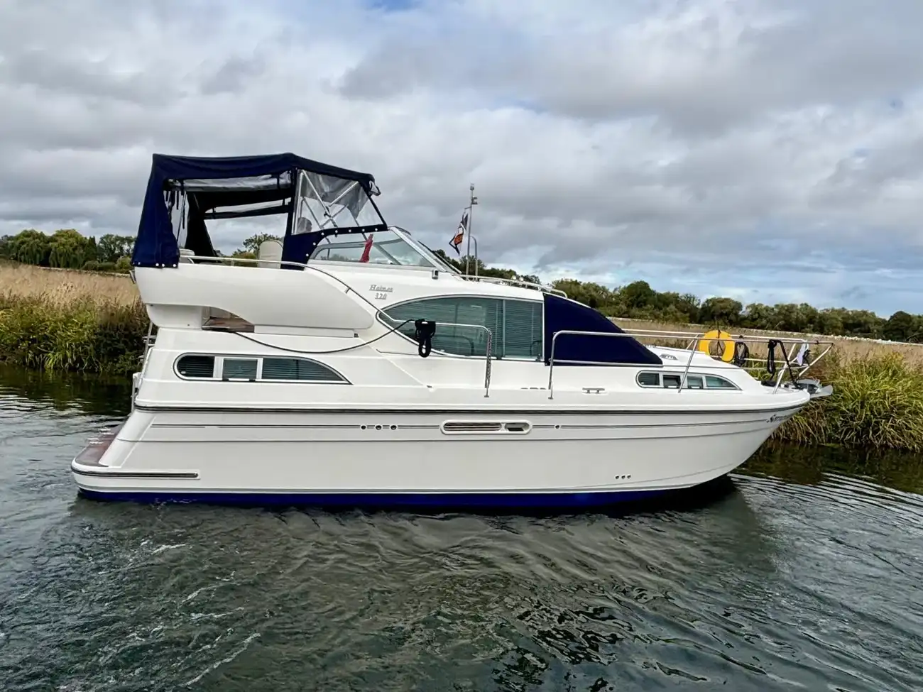 The Haines 320 aft cabin is an award-winning, 32-foot British river cruiser known for its spacious, family-friendly design, featuring two en-suite cabins (a large aft cabin with a double berth and a forward cabin with a double or V-berth), a saloon that converts to a sixth berth, and two separate toilet and shower compartments. Power comes from a single Nanni Diesel 62hp engine on shaft drive, she is equipped with remote bow and stern thrusters for enhanced maneuverability.