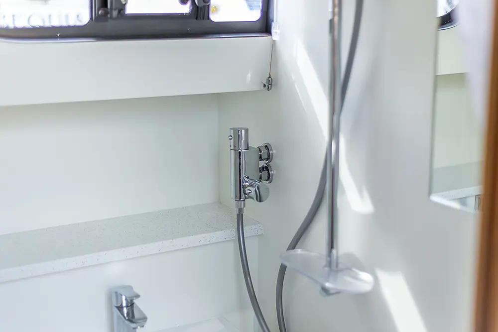 • Shelves fitted to starboard side hanging locker in forward cabin