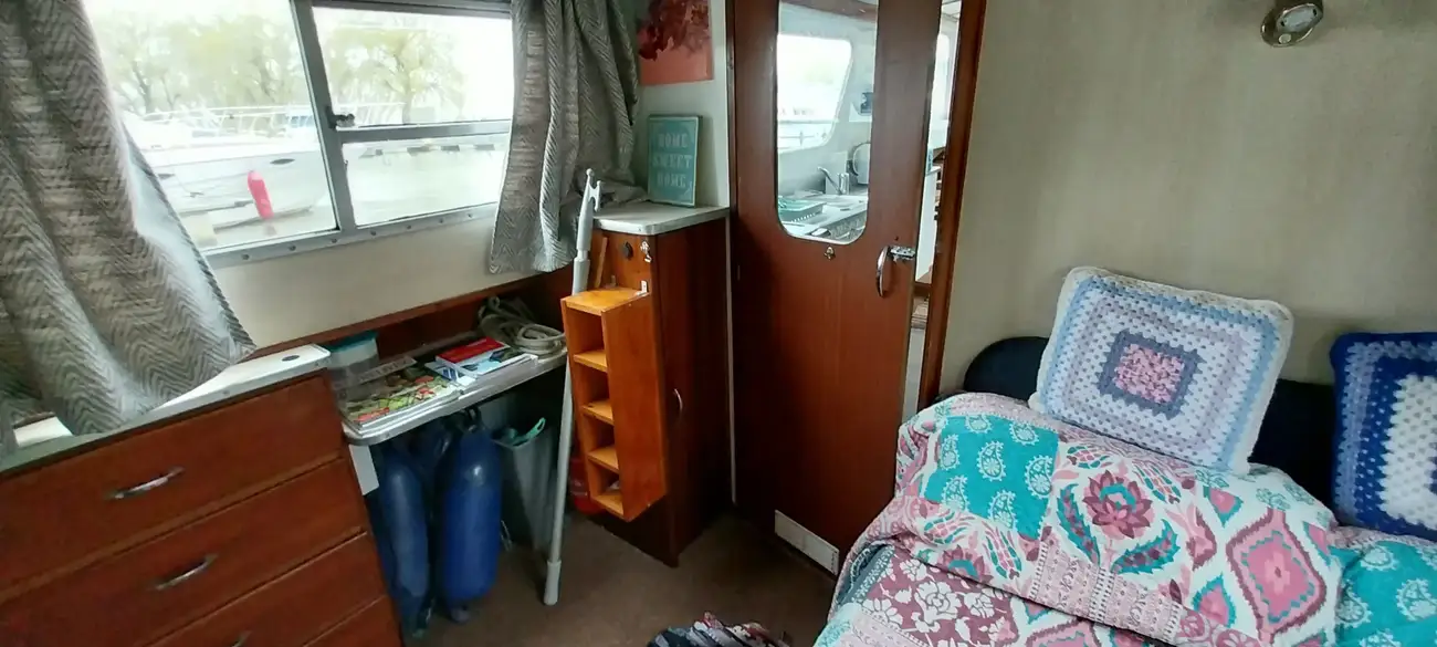 She has a fixed double to the stern with the saloon offering another double with the conversion of the sofa.