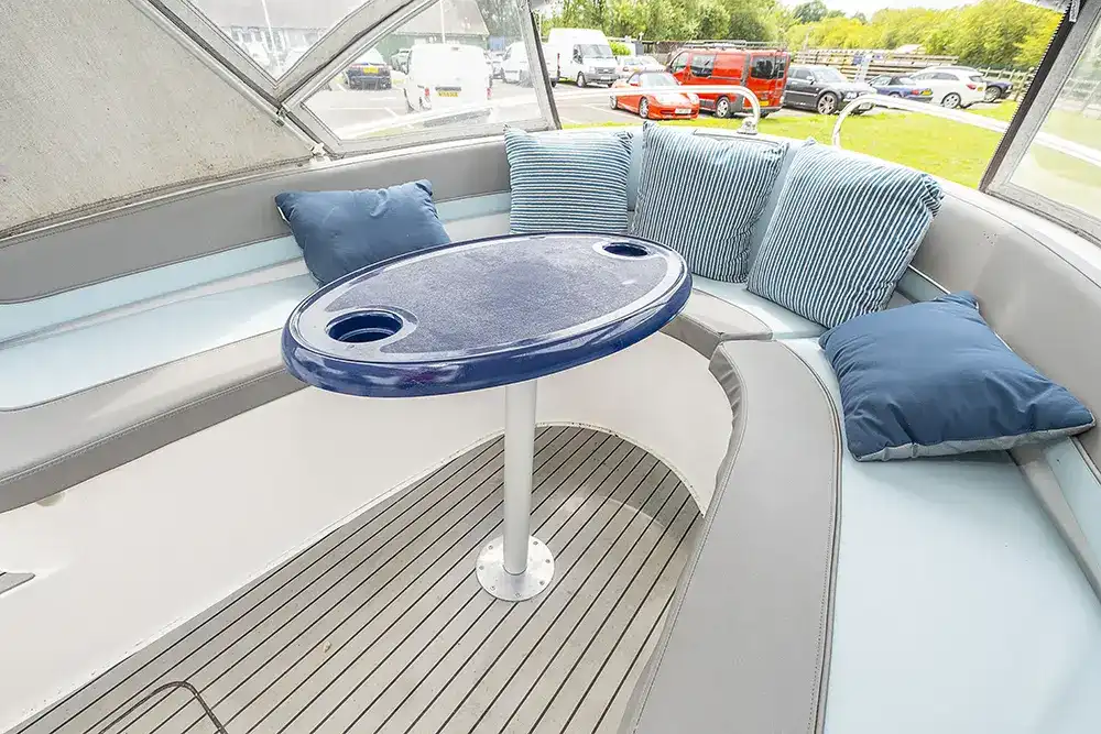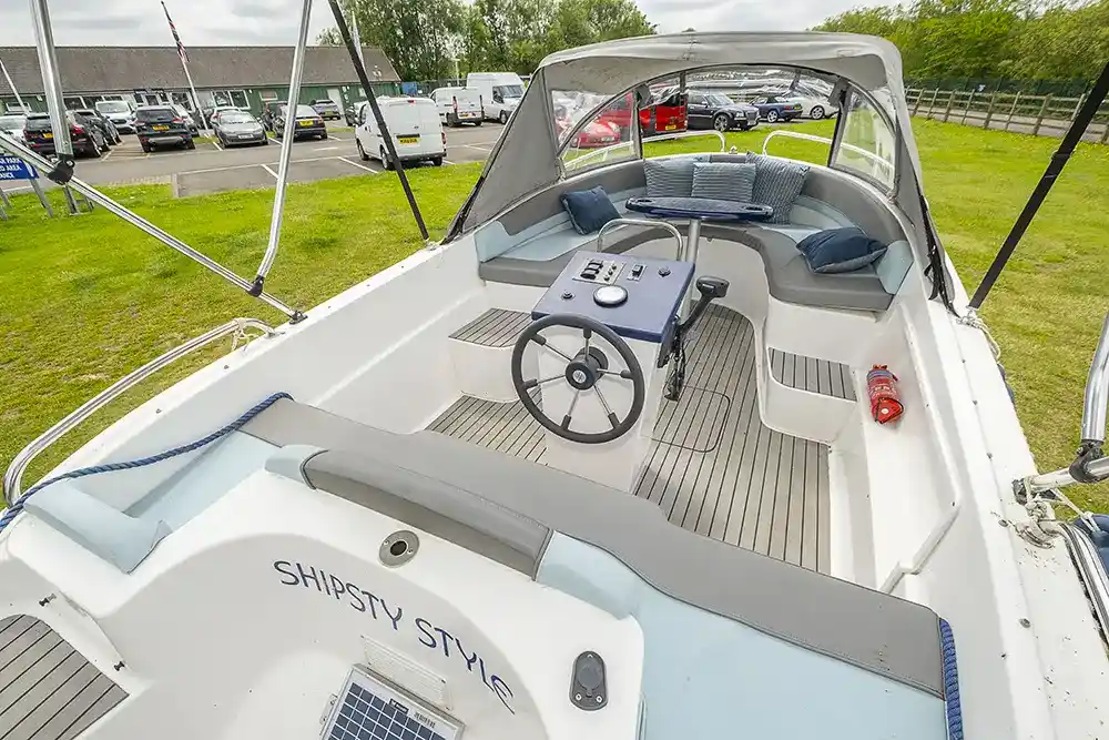 Shiptsy Style is an elegant vessel demonstrating a fine example of a Henley 5. The upholstery and cockpit deck are in unison with a light grey shade with a tint of light blue on the cushions at the helm and bow seating area. Shipsty Style is perfect for cruising up and down the waterways with passengers for day trips with extremely easy manoeuvrability. The Mercury 15HP is not overpowering, just enough to handle for first time boaters as well as seasoned boaters for easy and relaxing journeys. Shipsty Style has been recently lifted out of the water for a structural survey & antifouling in May 2025. If you would like a viewing or have any questions, please contact Tingdene Thames & Kennet Boat Sales on 0118 947 7770.