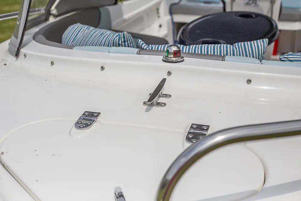 Hand-built in the UK by a team of highly experienced boat builders with a fiberglass hull, twin core internal stiffening.