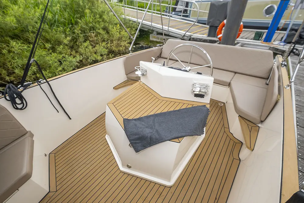 Pimalai is an elegant example of a Isloep Rapida 777, ideal for cruising up and down the waterways and classified to a C Category, therefore, able to journey inshore such as, coastal waters, large bays, estuaries, lakes and rivers. The cockpit space is excellent for hosting your passengers with seating either side of the helm seat at the stern as well as a cockpit table and bow seating. The V Shaped hull allows you to cut through the water comfortably and the Yanmar engine assists with a smooth ride. Having a bow thruster adds to easy manoeuvring vessel when traveling and berthing. Forward of the bow seating arrangement, there is a head cabin with privacy for passengers which creates the availability to take longer day trips. If you would like to view and make an appointment, please call 0118 947 7770.