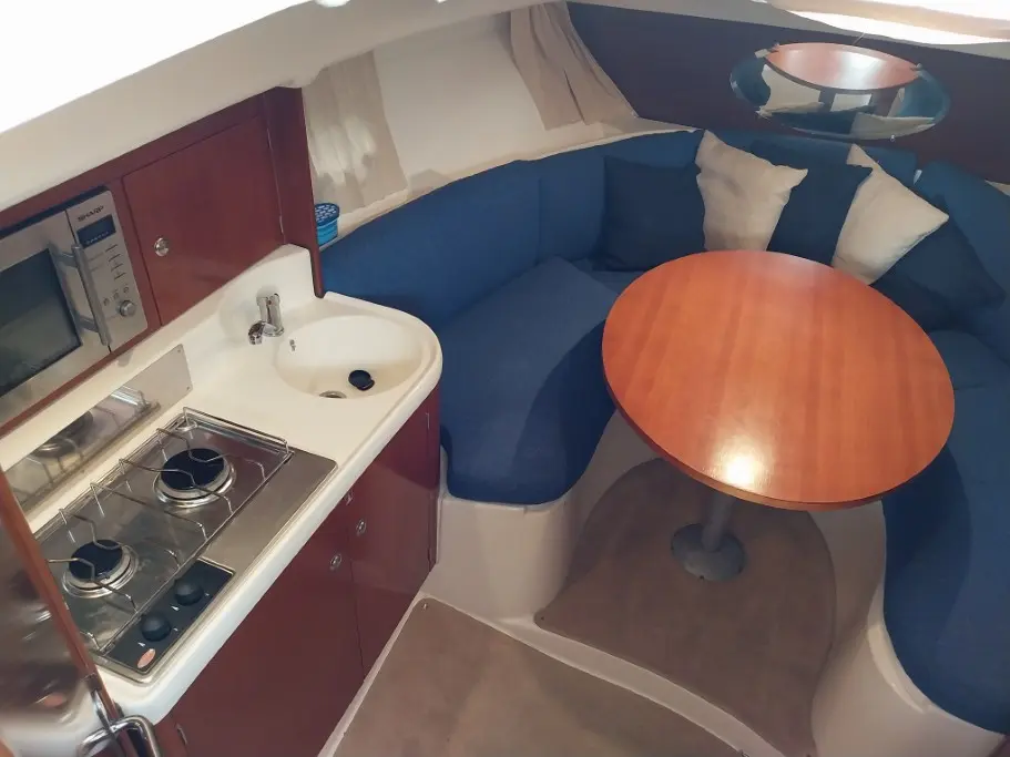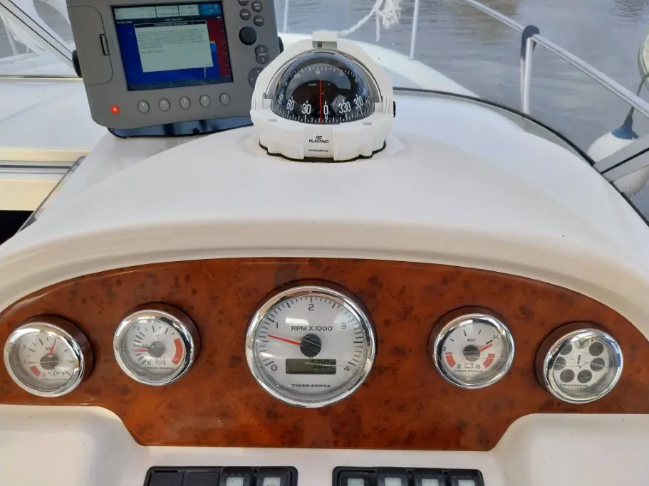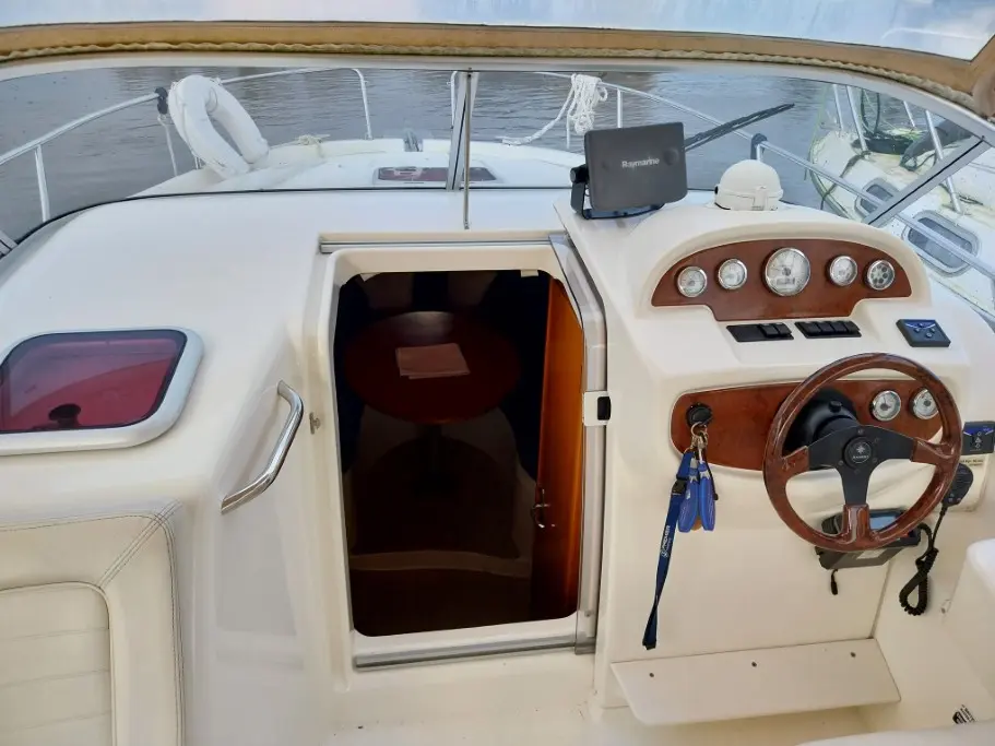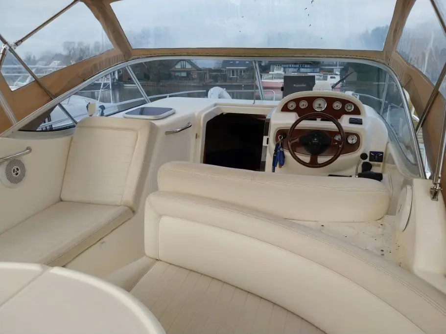 Most sought after configuration of this highly popular diesel sports boat with a Volvo D4 engine with only 500 hours shown. 4 berth accommodation with a separate toilet and shower compartment. Specification to include; shore power, battery charger, VHF, holding tank and more.  Galley with 2 burner gas hob, microwave, electric fridge and sink. Engine serviced June 2024. A clean and tidy example of these popular sports cruisers, featuring an exceptionally spacious cockpit for its size and the sought-after diesel engine configuration. On water photos to follow.