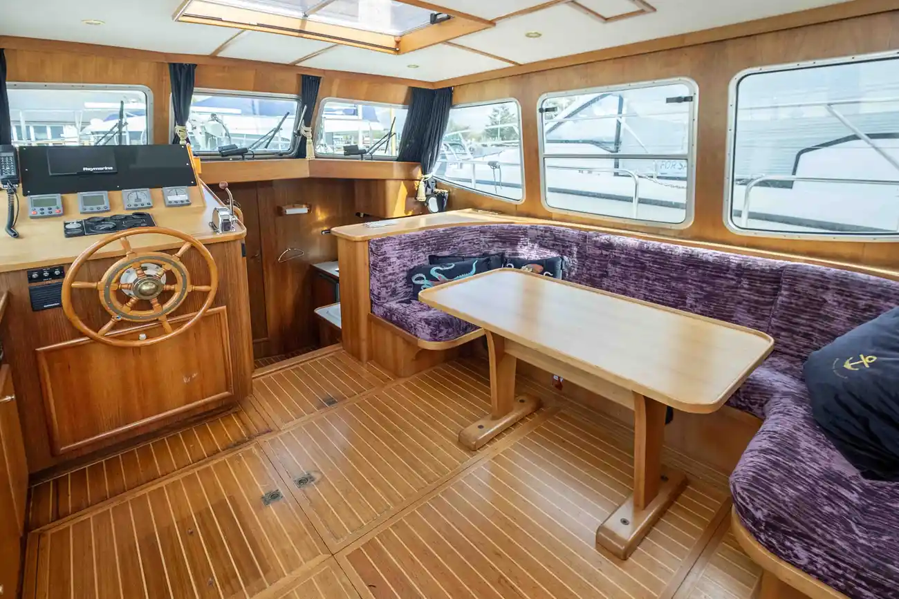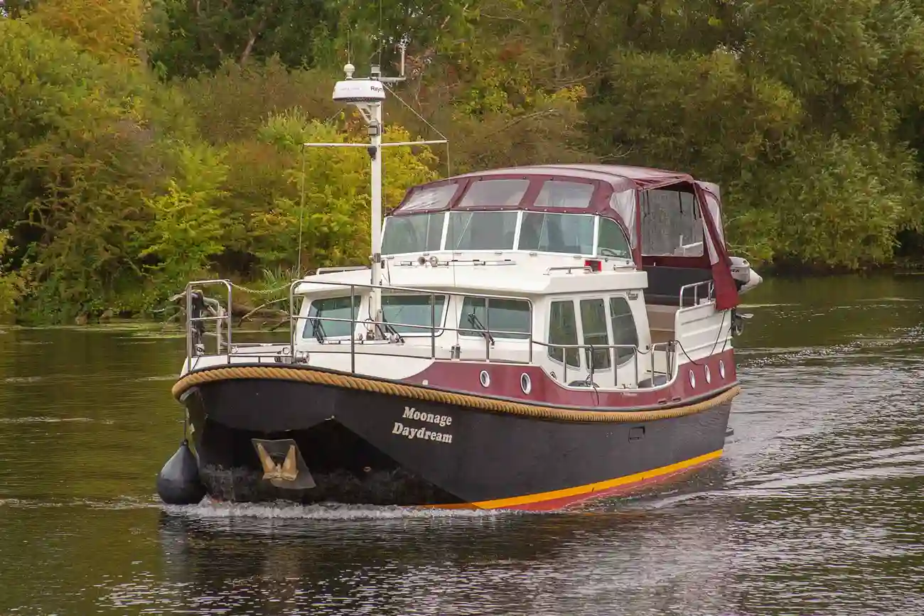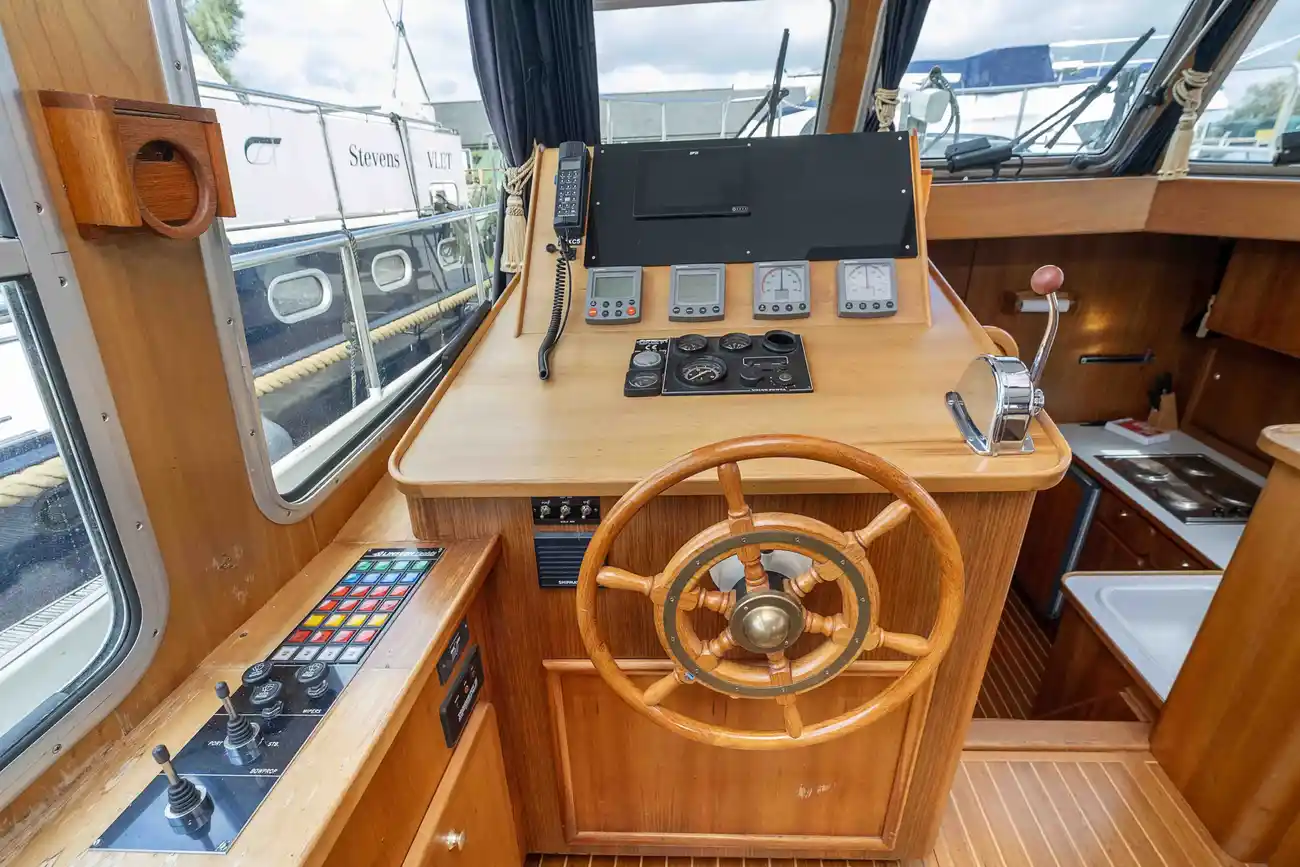 Moonage Daydream is in fair cosmetic condition and of good structural condition, newly surveyed in August 2025 and with most recommendations attended to since. Powered by a Volvo Penta TAMD 41H 145 HP diesel and fitted with bow and stern thrusters to aid manoeuvrability. Her layout incorporates a forward cabin with V Beds a double aspect galley, Interior and exterior helms, a spacious saloon , separate toilet and shower, both with washbasins and a master cabin aft. Fitted items include 7 KVA Generator, Heating, Hydraulic folding mast, Boat safety valid tp March 2028, Full rear deck canopy and side panels. Ray marine ST 60 instrumentation to compass, Log and depth, ST 6000 Autopilot, Axiom, 9" chart plotter, RN 300 GPS Radar, davits, - The Tender, its trailer and outboard are available subject to discussion, Outboards requires work.