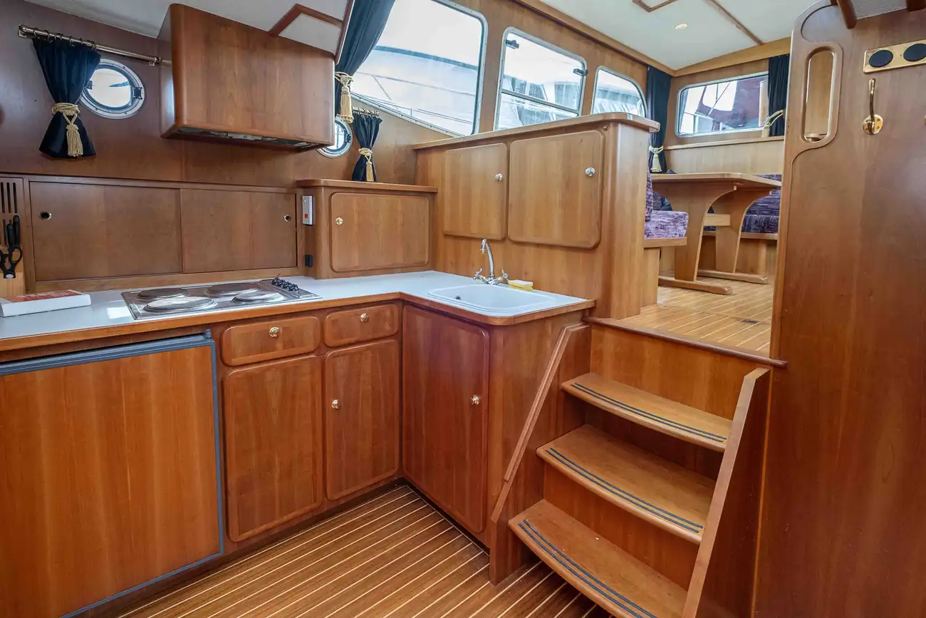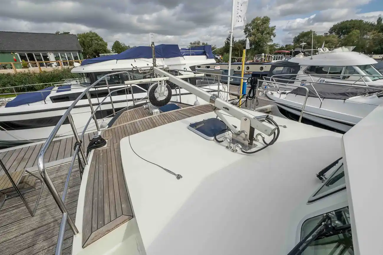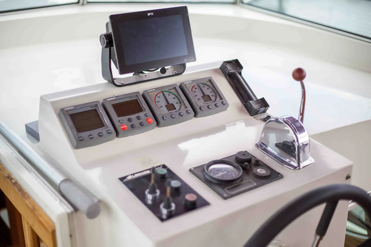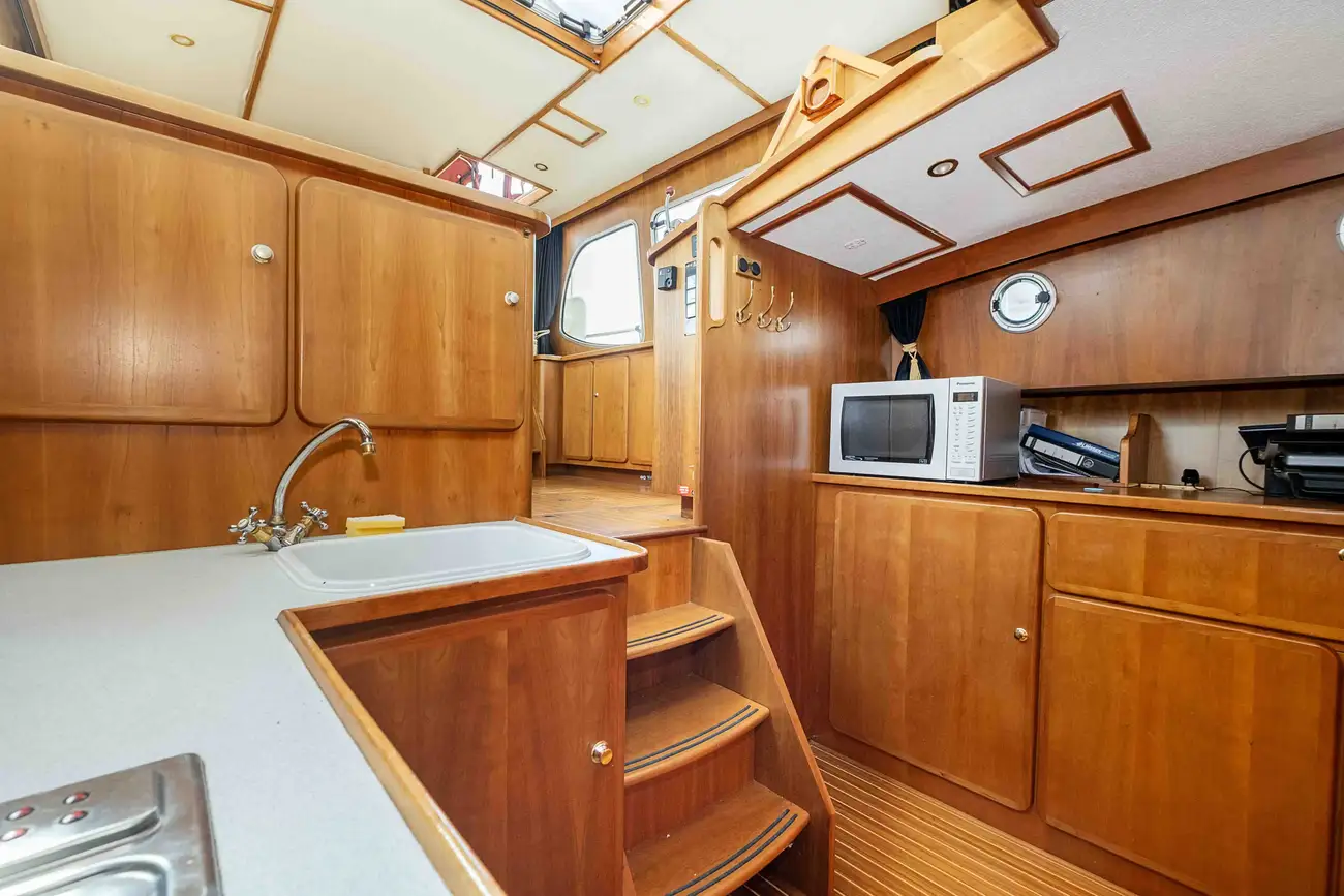 Moonage Daydream is in fair cosmetic condition and of good structural condition, newly surveyed in August 2025 and with most recommendations attended to since. Powered by a Volvo Penta TAMD 41H 145 HP diesel and fitted with bow and stern thrusters to aid manoeuvrability. Her layout incorporates a forward cabin with V Beds a double aspect galley, Interior and exterior helms, a spacious saloon , separate toilet and shower, both with washbasins and a master cabin aft. Fitted items include 7 KVA Generator, Heating, Hydraulic folding mast, Boat safety valid tp March 2028, Full rear deck canopy and side panels. Ray marine ST 60 instrumentation to compass, Log and depth, ST 6000 Autopilot, Axiom, 9" chart plotter, RN 300 GPS Radar, davits, - The Tender, its trailer and outboard are available subject to discussion, Outboards requires work.