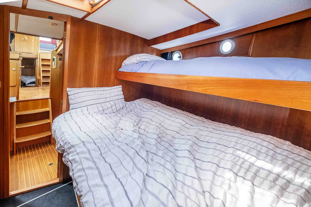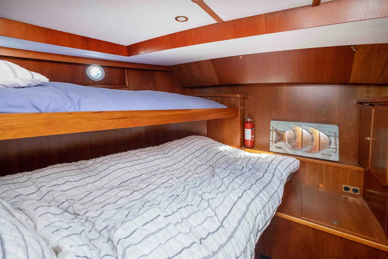 Double Berths – 1 in aft cabin plus 1.5 lower bunk in forward cabin