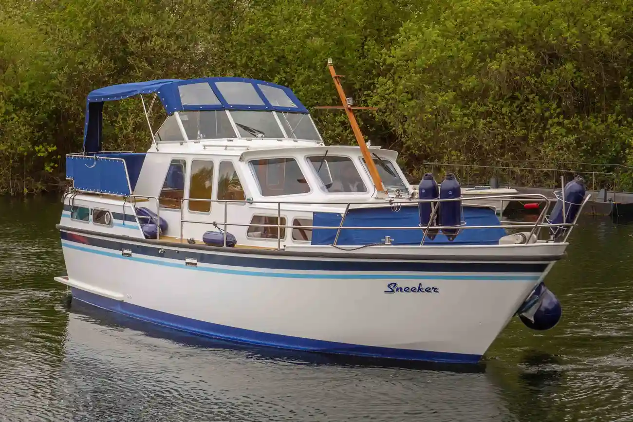 ‘Sentana No.2’ a Liverpool Boats 56’ Semi Trad Narrowboat. Designed in a forward layout. This vessel offers a master cabin aft with a convertible across width double bed, a bathroom with cassette toilet, a U-shaped galley, an L-shaped dinette and an open planned saloon is found forward with space available for free standing furniture. Powered by a Barrus Shire 45hp 4-cylinder diesel engine. Central heating is provided by a Eberspacher diesel heater running radiators throughout the boat and a Morso Squirrel multifuel stove in the saloon. Hot water is supplied by the engine calorifier, central heating system and a 240V immersion. 240V & 12V electrics on board with 2 x solar panels fitted. At 56 feet she will comfortably take you cruising throughout the waterways network. Accommodating up to 6 berths, this Narrowboat is perfect for weekends and holidays or as a comfortable liveaboard. This Narrowboat is ready to view at Pyrford Marina, to arrange a viewing please call the team on 01932 343275 to organise a viewing onboard.