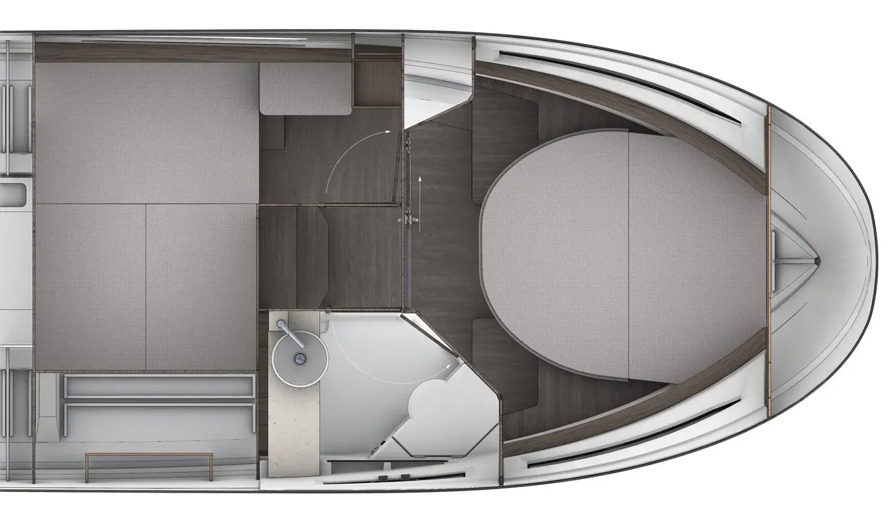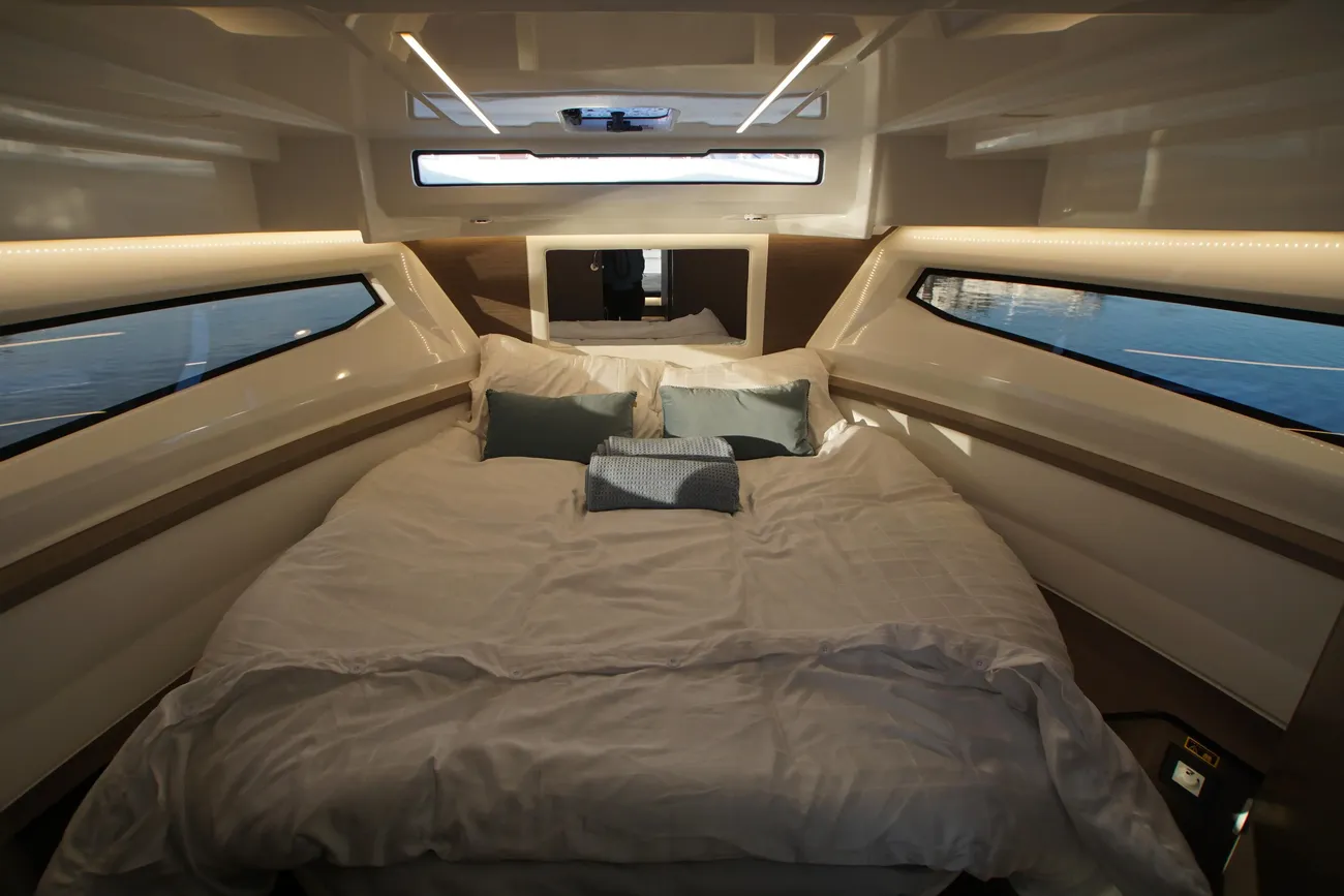 – Headband cushion on the bed in the front cabin