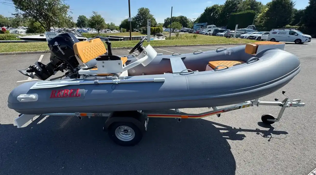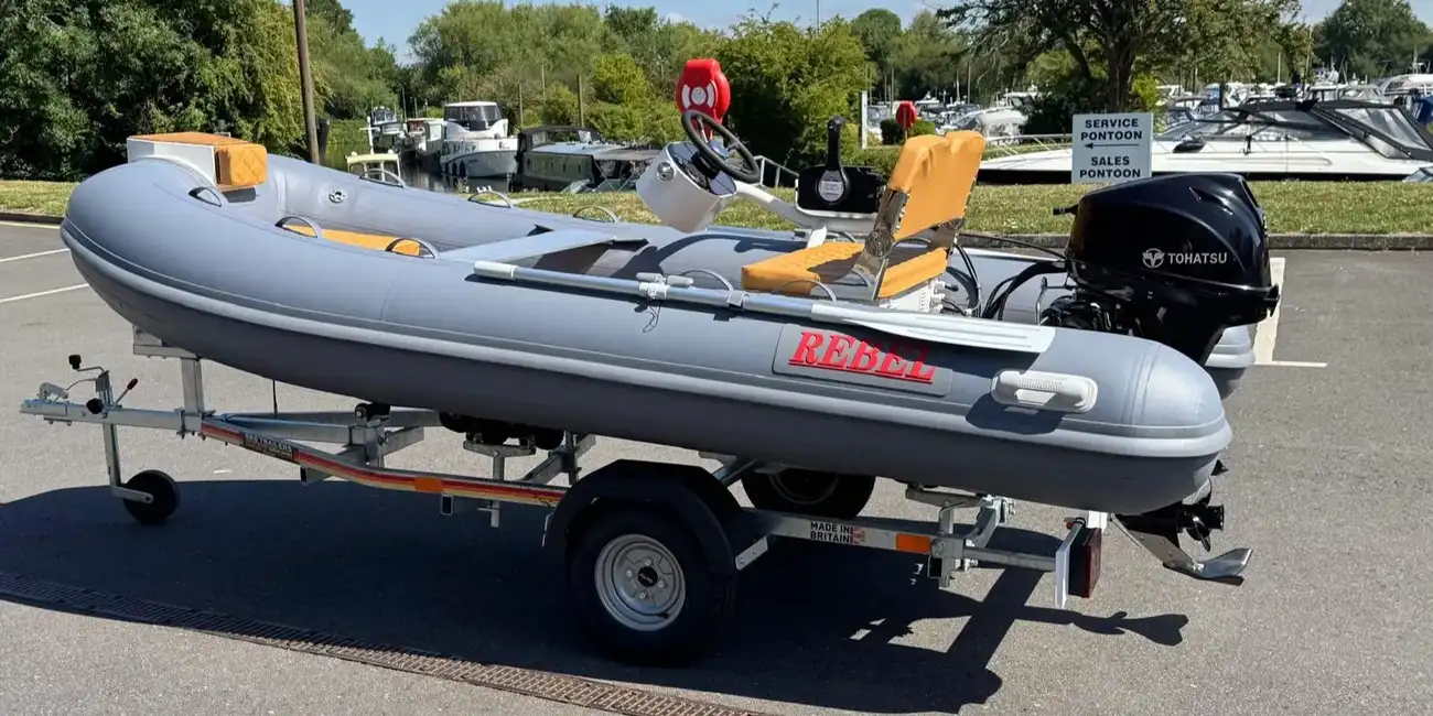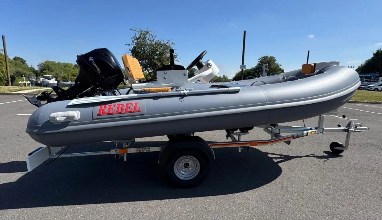 Or, you can pre-order ready for the 2026 season. With a choice of upholstery finishes stocked, the Rebel Raider 380 is a high quality RIB, ideal for getting out on the river, lakes or near coast exploring. Thanks to the lightweight construction, the Raider design allows you to use smaller engines while delivering improved fuel efficiency and performance compared to other RIB’s in the class. With a heavy-duty keel guard you can confidently run your Rebel Raider 380 onto the beach or to locations where you wouldn’t take a GRP boat due to grounding issues.
