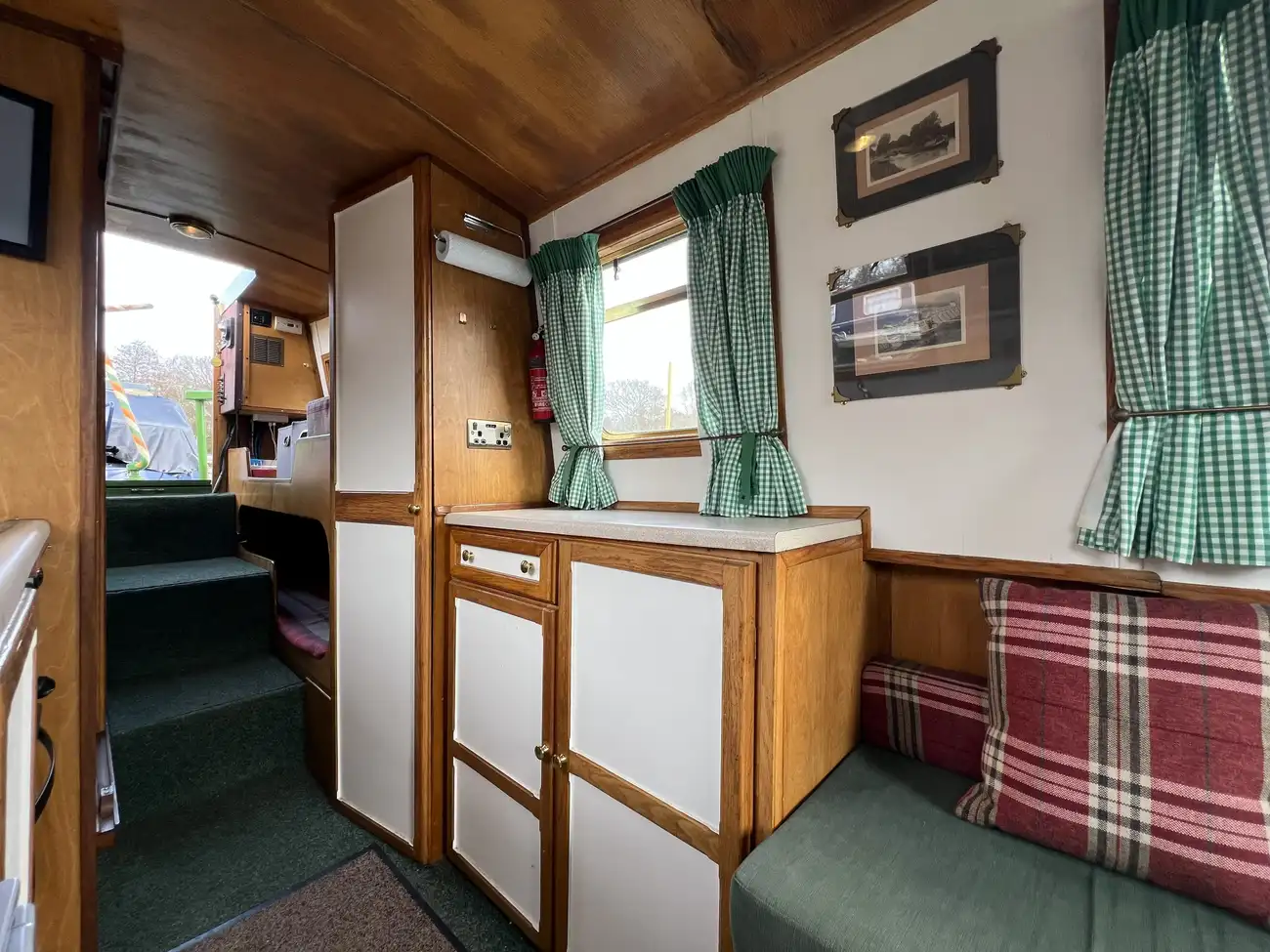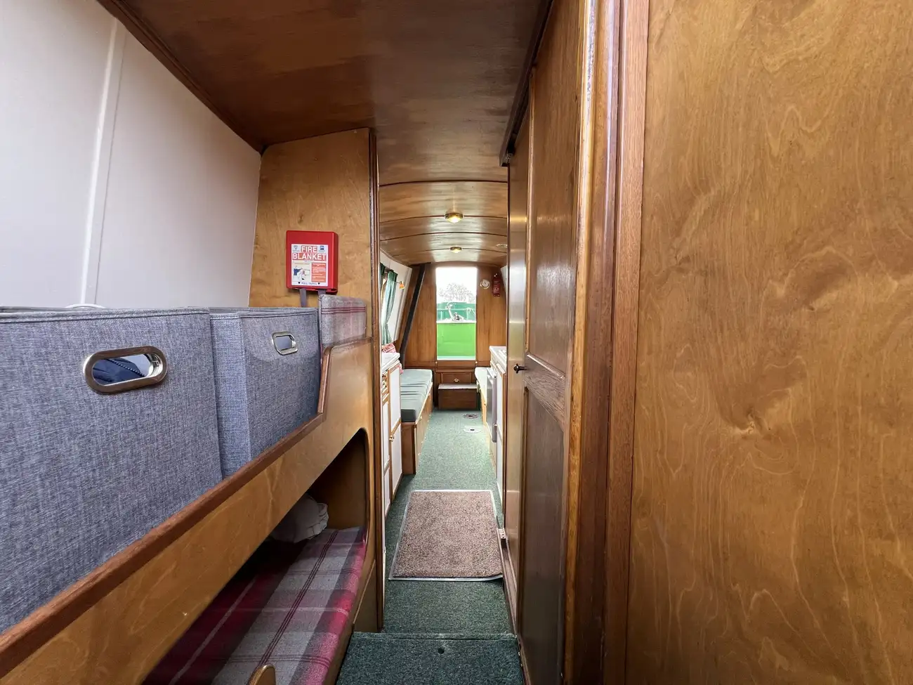 Cuddy is a charming 29ft Narrowboat built by R&D Fabrications in 1993. Thoughtfully designed to maximise comfort and space, she offers versatile accommodation for up to four people within a compact and practical layout. The interior arrangement features twin single bunk beds aft, followed by a wet room-style bathroom fitted with a pump-out toilet. A walkthrough galley sits midships, while the cosy saloon found forward offers port and starboard seating that can also be used as two additional single berths when required. Propulsion is provided by a Nanni 14hp two-cylinder diesel engine, with hot water supplied via the engine calorifier. Cabin heating is delivered by a multifuel stove located in the saloon, providing warmth during the cooler months. The boat is equipped with both 12V and 240V electrical systems, offering modern convenience within a compact and characterful vessel. Recent maintenance includes hull blacking in July 2024, hull surveyed in August 2021. The exterior coachwork was repainted in July 2024 and the Boat Safety Scheme Certificate is valid until July 2027. Cuddy is currently available for viewing at Pyrford Marina. To arrange a viewing, please contact the team on 01932 343275.