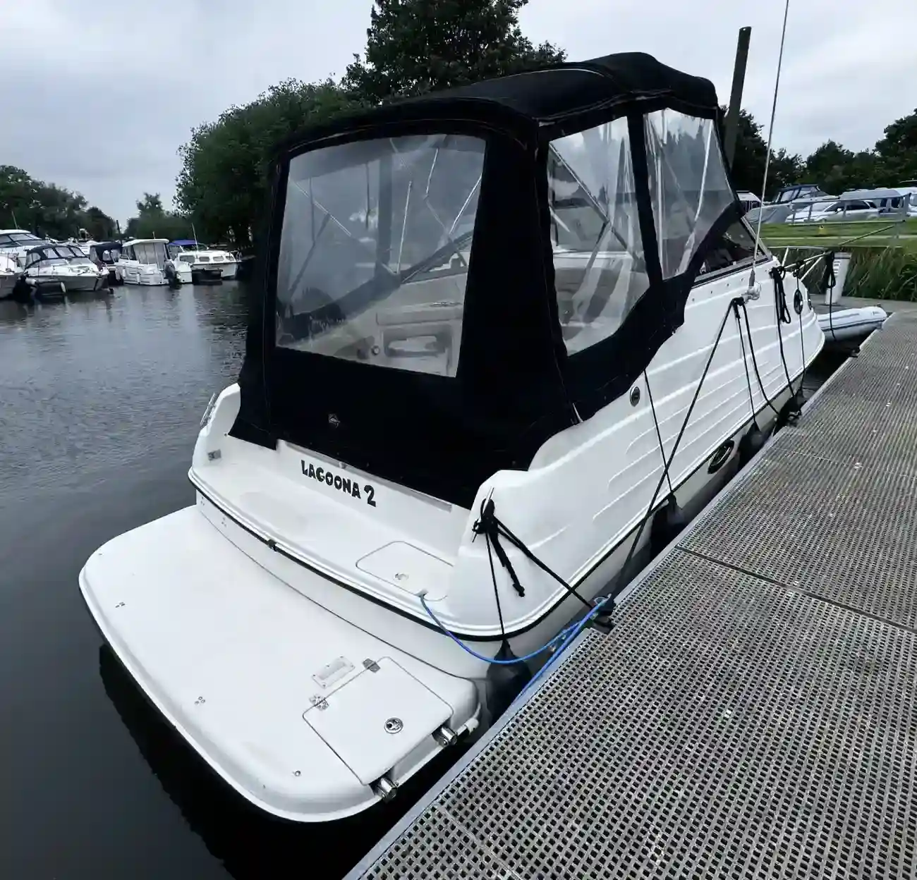 Inventory: Navigation lights, Garmin GPSmap 276c, Depth sounder, Icom VHF radio, Lenco trim tabs, New 32” SmartTV, Warm air heating, Compass and 240v Shore support.