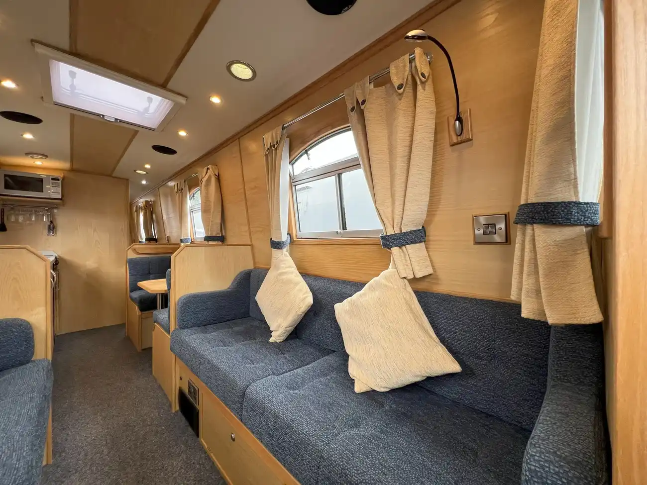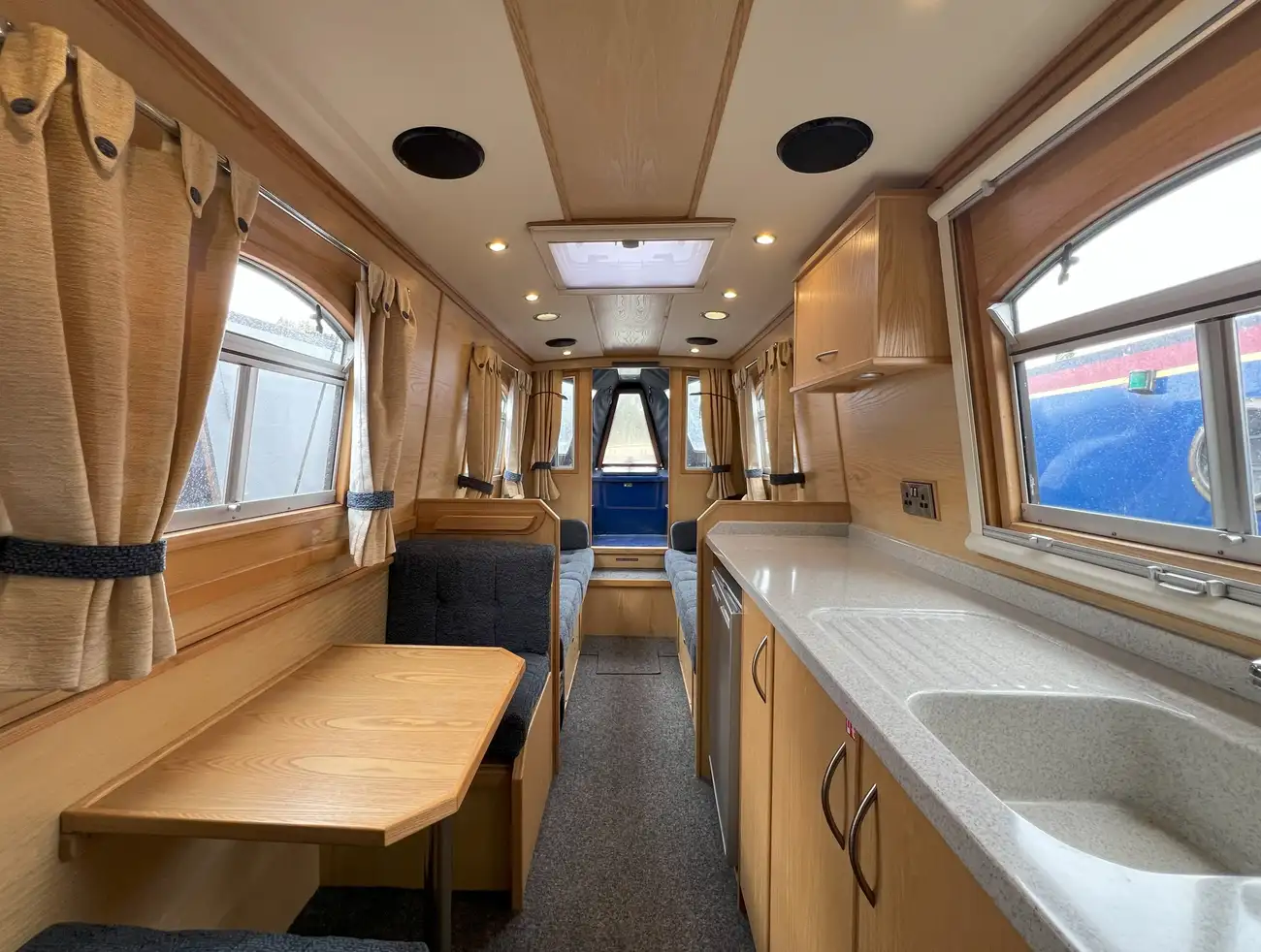 ‘Onoufrios’ a 2013 Sea Otter 41’ Narrowboat. This vessel offers a practical forward layout, with a bathroom aft featuring a separate show and Thetford cassette toilet, a master cabin with a fixed double berth, a well-appointed galley with Pullman-style dinette, and a comfortable saloon forward with port and starboard bench seating. Powered by an upgraded Vetus M4.15 diesel engine, with central heating supplied by a Webasto diesel-fired system. Hot water is provided via the engine calorifier, central heating, and 240V immersion. Both 240V and 12V electrics are fitted on board, ensuring comfortable cruising and extended stays. As with all Sea Otter craft, ‘Onoufrios’ is constructed in marine-grade BS5083 aluminium alloy, offering reduced maintenance compared with steel hulls. Ownership of a Sea Otter means no regular re-blacking or anode replacement, allowing more time to enjoy cruising, entertaining, and the lifestyle that comes with owning such a vessel. With accommodation for up to six, this ever-popular Sea Otter 41’ Narrowboat is perfectly suited for day trips, weekends afloat, or extended cruising holidays. ‘Onoufrios’ is currently lying at Pyrford Marina and is available to view by appointment seven days a week. To arrange a viewing onboard, please contact the team on 01932 343275.