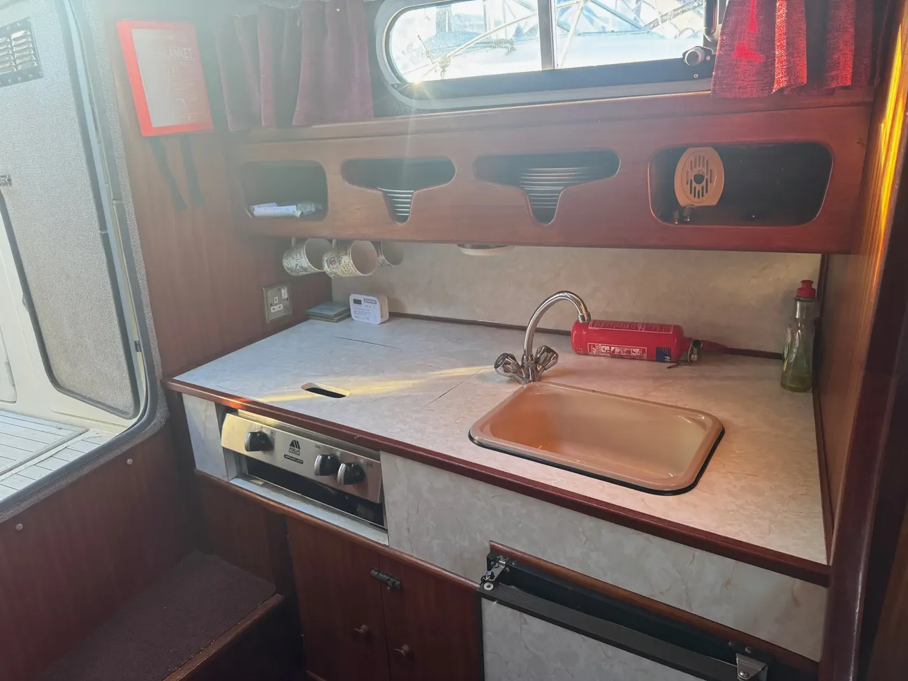 She was purchased in 2005 by the current owners and has been comprehensively serviced and cared for. Equipped with twin Volvo Penta AQ151c petrol engines. This beautifully kept cruiser is perfect for weekend get aways. She is fitted with a stainless steel holding tank (Fabricated & fitted in 2006), stainless steel fuel tank (Fabricated & fitted in 2007), Diesel fired heating (Eberspaecher) and much more.