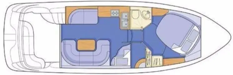 The Sealine F33 Flybridge is a classic example of brilliant flybridge motor yacht design. An extended flybridge provides deep, safe seating, a large sunbed, & stores the cockpit canopy & table. The flybridge provides excellent visibility when using the upper helm. Molded stairs provide safe access from the cockpit, which has L-shaped seating, storage lockers, & a large engine access cover. The saloon & galley allow maximum use of space, while at the same time offering versatility with a built-in hob, oven/grill, sinks, plus high & low level storage - all designed to blend with the layout of the saloon. Forward & mid cabin provide two double berths with a head/shower compartment accessible from both. By clever use of the saloon seating a third double berth is available when needed. The deck layout allows safe, easy movement when mooring, with well-positioned handrails & a full-length pulpit rail with guard wire providing additional safety.